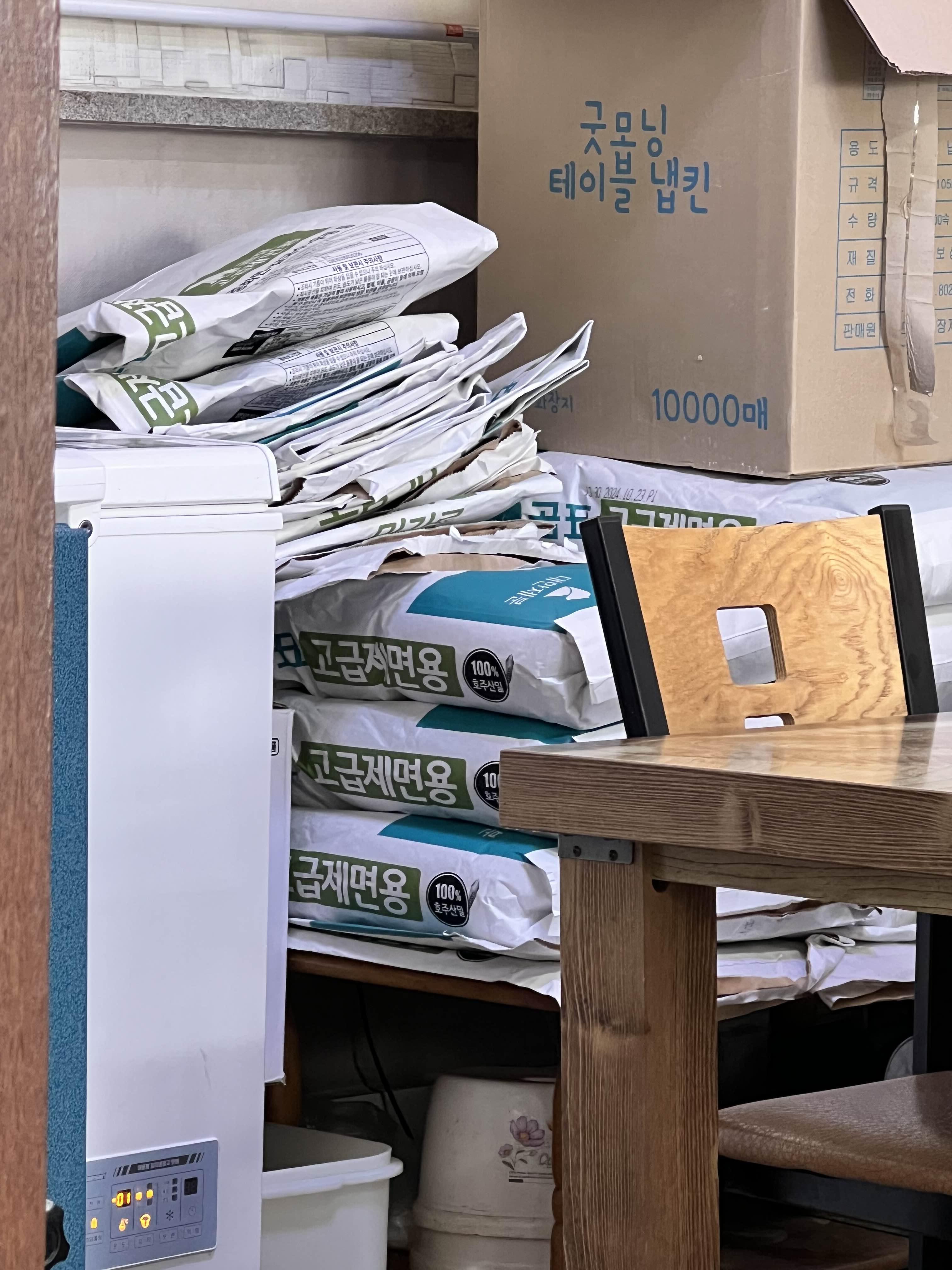 선창식당뿐만 아니라 다른 식당들도 오래돼서 약간 허름해 보입니다. 삼길포항이 조금 오래된 곳인가 싶기도 하고 예전보다는 많이 쇄락한 느낌이에요. 손칼국수 전문이라 들어가면 따로 시킬 것은 없고 2명이면 자동으로 주문이 들어갑니다. 국물이 시원하고 좋았고, 손칼국수라 면도 직접 만들어서 하는 집입니다. 밀가루 빼고는 모두 국산재료로 만드시네요!