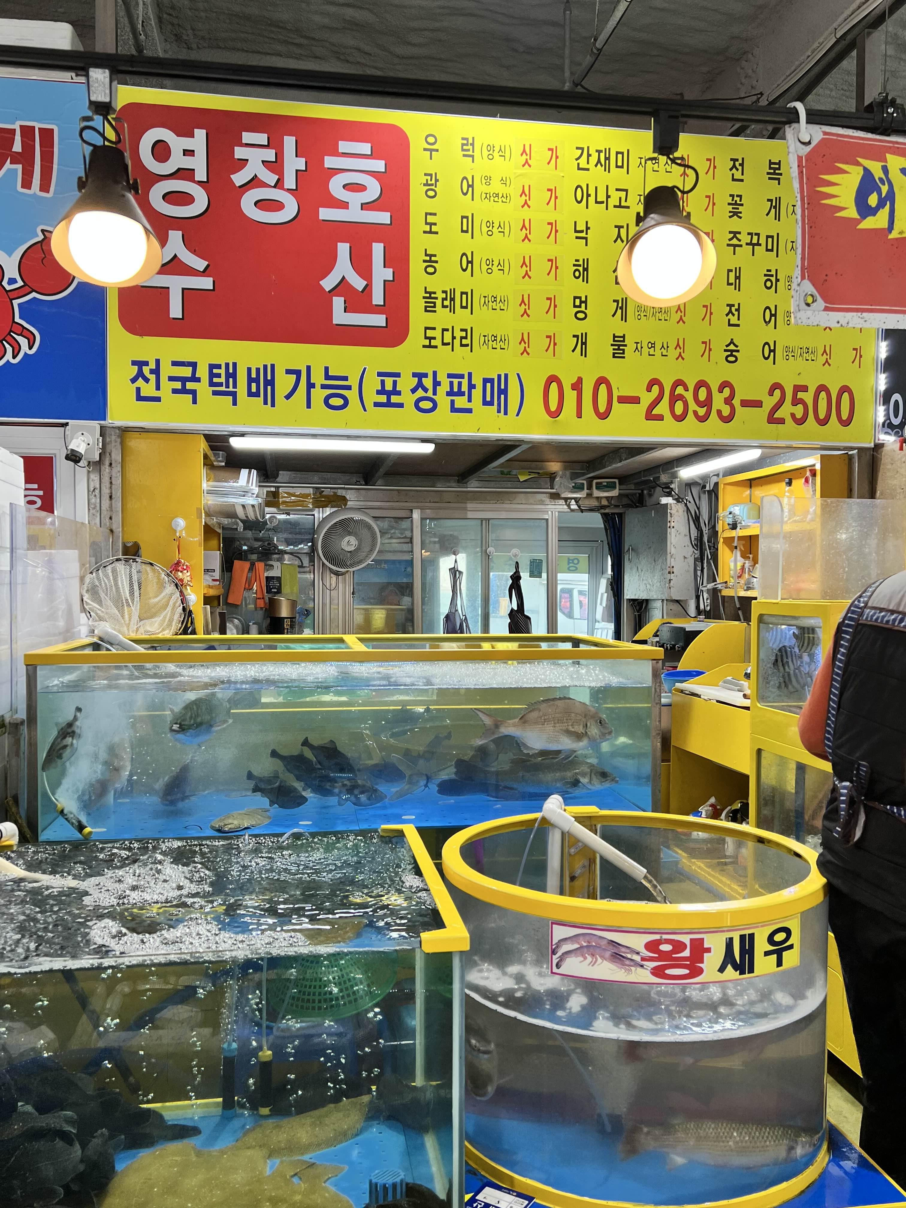 삼길포항은 수산물직매장이 깔끔하게 잘 운영되어 있습니다. 저희가 들어섰을 때 외관도 깨끗해 보였는데 내부도 깔끔하고 좋았어요. 특히 좋았던 것은 사장님들이 심하게 호객행위를 하지 않는다는 것이었어요. 저희는 수산시장에 갔을 때 나와서 호객행위하고 먼저 말 걸고 하는 것을 별로 안 좋아하는데 다른 곳에 비해서 다들 양반이었습니다. 뭐가 있다 정도면 말씀하시고 천천히 둘러보세요~ 하면서 저희를 편안하게 해 줬습니다. 가게들은 엄청 많은 것은 아니지만 가격도 엄청 저렴하고 회에 붙여져 있어서 흥정할 것도 없었어요. 가격도 옆가게랑 다 동일하게 고기의 종류나 신선도만 보고 구매하시면 됩니다.
