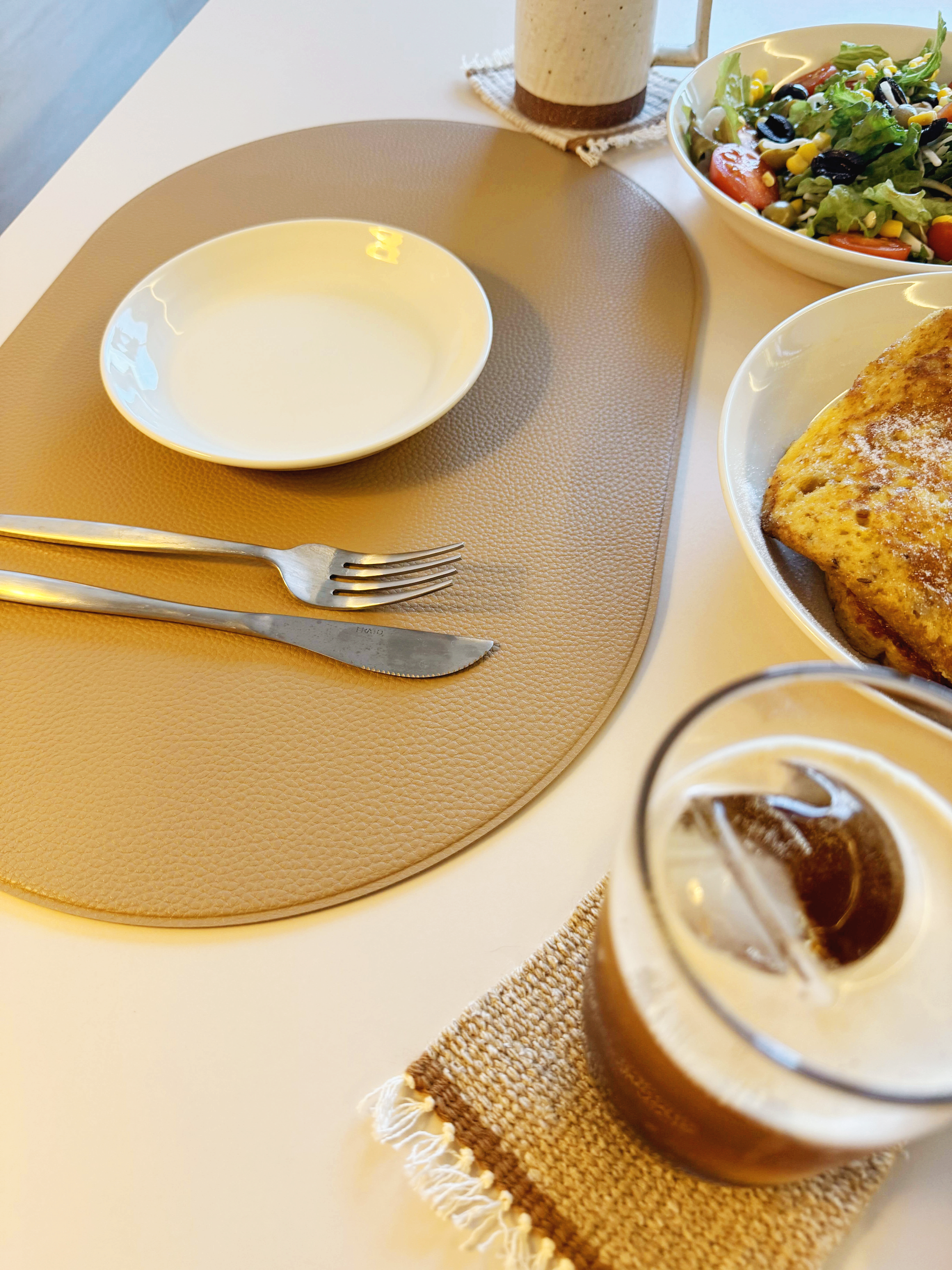 제가 가장 좋았던 점은 카사페니체 클래식 테이블 매트는 모양과 색이 다양하다는 것이었어요. 게다가 양면으로 사용할 수 있어서 상황이나 분위기에 따라 뒤집어서 사용할 수도 있었어요. 특히나 세라믹 식탁같은 밝은 식탁에는 테이블매트의 컬러가 아주 중요할 수 밖에 없습니다.