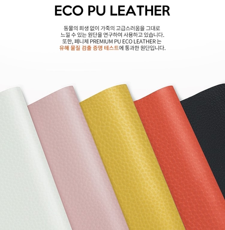 1. 디자인과 컬러가 다양해서 취향에 맞게 선택 가능하다. 2. 소재가 비건레더로 고급스럽고 친환경적이다. 3. 3mm로 가볍고 양면으로 사용이 가능하다. 4. 이물질 쉽게 제거되서 오래 사용 가능하다.