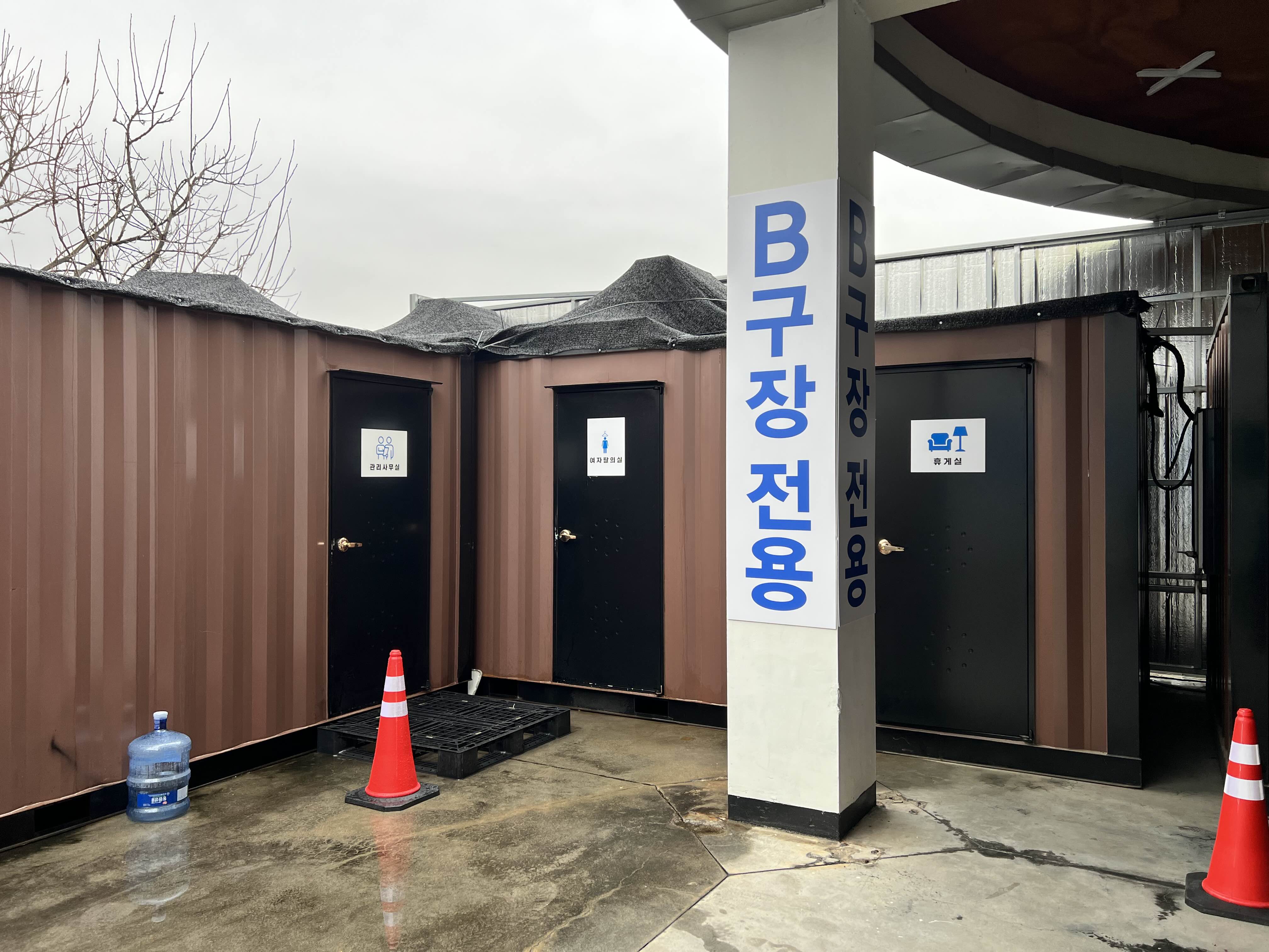 자판기가 있어서 음료수나 과자등을 이용할 수 있고, 컵라면도 있어서 출출할 때 사 먹을 수 있었어요. 저도 비 오고 일찍 와서 시간이 남길래 컵라면 뽑아서 하나 먹었습니다. 급하게 오느라 음료수 못 사 오시면 여기서라도 뽑아서 드시면 됩니다. 그리고 남녀 화장실이 있어서 여자축구 하시는 분들도 이용하실 수 있습니다. 이전에 골 때리는 그녀들 촬영을 해서 그런지 아니면 여자축구가 활성화가 돼서 그런지 여성분들이 이용할 수 있도록 화장실과 휴게실이 잘 되어 있었습니다.