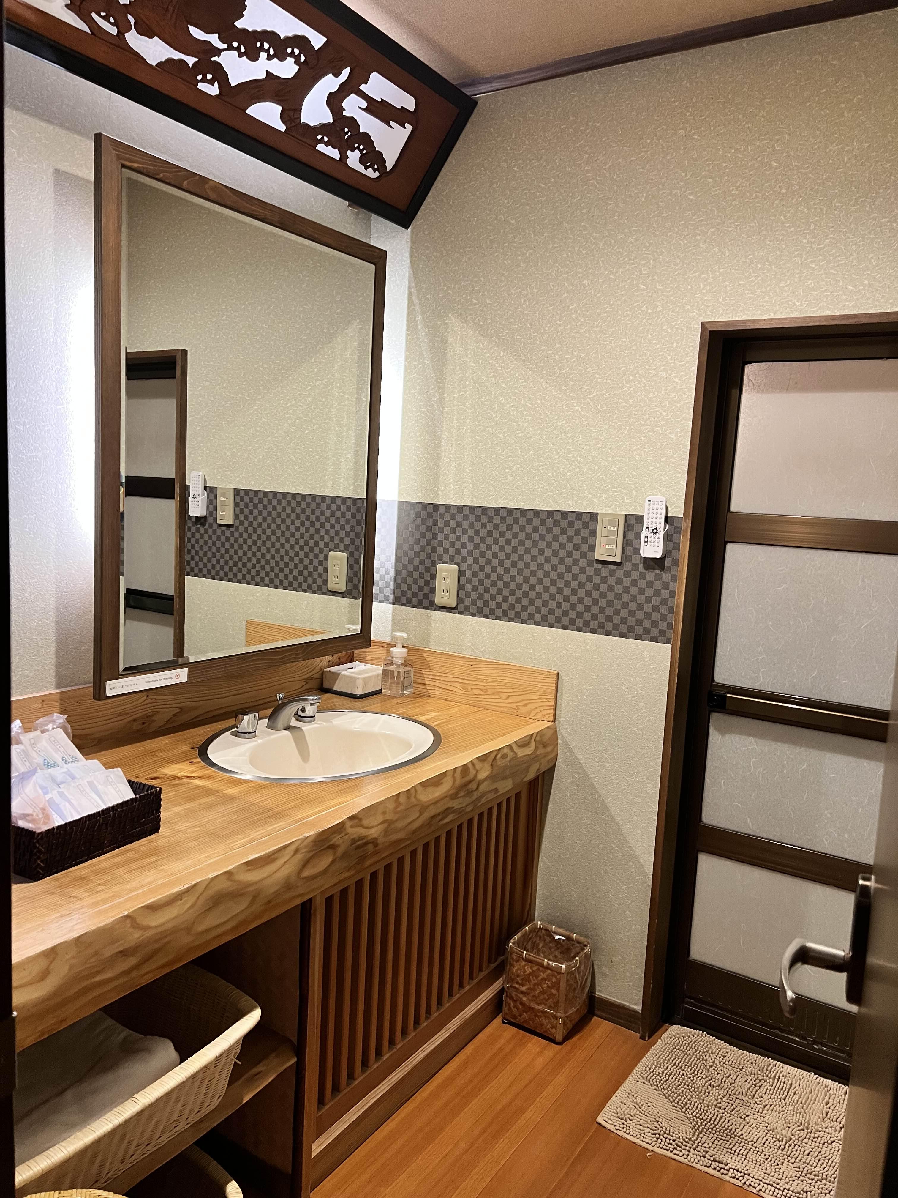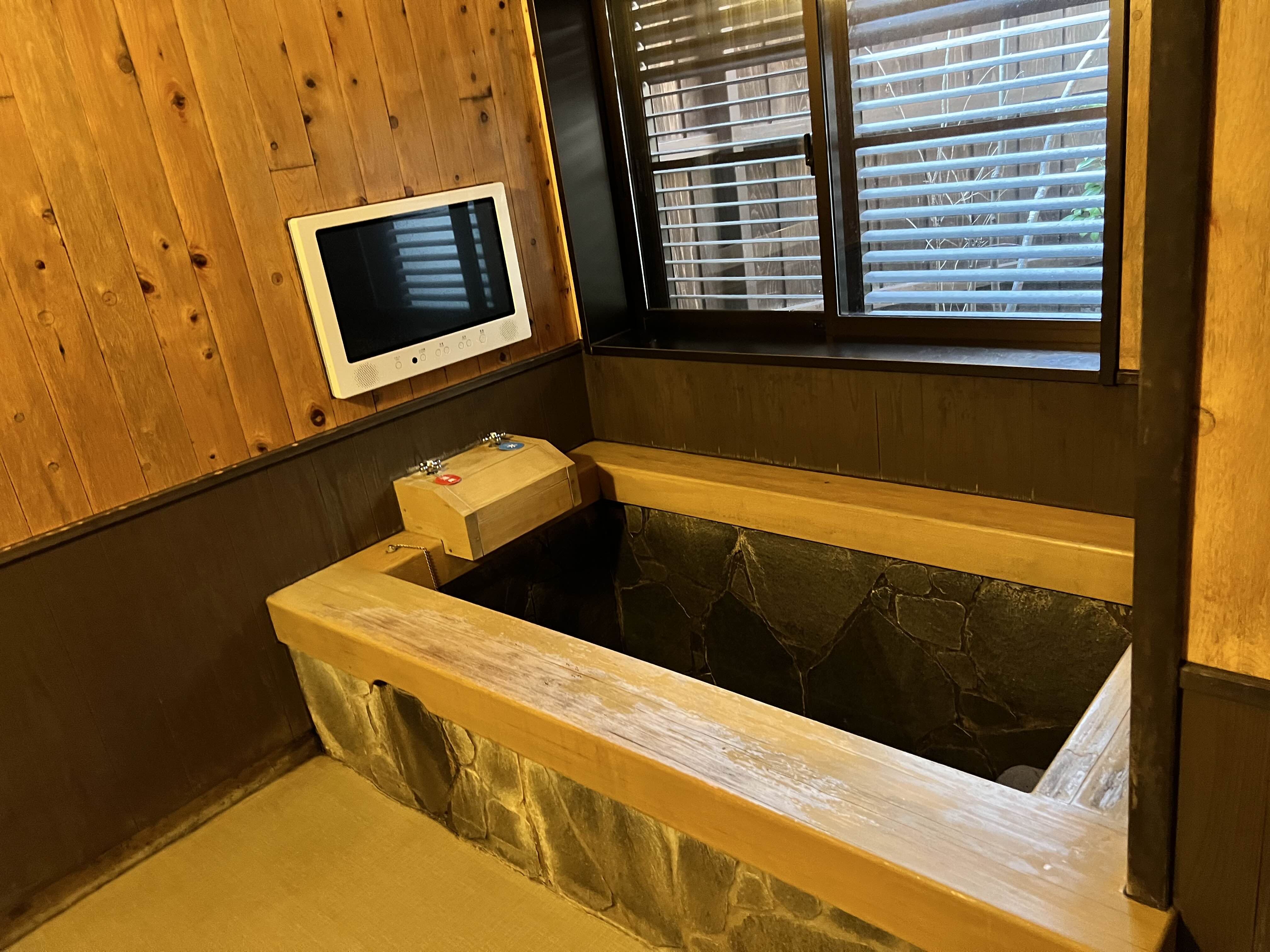 탕에는 두 사람이 앉을 정도의 크기입니다. 아니면 혼자만의 온천을 즐기셔도 됩니다. 창문을 열면 우리 호수만의 정원이 보이고 울타리로 막혀 있습니다. 욕실이 너무 좋았는데 저희는 욕실은 잘 안 쓰고 대중탕을 많이 갔습니다. 대중탕을 보시면 이해가 되실 거예요.