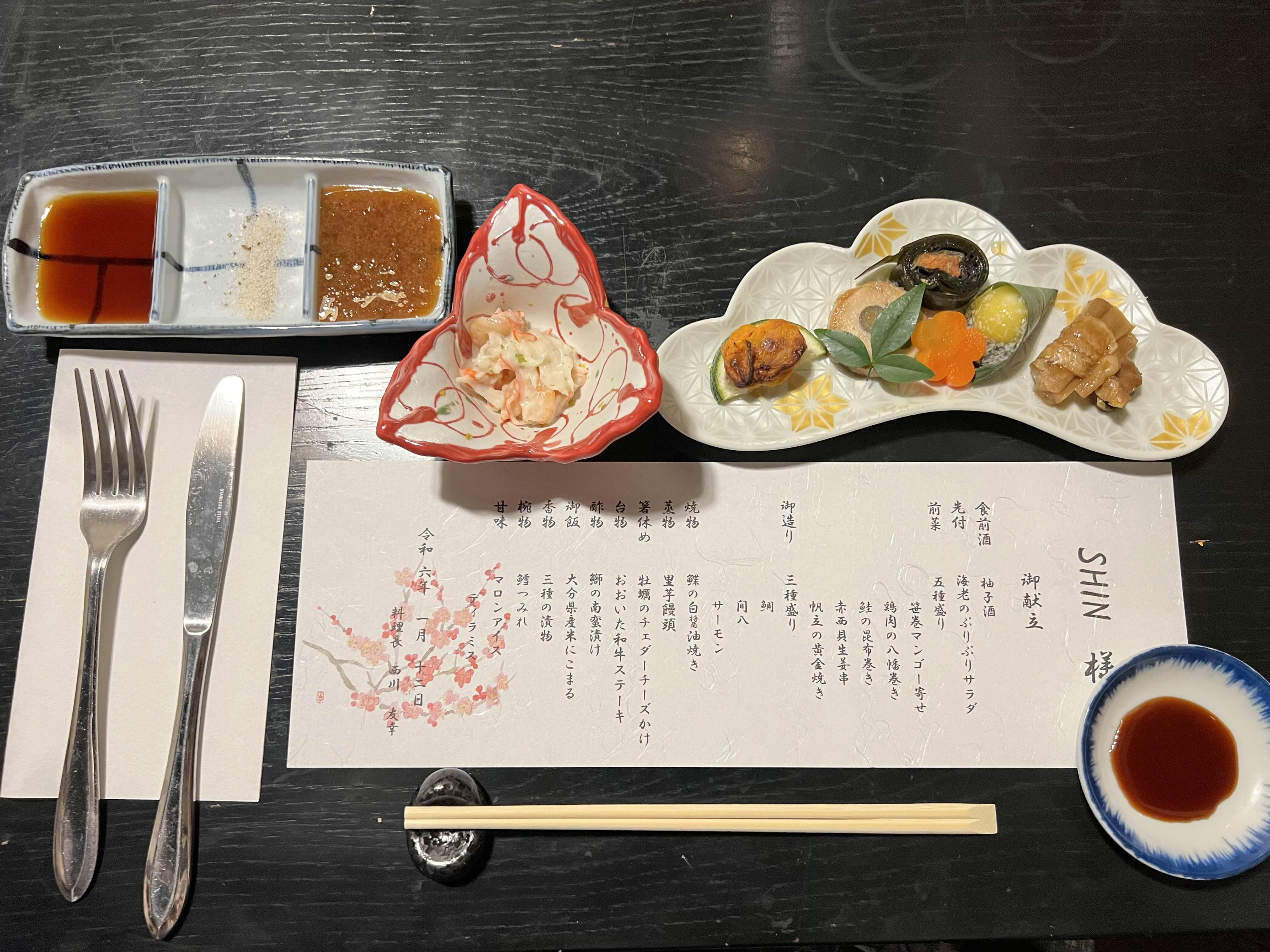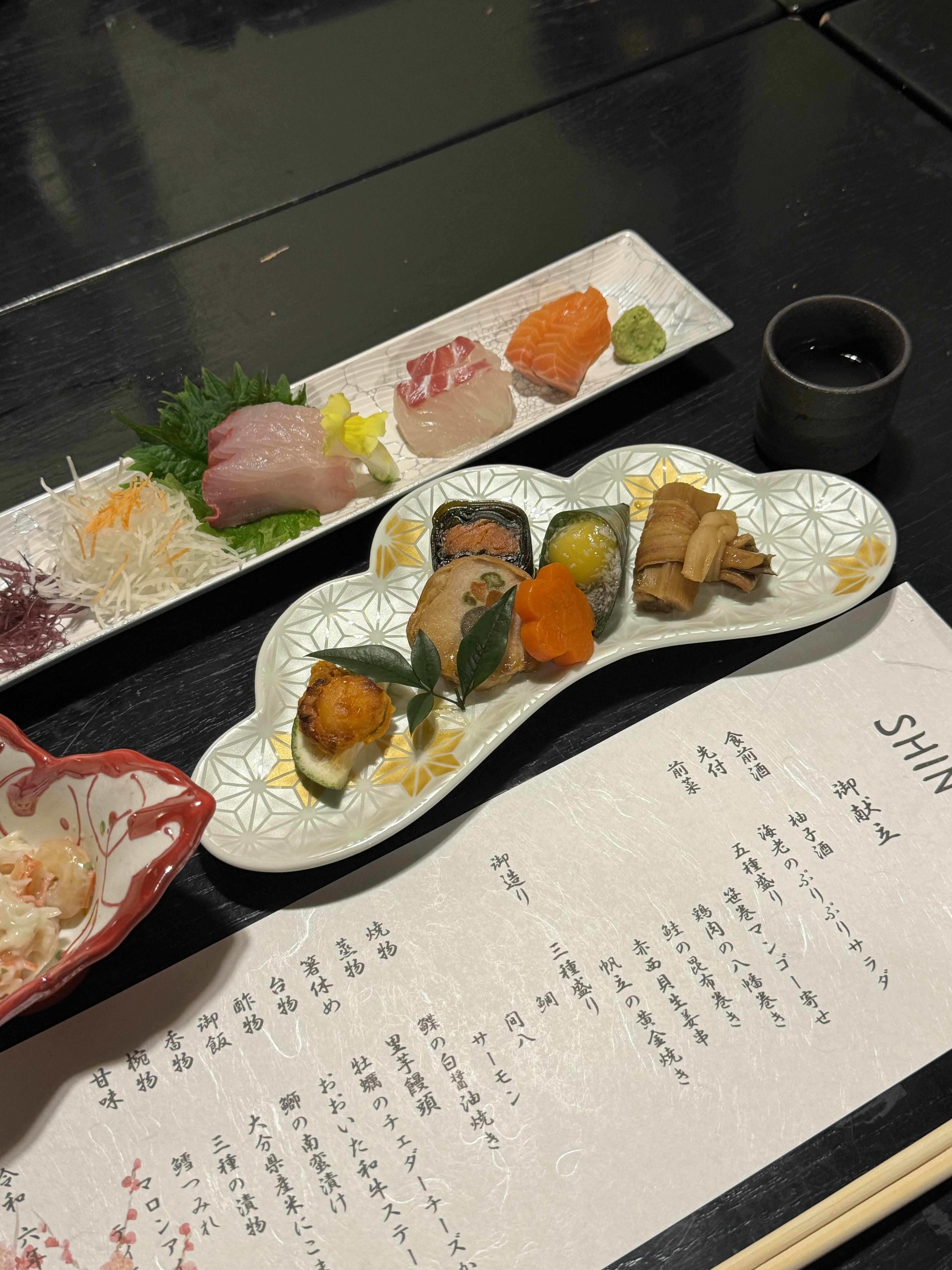 기본적으로 회가 나오고 가운데 샤브샤브 해먹을 냄비가 준비되어 있습니다. 음식은 다 특별해서 난생 처음 먹어보는 음식들도 많았습니다. 일본에 오면 여러 가지 음식들 맛보는 것도 좋은 경험인 것 같아요. 한국과 비슷하면서도 다른 음식이 부모님도 신기하셨나 봅니다.