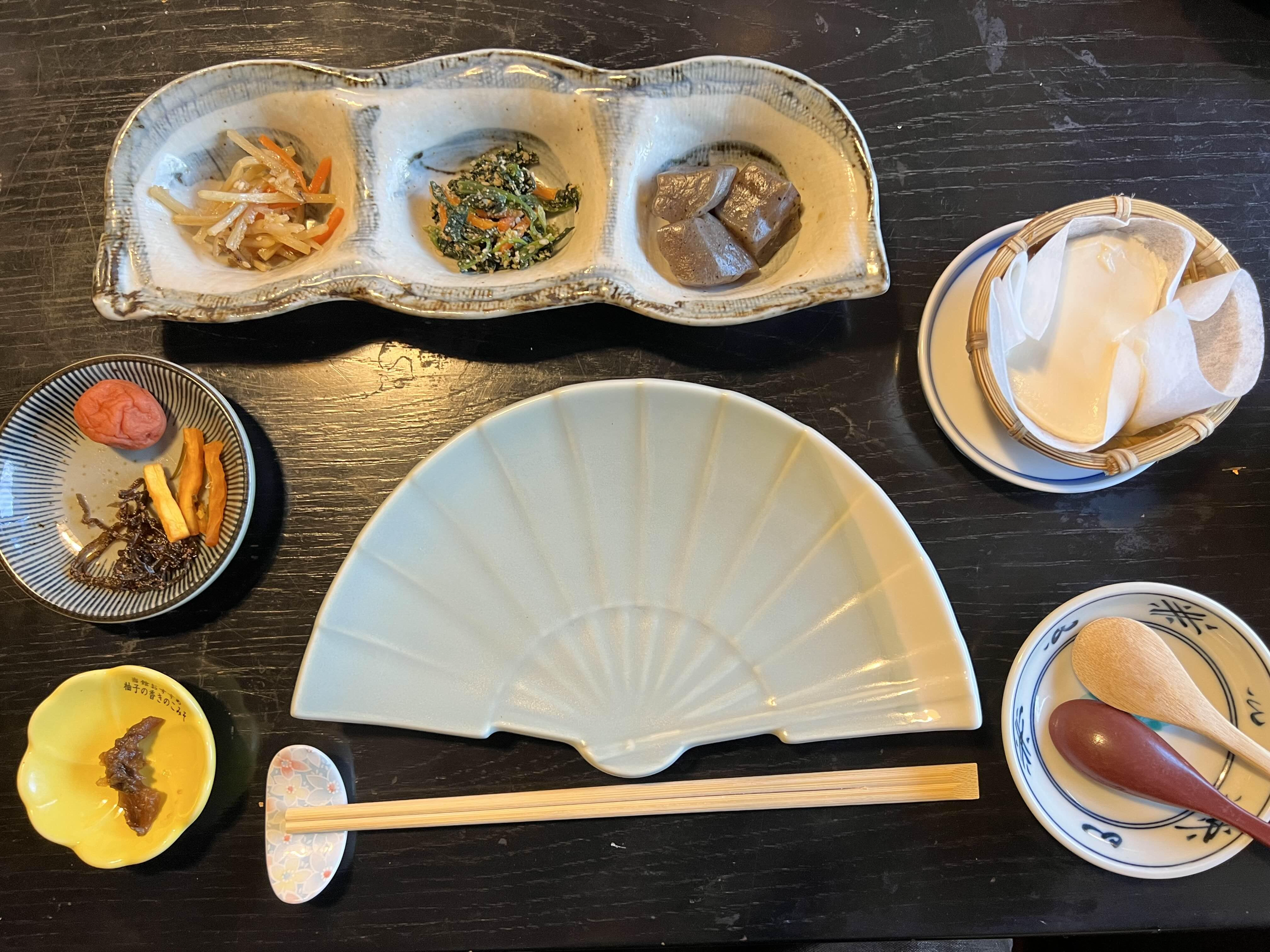 이렇게 개인당 세팅이 되어 있고 첫날 아침은 생선구이로 준비가 되어 있습니다. 생선은 가자미인지 전갱이인지 모를 작은 생선이었고 인당 2마리씩은 돌아가는 듯 했습니다. 2 종류의 생선이 준비되어 있었습니다. 그릴이 중앙에 놓여져서 직접 구워먹는 시스템이고 생선이 맛있어서 부모님들이 좋아하셨습니다. 저도 맛있었고 특히 오차즈케 (차를 물에 말아먹는 것)를 해서 생선이랑 먹으면 굴비를 먹는 것처럼 맛있게 먹을 수 있습니다. 저는 오차즈케가 좋아서 일본에서 올 때 차를 사가지고 왔습니다. 집에서도 오차즈케처럼 생선이나 다른 반찬이랑 해서 먹으면 좋을 것 같더라고요. 아침에 따듯하게 오차즈케로 식사하시면 소화에도 좋고 속이 따듯해져서 좋아요!
