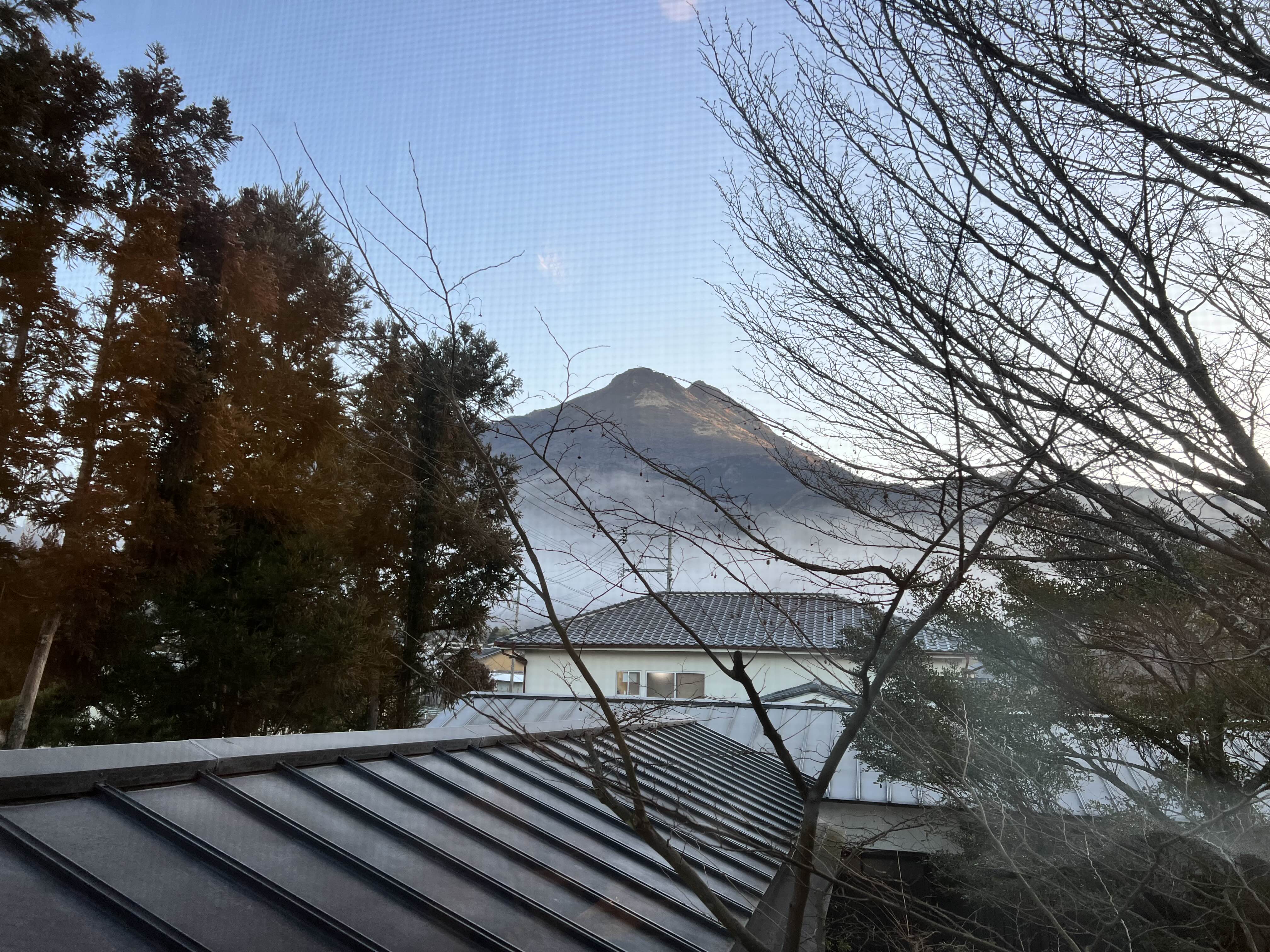 새벽이나 아침에는 유후산아래로 안개가 끼어 있어서 멋있었어요. 아침에 부지런 하시다면 긴린코 주변으로 산책하시는 것도 좋을 것 같습니다. 긴린코에는 아침에 호수면에 안개가 끼는 장관을 이루기도 한다고 하네요.