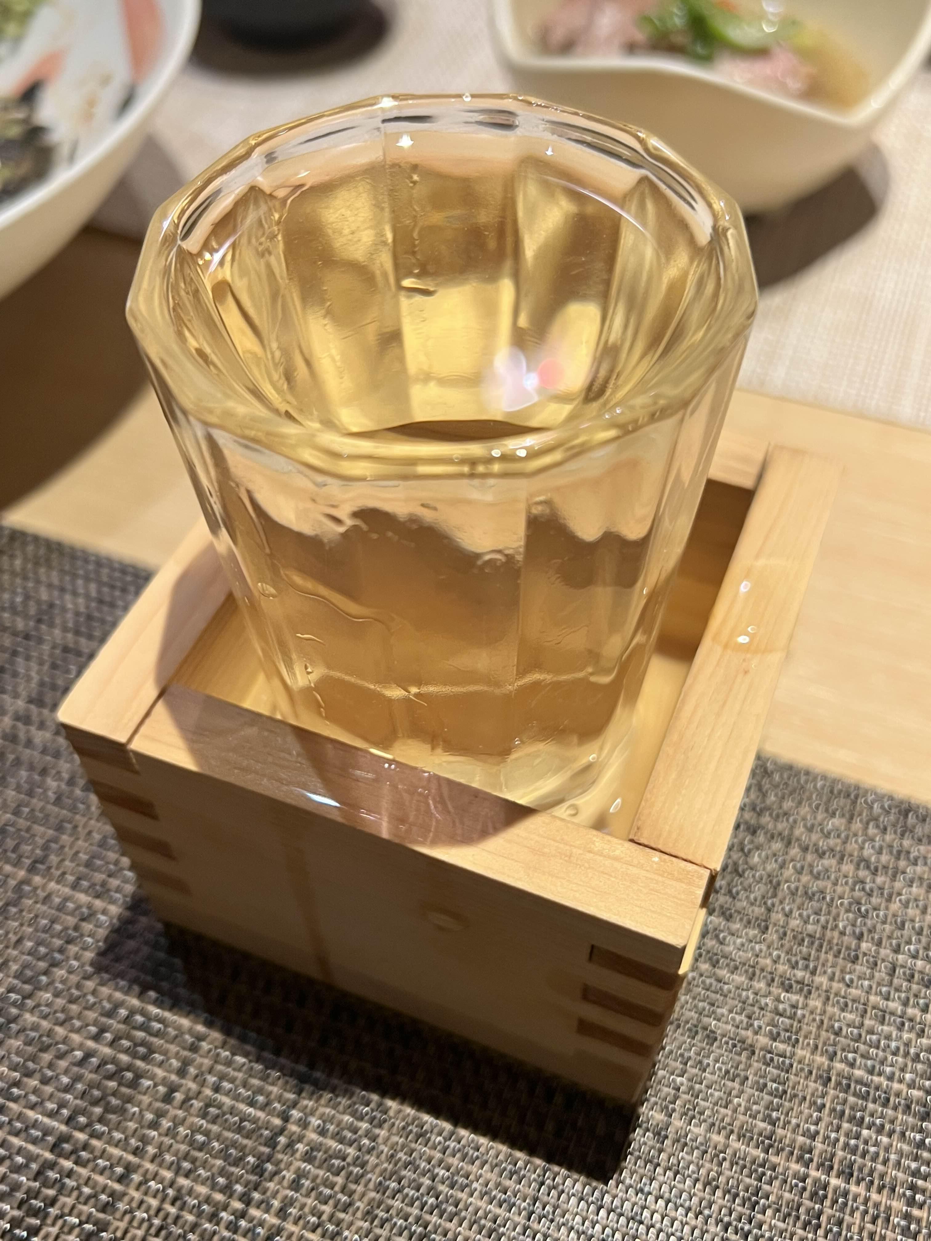 그리고 제가 일본에 와서 먹어보고 싶었던 것이 이 나무상자에 담긴 사케인데요. 오사카에 사는 사람들에서 본 적이 있는데 일본은 이렇게 잔이 넘치도록 주는 것이 풍습이라고 해서 밑에 나무에 담아서 주는데 철철 넘치기도 해서 기분이 좋고, 나중에 나무 상자에 흘린 술을 또 마셔주면 나무 향이 배어서 또 너무 향기롭고 다른 술이 됩니다. 직접 먹어보니 꽤 괜찮아서 저는 2번이나 더 시켜 먹고 아버지도 한잔 시켜드렸습니다. 일본에 가시면 꼭 이렇게 드셔보세요. 일본에 온 게 실감이 났습니다.