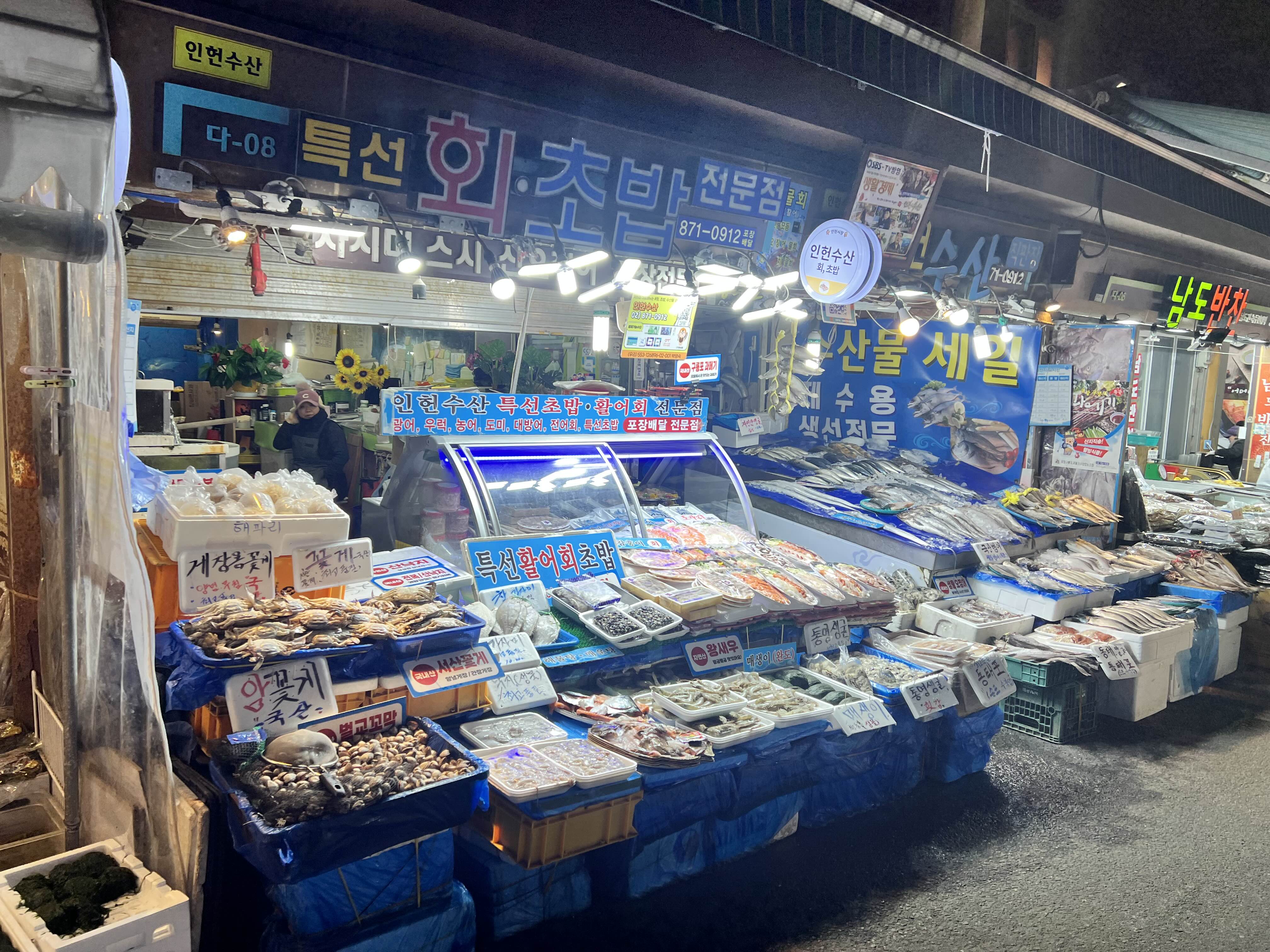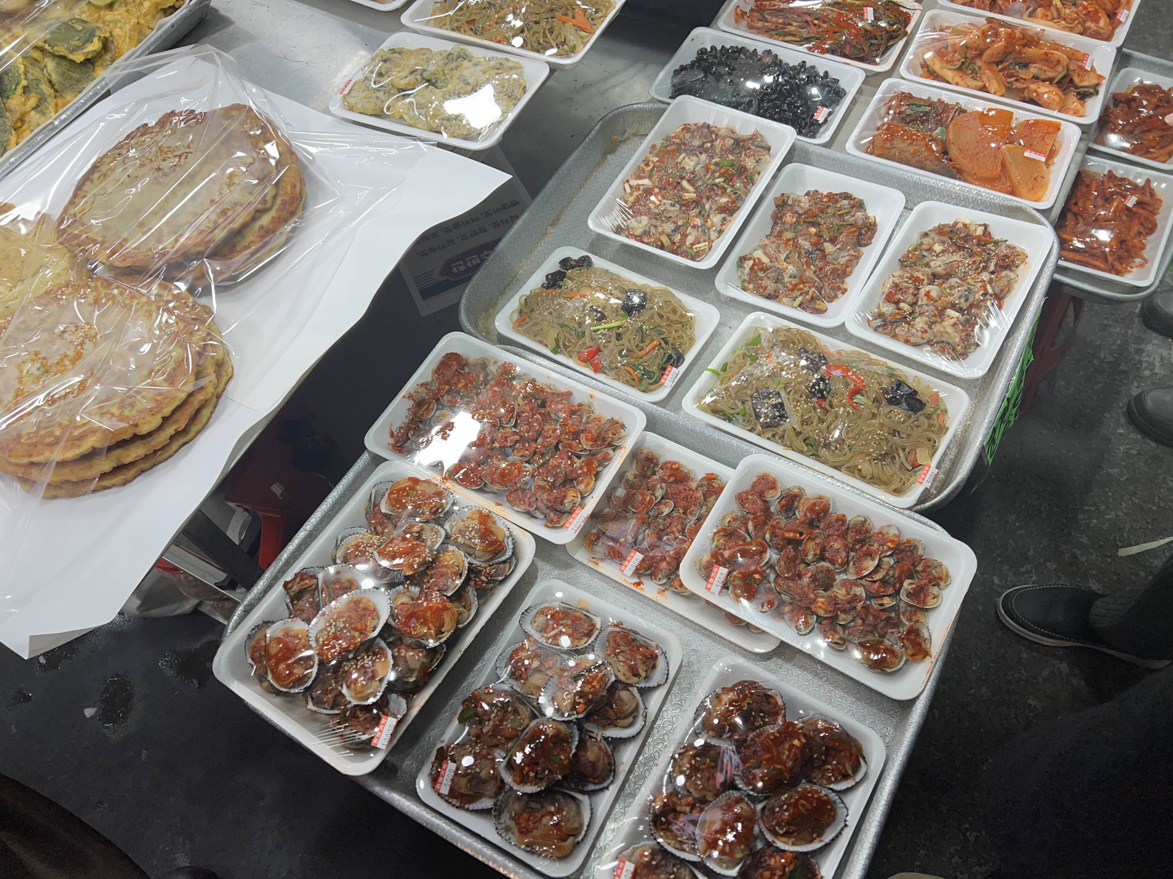 시장에는 없는게 없습니다. 초밥이나 회부처 시작해서 닭갈비 LA갈비나 반찬 등 집에서 먹을 수 있는 재료들이 엄청 많기 때문에 요리를 잘 못하는 사람들도 사다가 집에서 구워 먹기나 하면 됩니다.