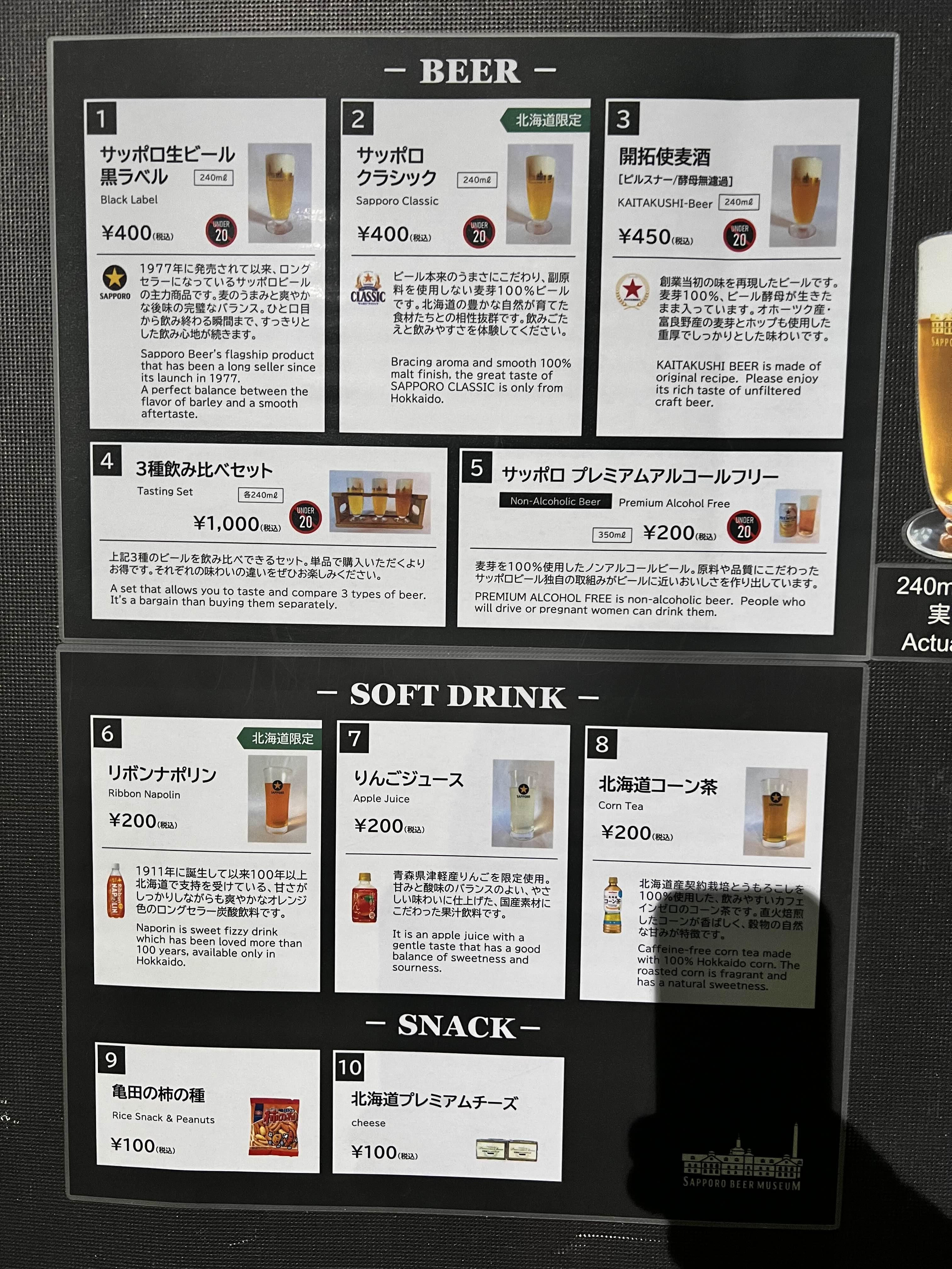 그래도 삿포로의 역사와 3가지 맛을 비교할 수 있어서 좋았어요. 워낙 관광객들이 한번쯤은 들리는 곳이라 의무적으로 가보시는 게 좋습니다. 아무래도 맛은 식당에 있는 곳과 비교했을 때 그렇게 나아 보이지 않네요. 오히려 점심에 먹은 수프카레집에서 먹은 맥주가 정말 맛있었습니다. ㅠ
