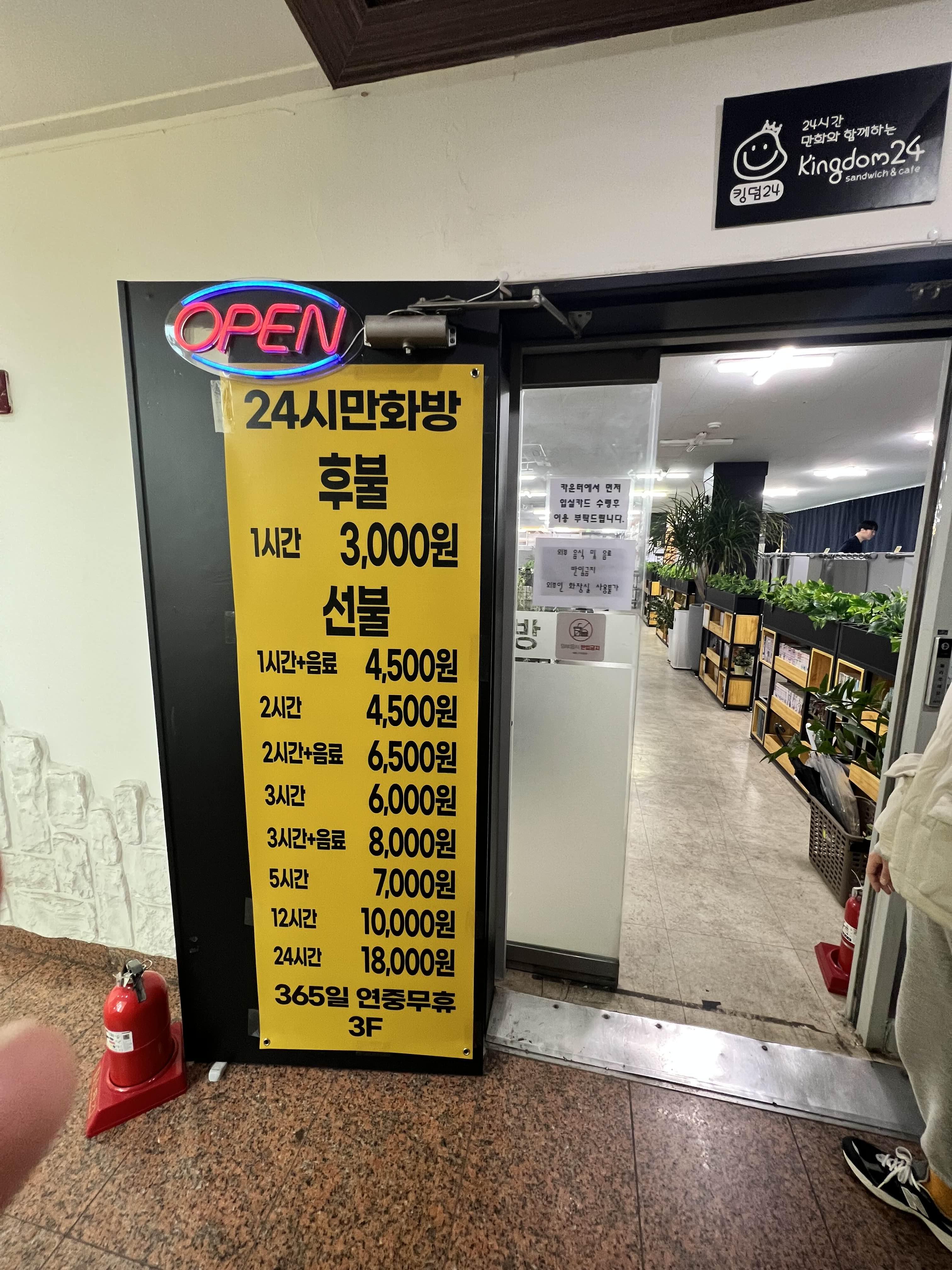 365일 연중무휴고 요금도 저렴해서 만화책 좋아하는 사람이나 커플이 가면 좋을 곳입니다. 저도 처음 가보는 곳인데 뭔가 아지트 같고 좋더라고요. 아저씨들도 계시고 저희처럼 커플이나 친구들끼리도 많이 오는 것 같아요! 저희도 원래는 3시간 선불로 하고 보았는데 만화책을 읽다 보니까 재밌어서 추가로 더 결제하고 있었습니다.