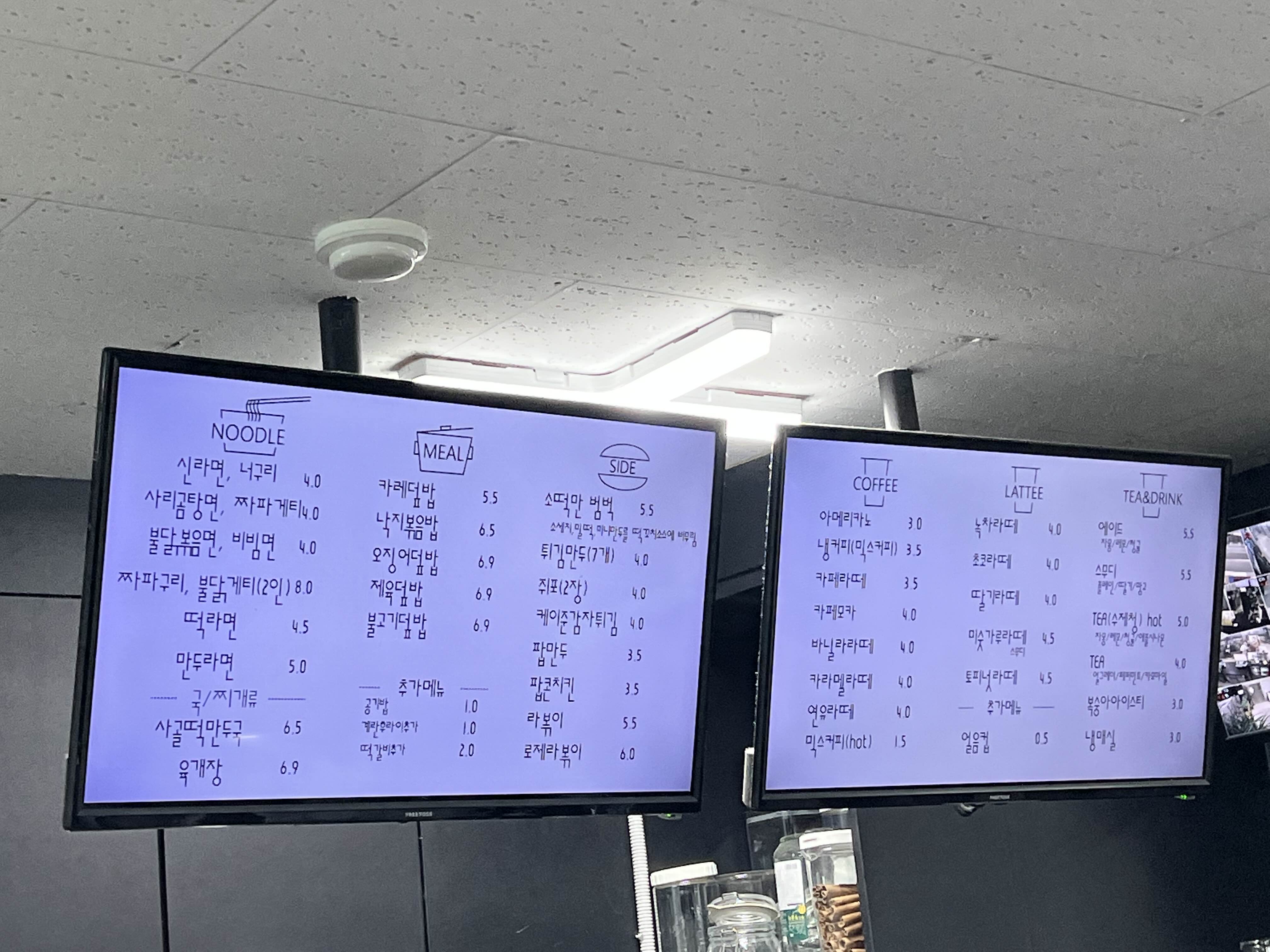 외부 음식 주문은 불가하고 카운터에서 위에 보이는 음식들을 주문할 수가 있어요. 저희는 라볶이와 팝콘치킨을 시켜서 먹었습니다. 과자들도 있어서 만화책을 보면서 먹으면 아주 꿀맛입니다. 만화책 보면서 과자는 아주 필수인 것 같습니다. 라면이나 덮밥같은 메뉴도 있고 커피메뉴도 있어서 다양하게 즐길 수 있습니다.
