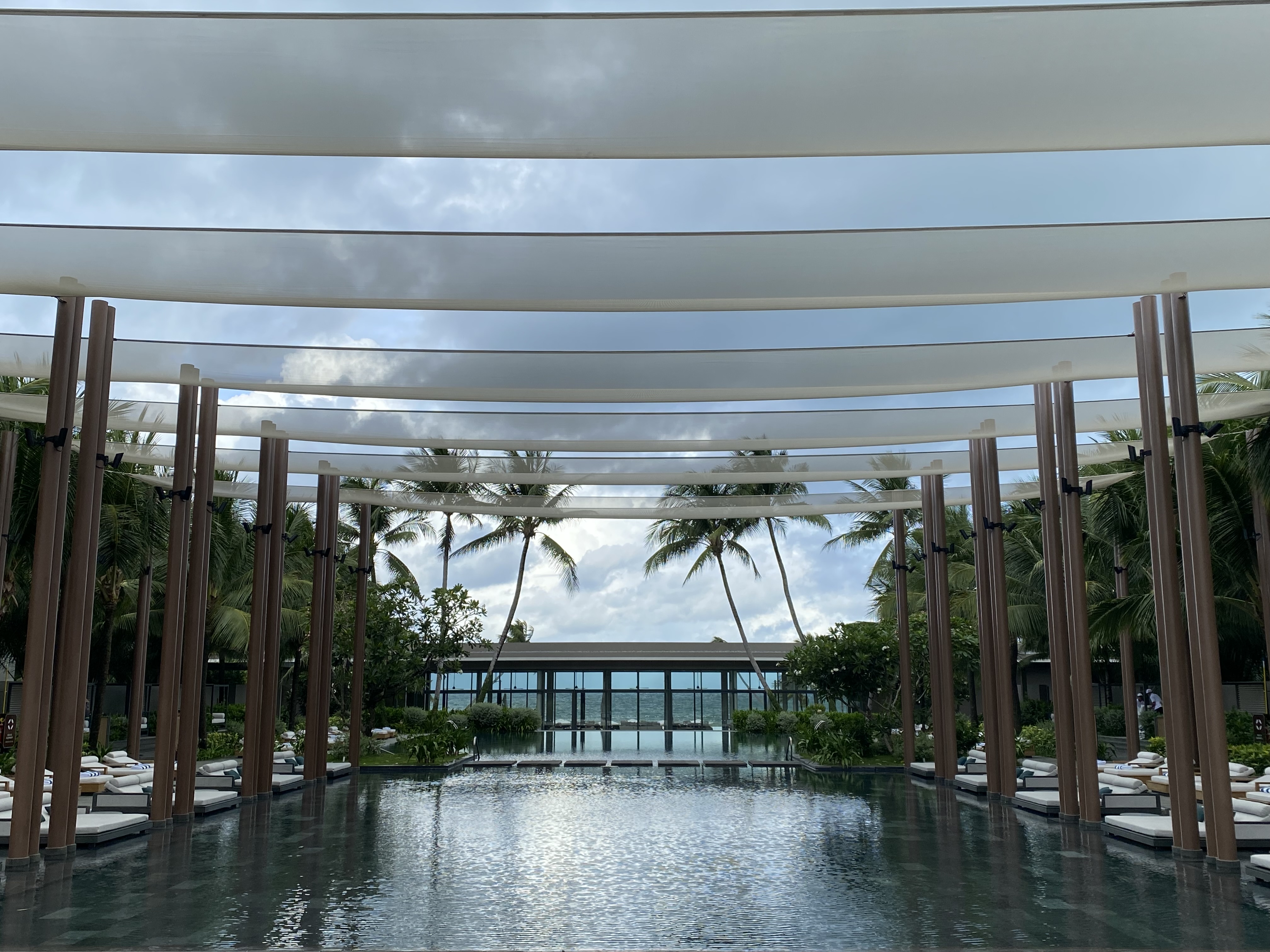 수영장이 엄청 크고 카바나와 선베드가 충분하게 배치되어 있고 상태가 아주 깨끗했다. 2박 3일 동안 지내본 결과 외국 총괄 지배인 수시로 다니면서 꼼꼼히 하나하나 다 체크하는 모습을 보았고, 우리에게도 불편한 게 없는지 따스하게 말도 건네고 와인도 따라주는 등 챙겨주는 느낌을 받았다. 수영장 상부에는 천막이 가려져 있어 어느 정도 빛을 가려준다.