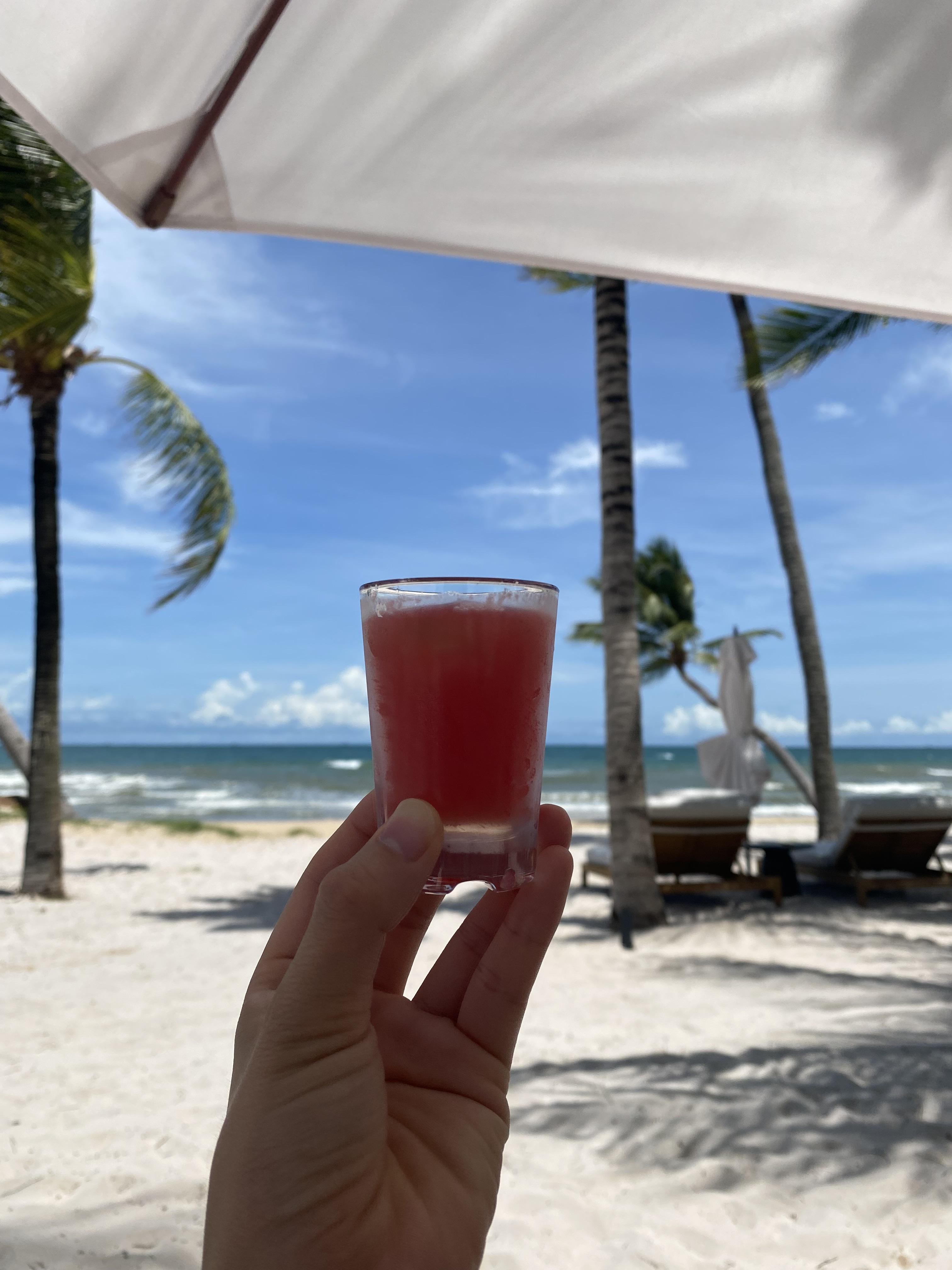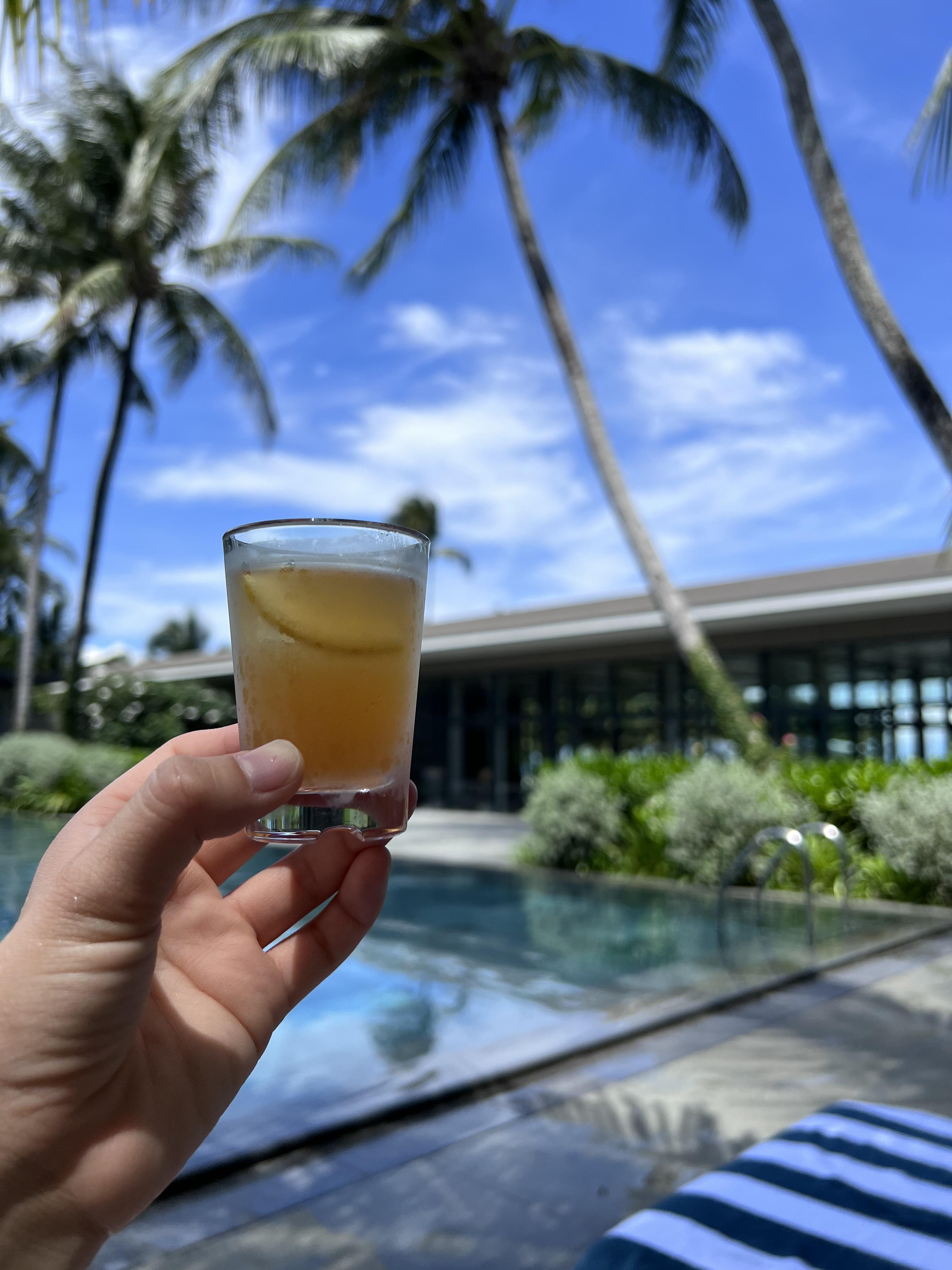 메인 수영장으로 가면 눕고 싶은 곳에 자리를 잡으면 직원이 웰컴 드링크와 물과 타월을 가져다준다.
