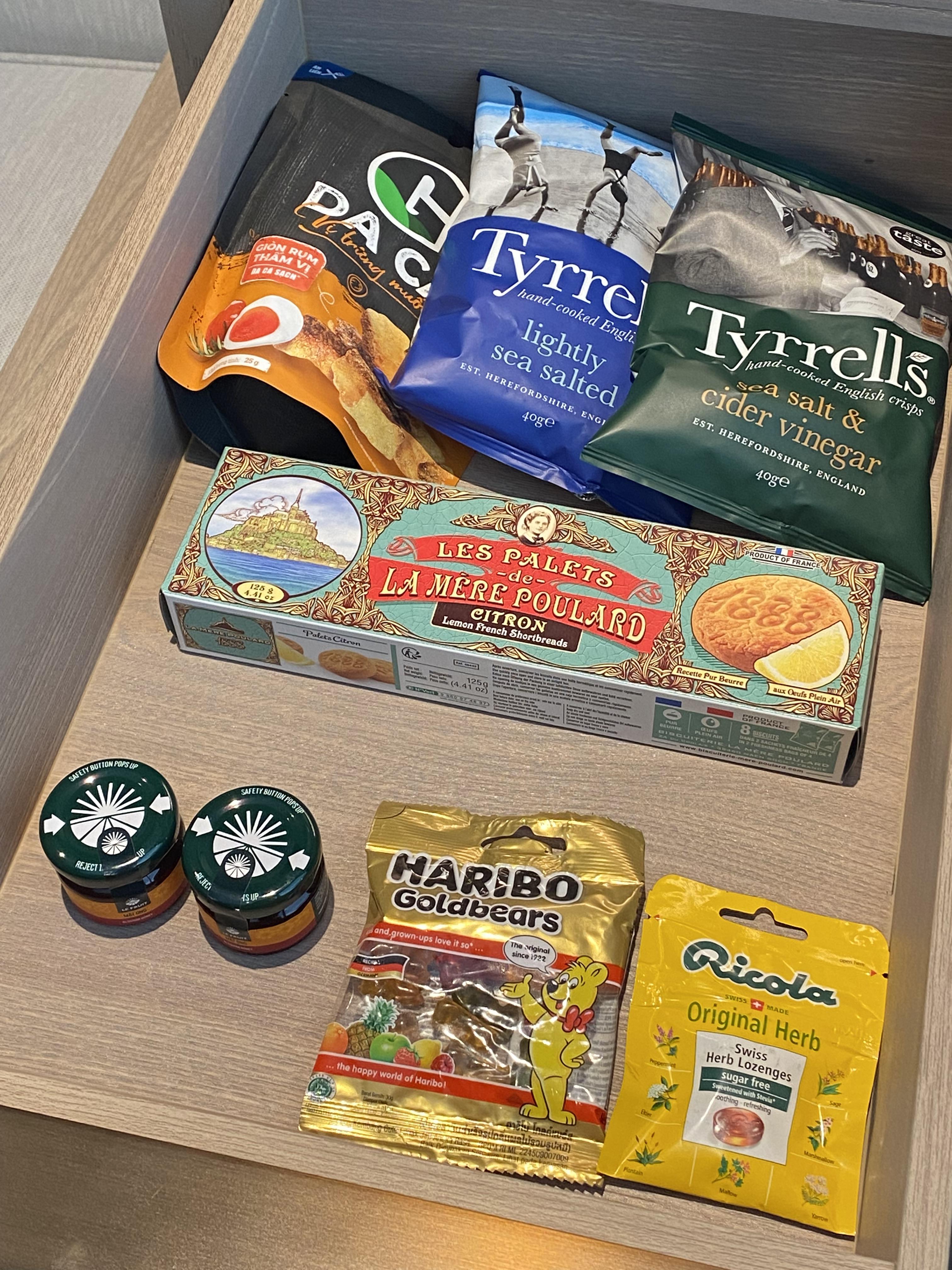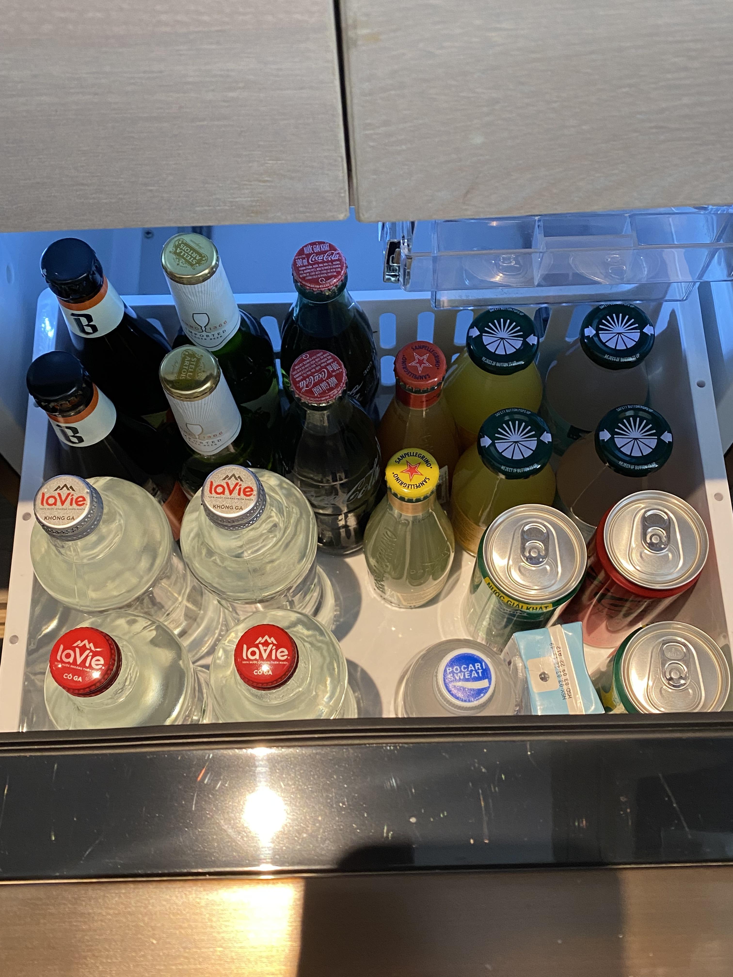 숙소에 들어가면 웰컴 푸드와 와인이 세팅되어 있고 미니바에 있는 모든 음료가 무료다. 미니바에는 맥주, 탄산수, 물, 각가지 음료, 커피 등이 구비되어 있고, 다음 날이 되면 다시 채워주신다. 혹시라도 술을 좋아한다면 인천공항에서 보드카 하나 정도 사 오면 맛있게 칵테일을 만들어 먹을 수가 있다. 칵테일 제조하는 가재도구도 모두 구비되어 있으니 참고하길 바란다.