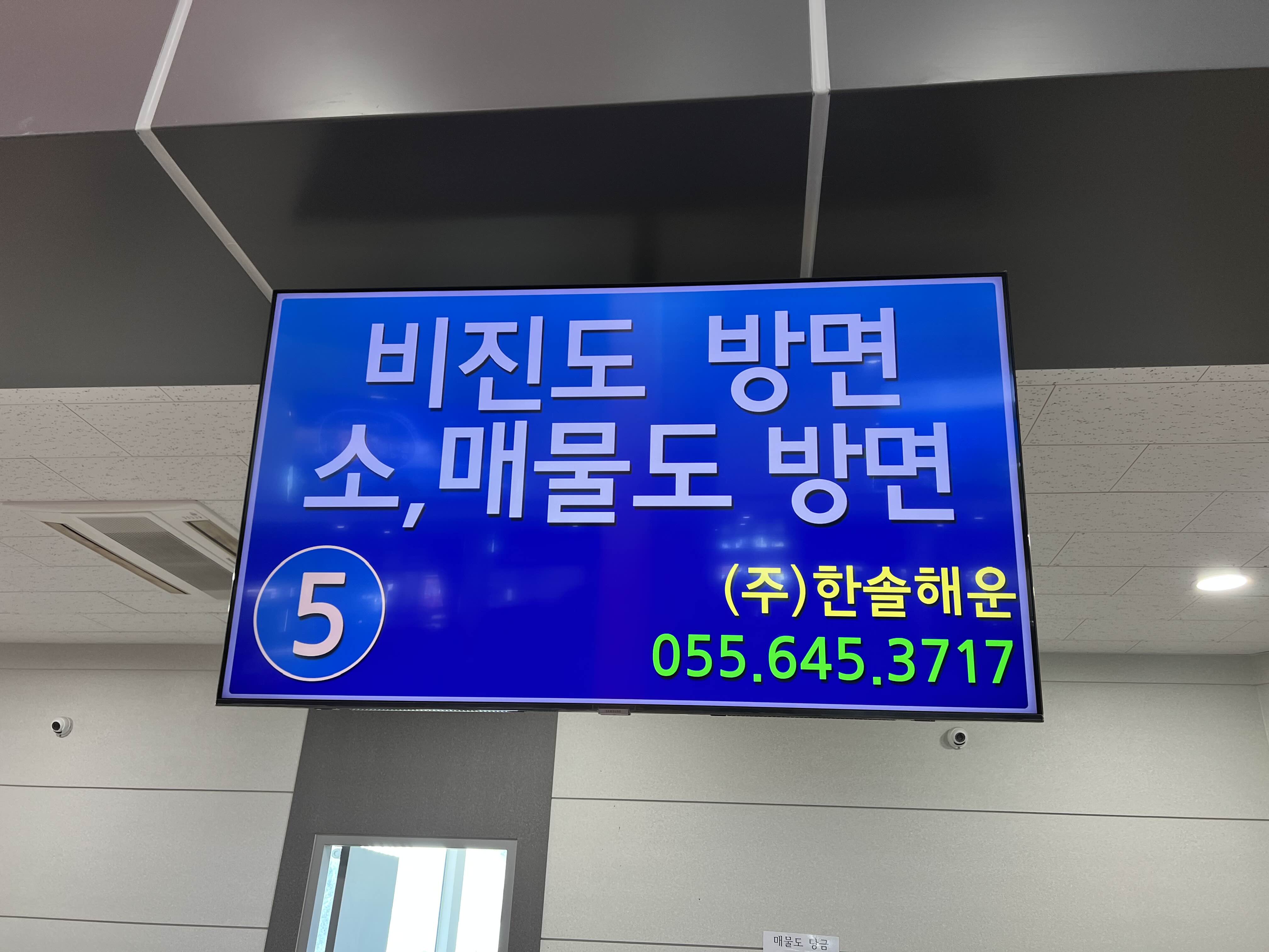 여객터미널에 들어가면 매물도 방면이 써있는 5번 창구에서 티켓을 구매하시면 됩니다. 앱으로 예약을 했어도 직접 가서 티켓으로 교환해야 합니다. 배에 탈 때 바코드를 찍어 인식을 하기 때문에 직접 티켓이 있어야 해요.