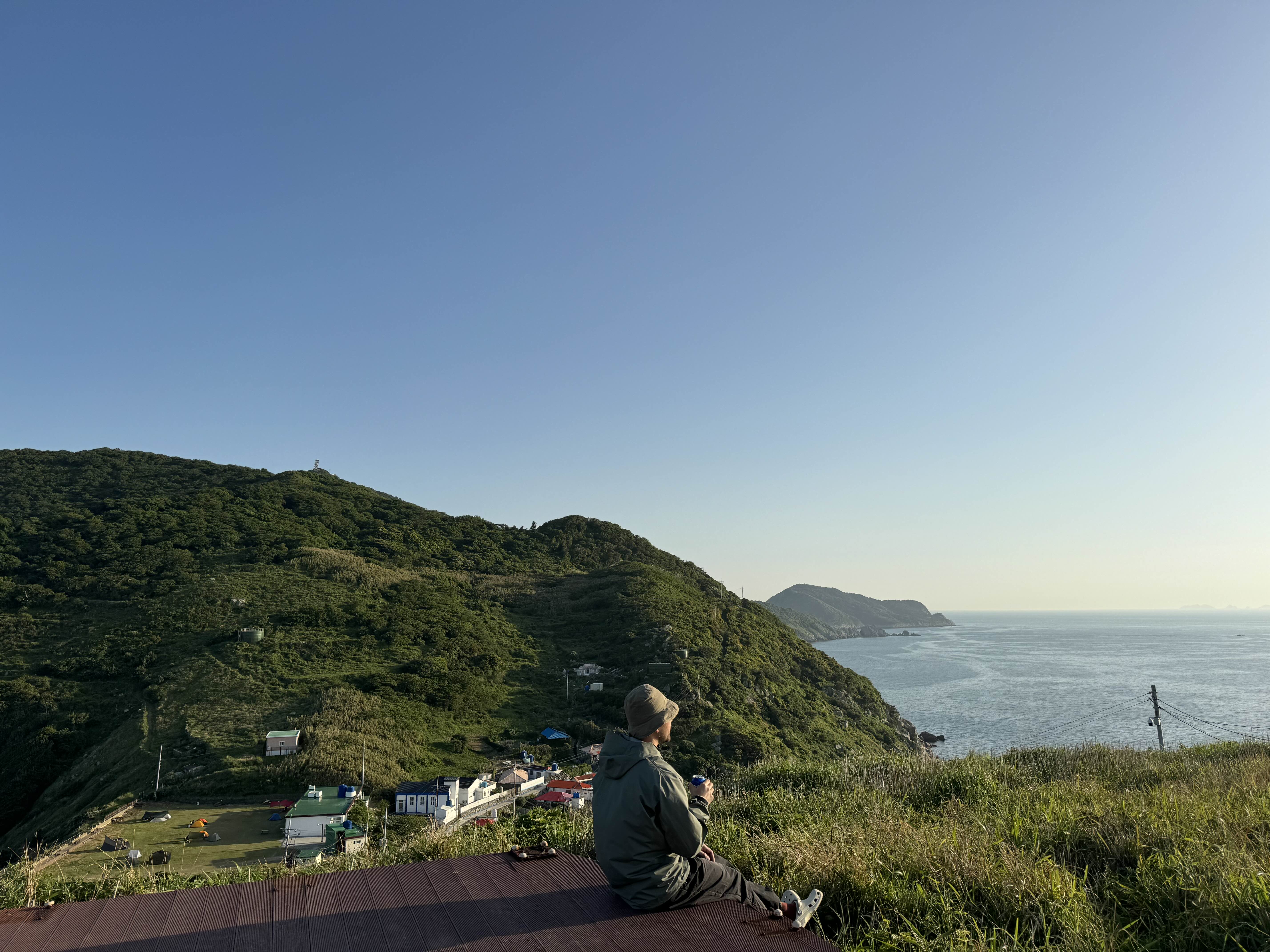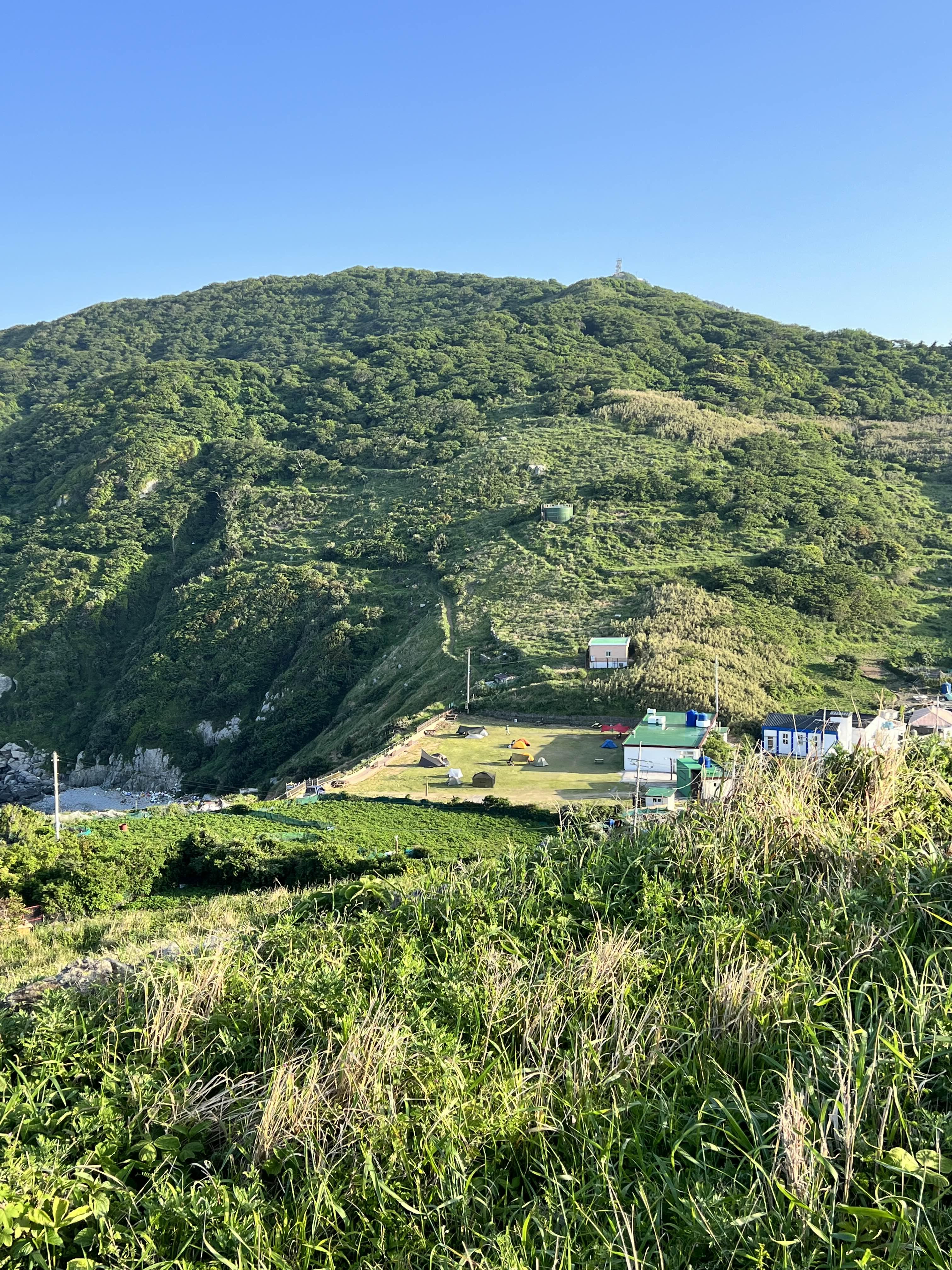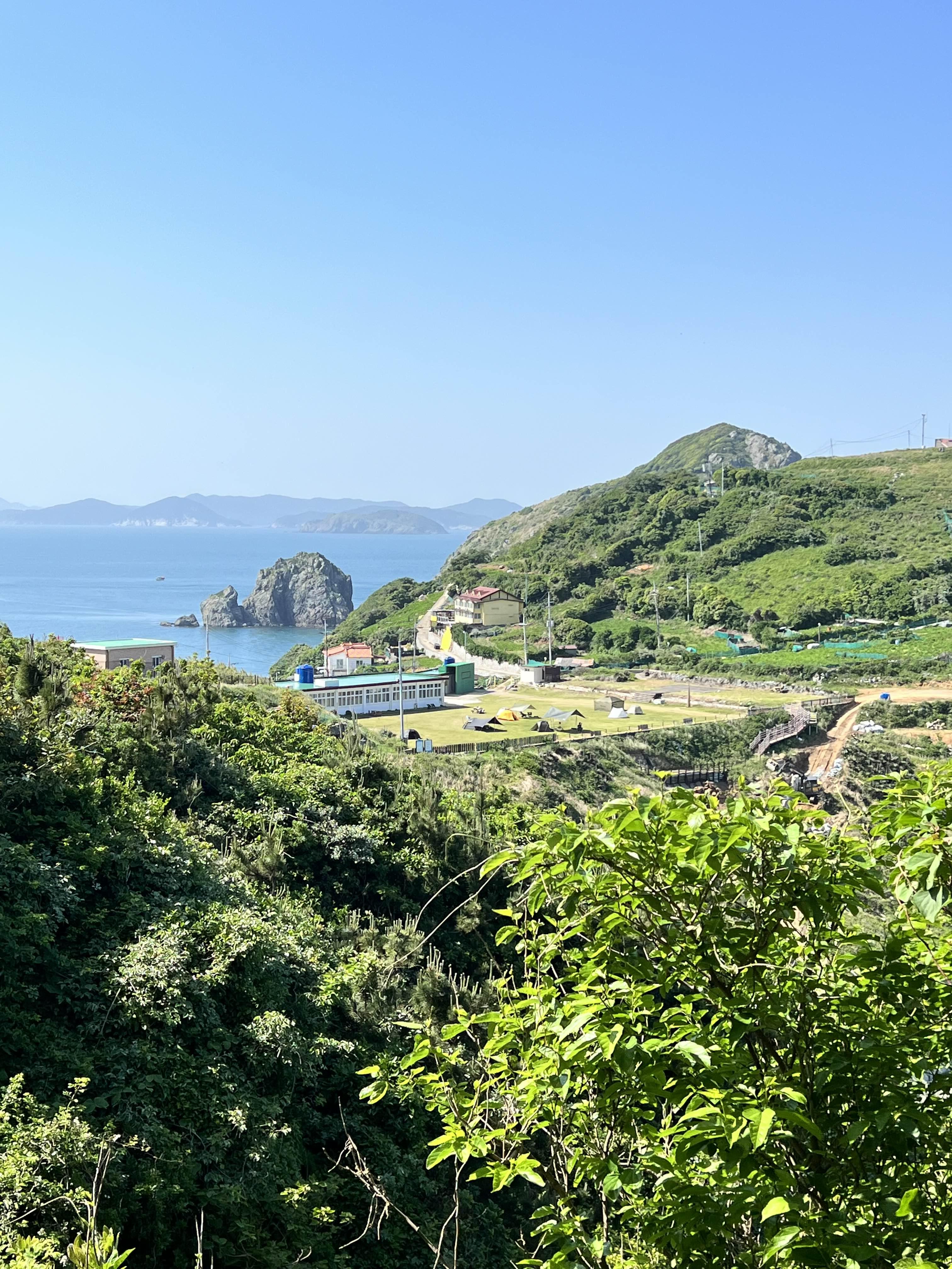 정자에 올라가면 이렇게 캠핑장이 멀리서도 보이고 섬을 한눈에 볼 수 있어서 좋았습니다. 시간은 왕복 1시간 정도 걸렸던 것 같아요. 운동할 겸 다녀와서 샤워하고 밥 먹으면 딱 좋습니다!