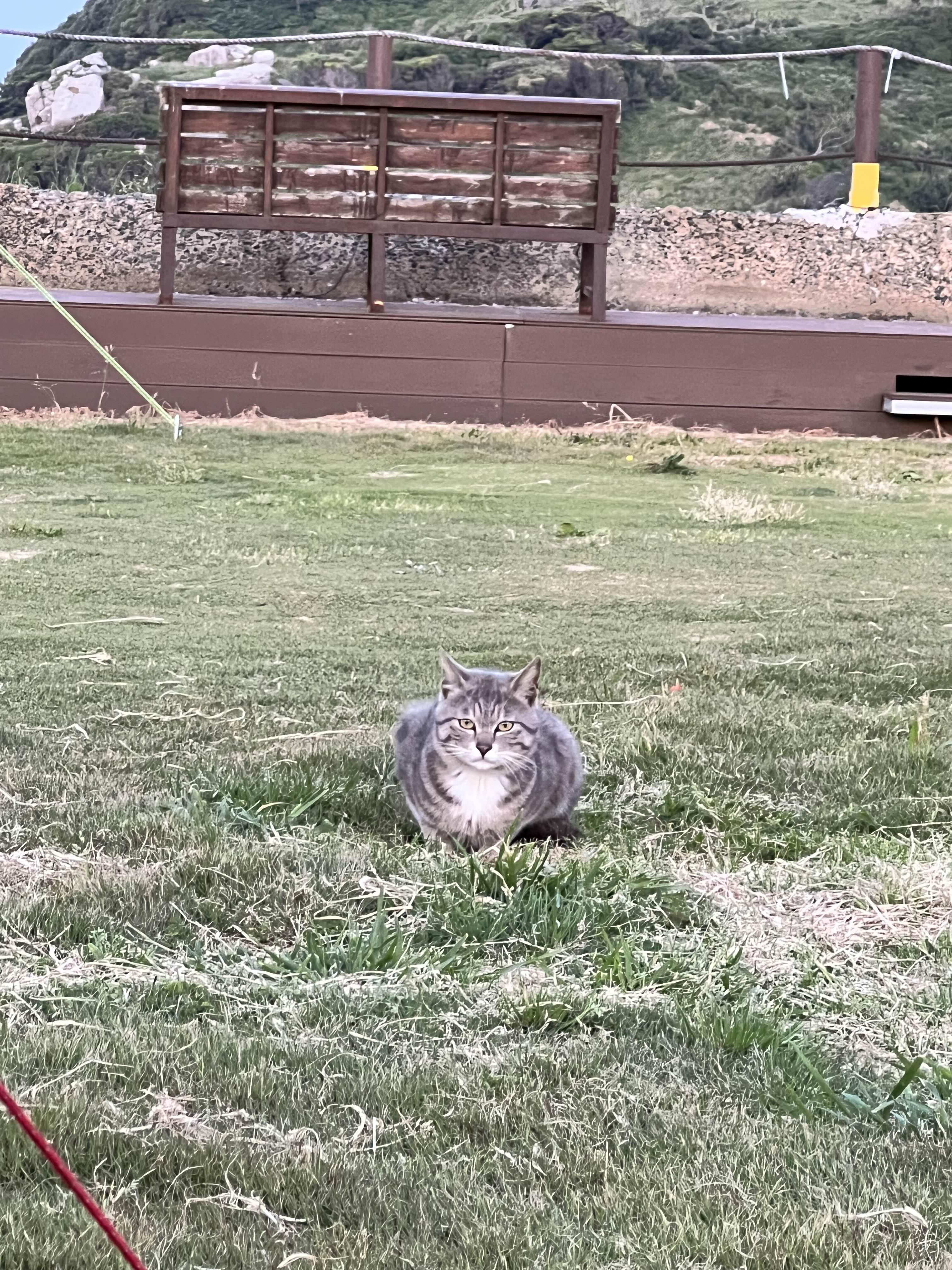 고기를 구워야 냄새를 맡고 올라오나 봐요. 귀엽기도 해서 사진도 여럿 찍었네요. 고양이 좋아하시는 분들은 간식 챙겨가서 주셔도 좋을 것 같아요. 텐트를 골라서 바로 앞에서 저렇게 빤히 쳐다보고 있습니다. 부담스러울 정도로요 ㅋㅋ