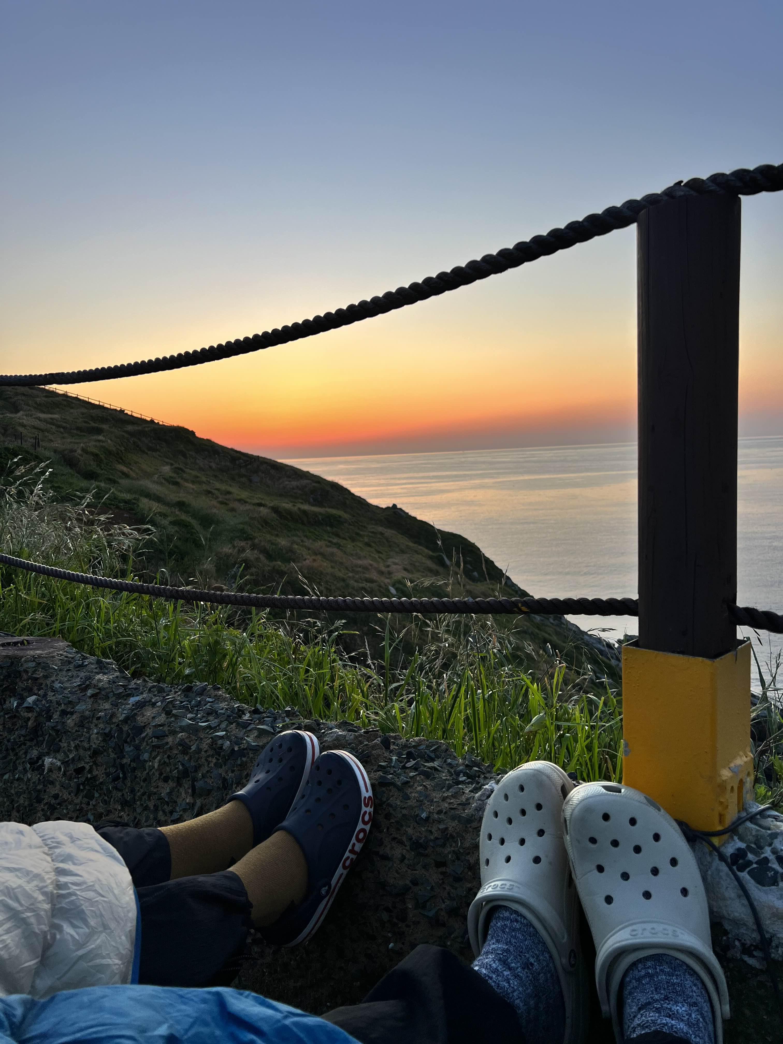 일몰은 그냥 바로 앞에서 해가 뜨니까 침낭을 뒤집어쓴 채로 나와서 벤치에 앉아서 보았습니다. 아침에는 그래도 꽤 춥기 때문에 침낭까지 들고 나왔습니다. 그리고 벤치가 있어서 조용히 앉아서 해가 뜨기만을 기다렸습니다. 온전하게 해가 수평선에서 뜨는 것을 볼 수 있어서 좋았습니다. 전날 술을 많이 먹지 말고 일찍 자고 일찍 일어나는 패턴으로 즐기시는 게 좋더라고요. 참고로 별도 많이 보입니다. 아래 사진 참고!