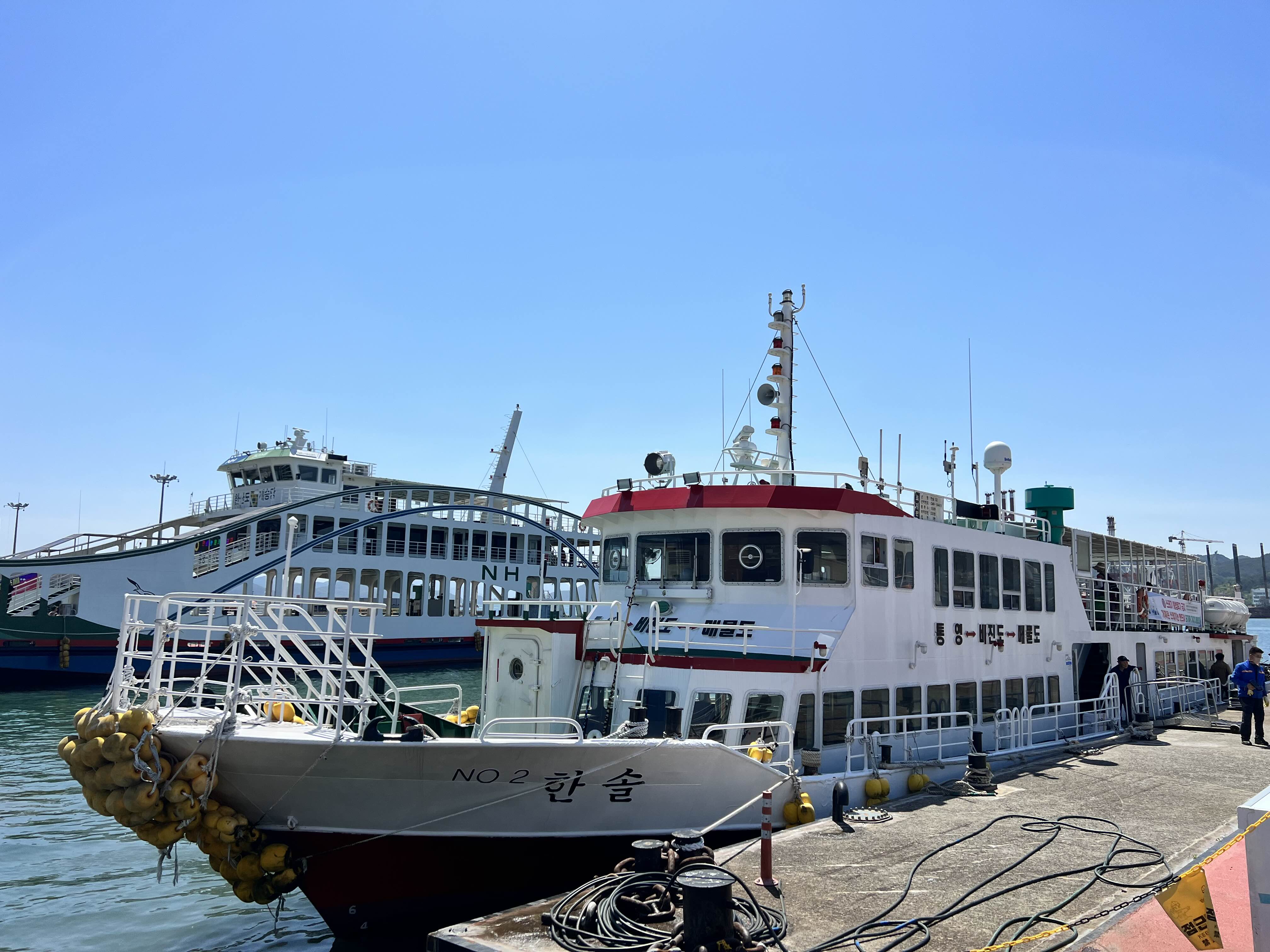 가실 때는 거제에서 출발하는 배(매물도해운)을 타시고 돌아올 때는 통영에서 출발하는 한솔해운 배를 타고 들어오시면 됩니다. 이제 이해되셨죠?!!