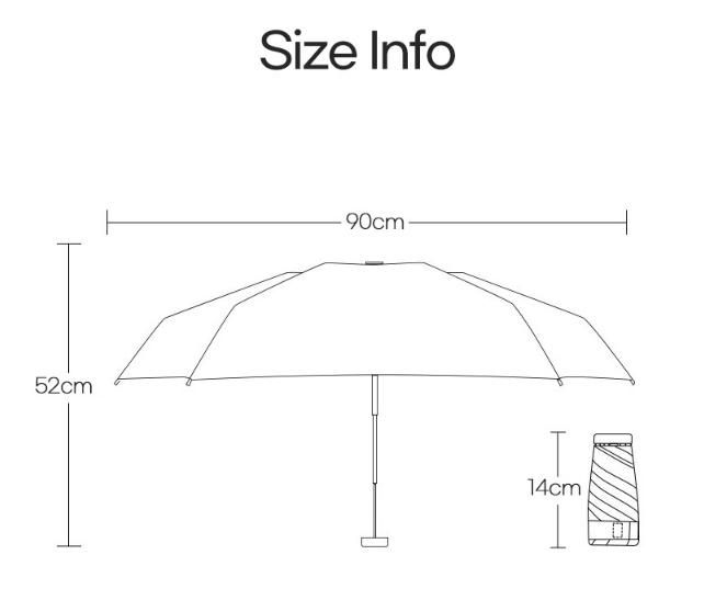 사이즈는 wpc나 데데리트나 비슷합니다. 90cm가 안 넘기 때문에 소형 우산이라고 보시면 됩니다. 그래서 접으면 정말 핸드폰사이즈로 되기 때문에 크게 부피를 차지하지 않습니다. 그래서 여름에 항상 가방에 넣어 다니면 좋아요. 해가 뜨면 양산으로 쓰고 갑자기 비가 오면 우산으로 쓰면 되기 때문이에요.