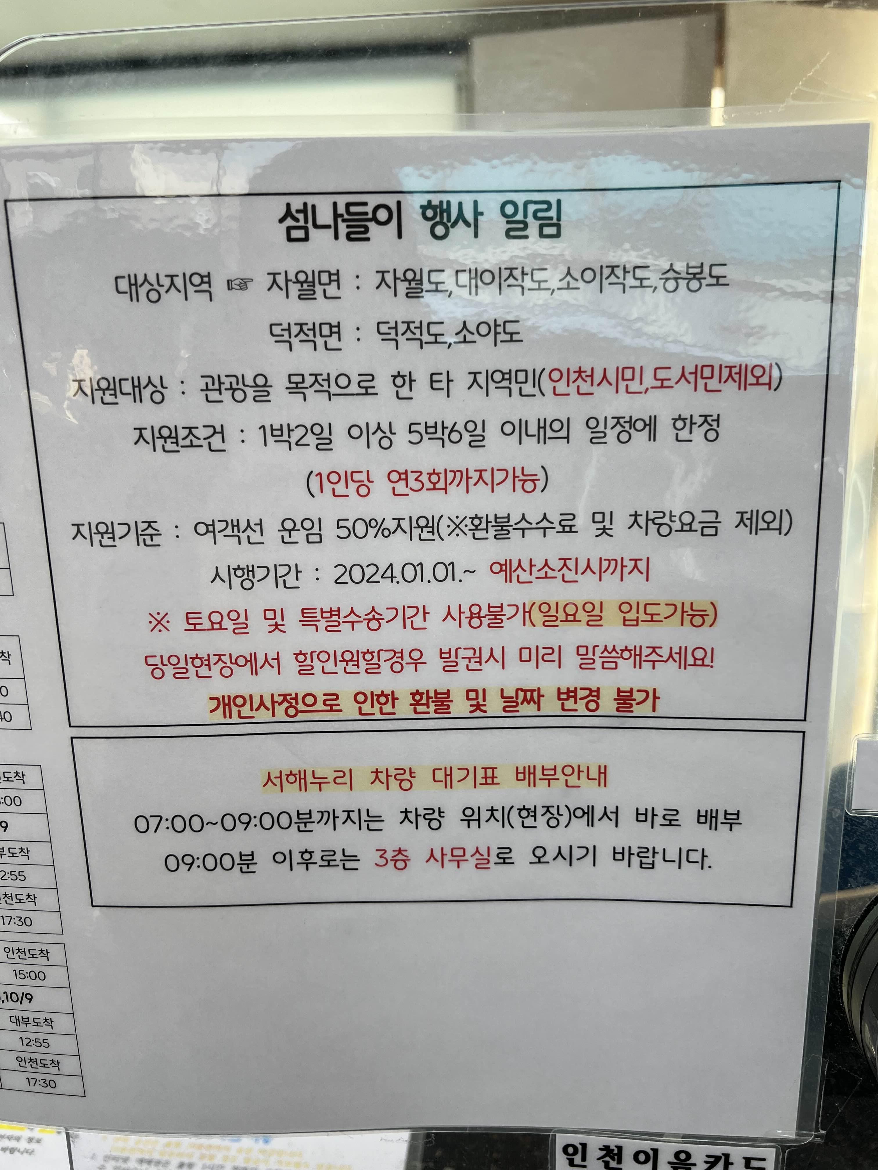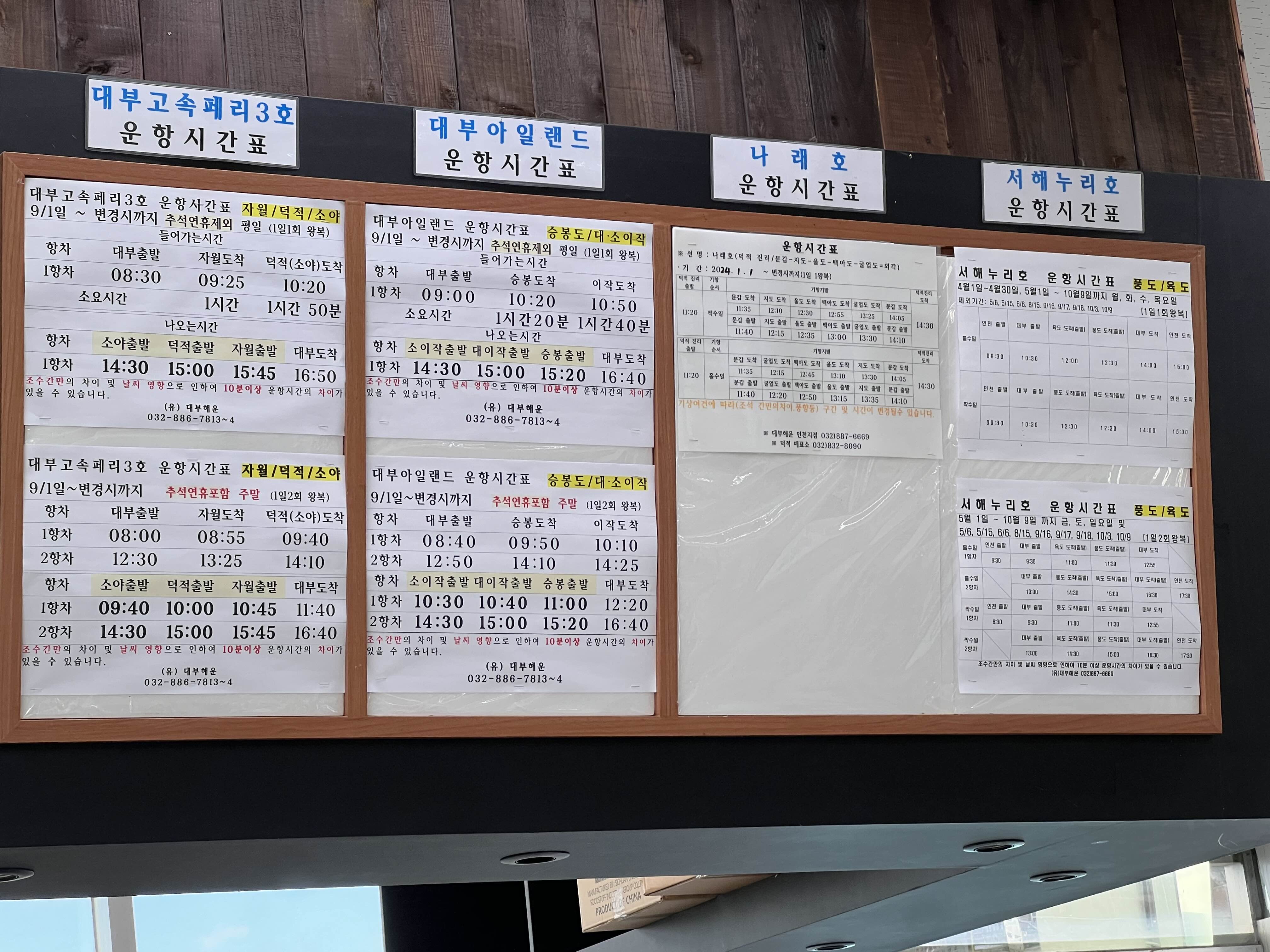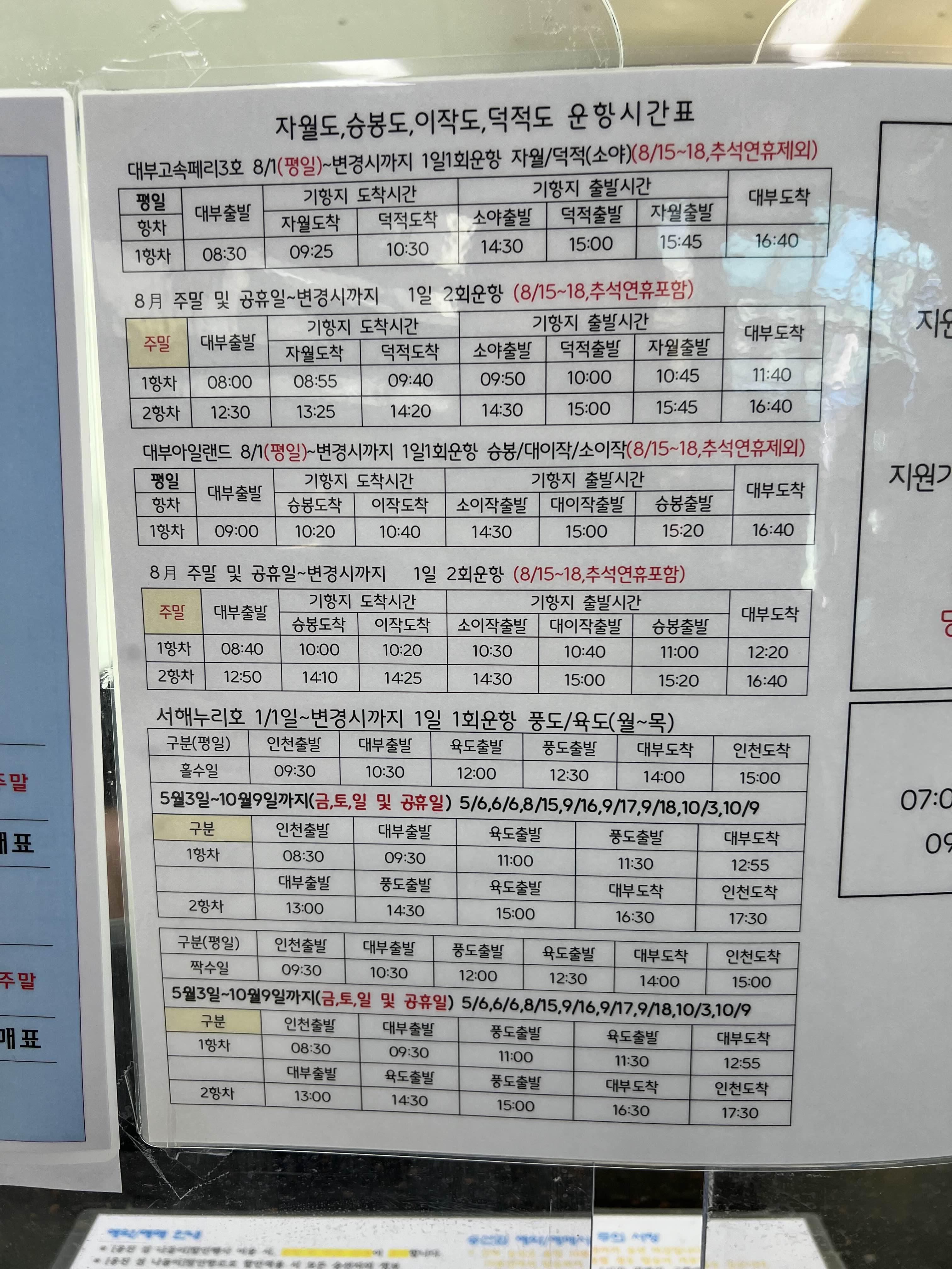 다른 섬으로 들어가신다면 배 시간표 확인하세요! 풍도도 많이 들어가기는 하더라고요!