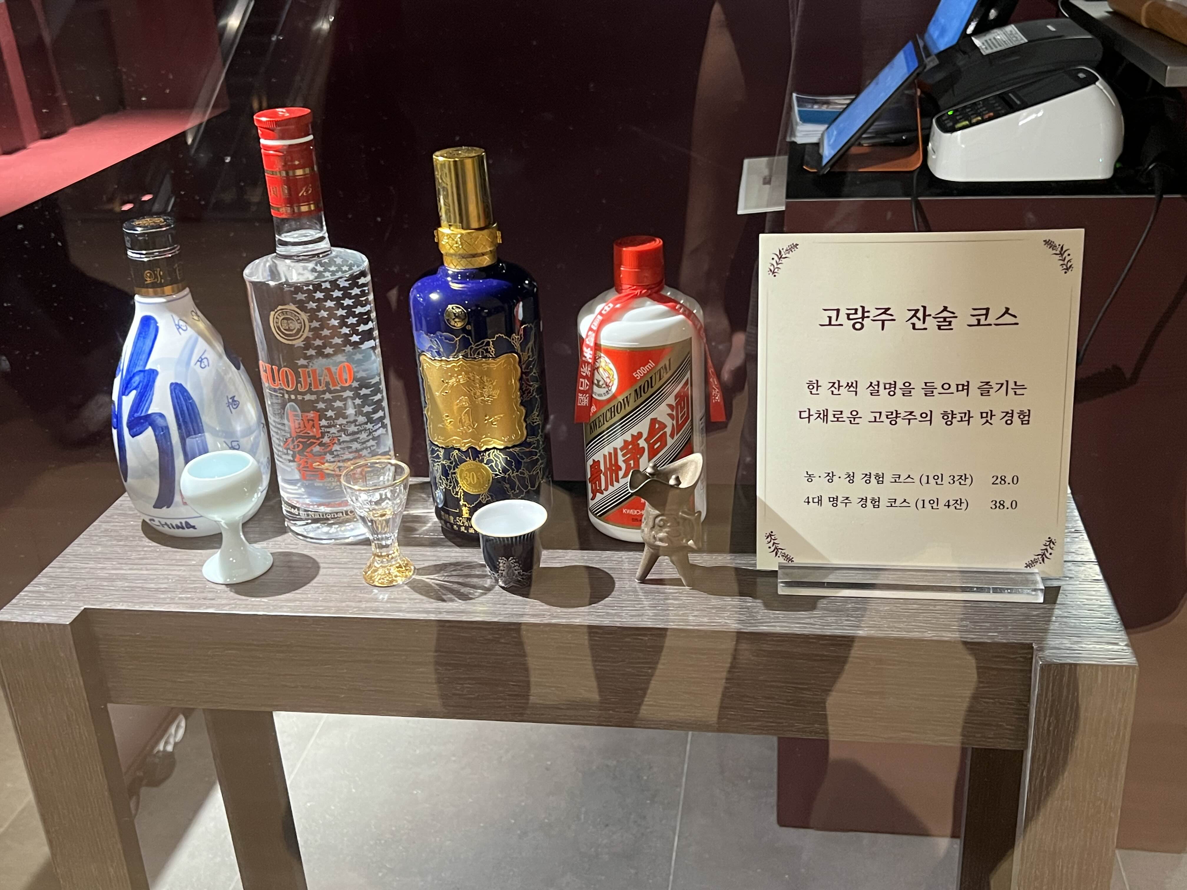 고량주관도 있었는데 1인 3잔에 28,000원, 1인 4잔에 38,000원으로 운영하고 있었습니다. 같이 식사하면서 고량주 즐기면 아주 좋을 것 같습니다.