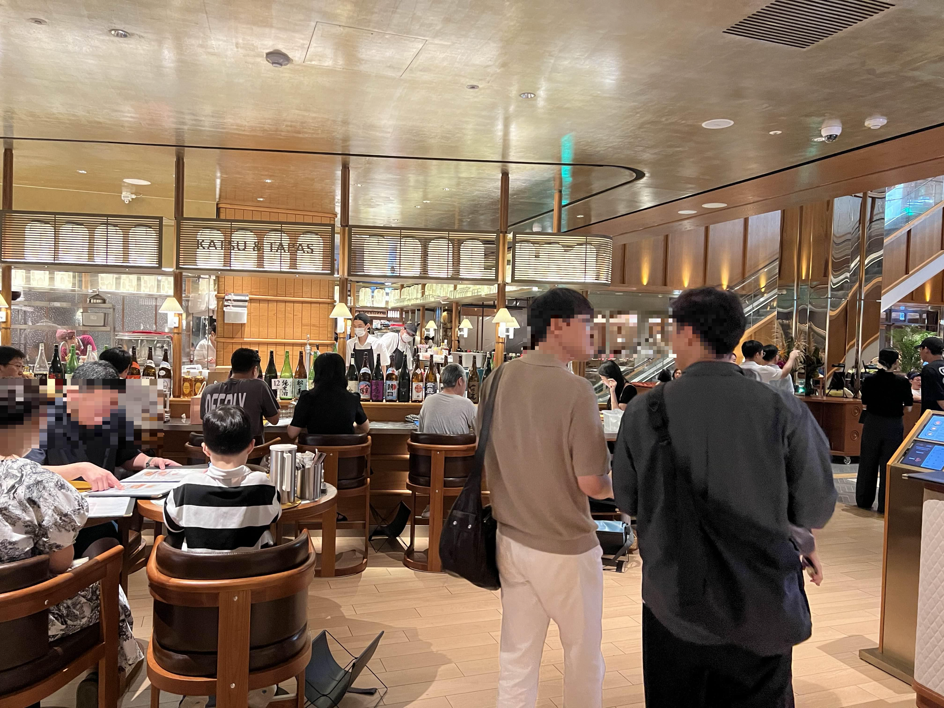 분위기가 일식인 곳들이 꽤 많았어요. 돌아다니면서 보니까 음식도 엄청 깔끔하고 푸짐하게 나오는 편이더라고요. 그래서 가격대가 조금 있습니다. 아무래도 고급지고 품질이 좋다보니까 어쩔 수 없어요. 그래서 약속장소를 잡거나 오랜만에 친구를 만나고 하면 가기에 좋습니다. 대기표를 등록하는 기기가 있어서 따로 모바일로 안내가 됩니다. 그래서 대기가 조금 있으면 1층 가서 술들을 구경하고 오면 됩니다. 아니면 가운데 로비 의지에 앉아서 쉬다가 가셔도 됩니다.