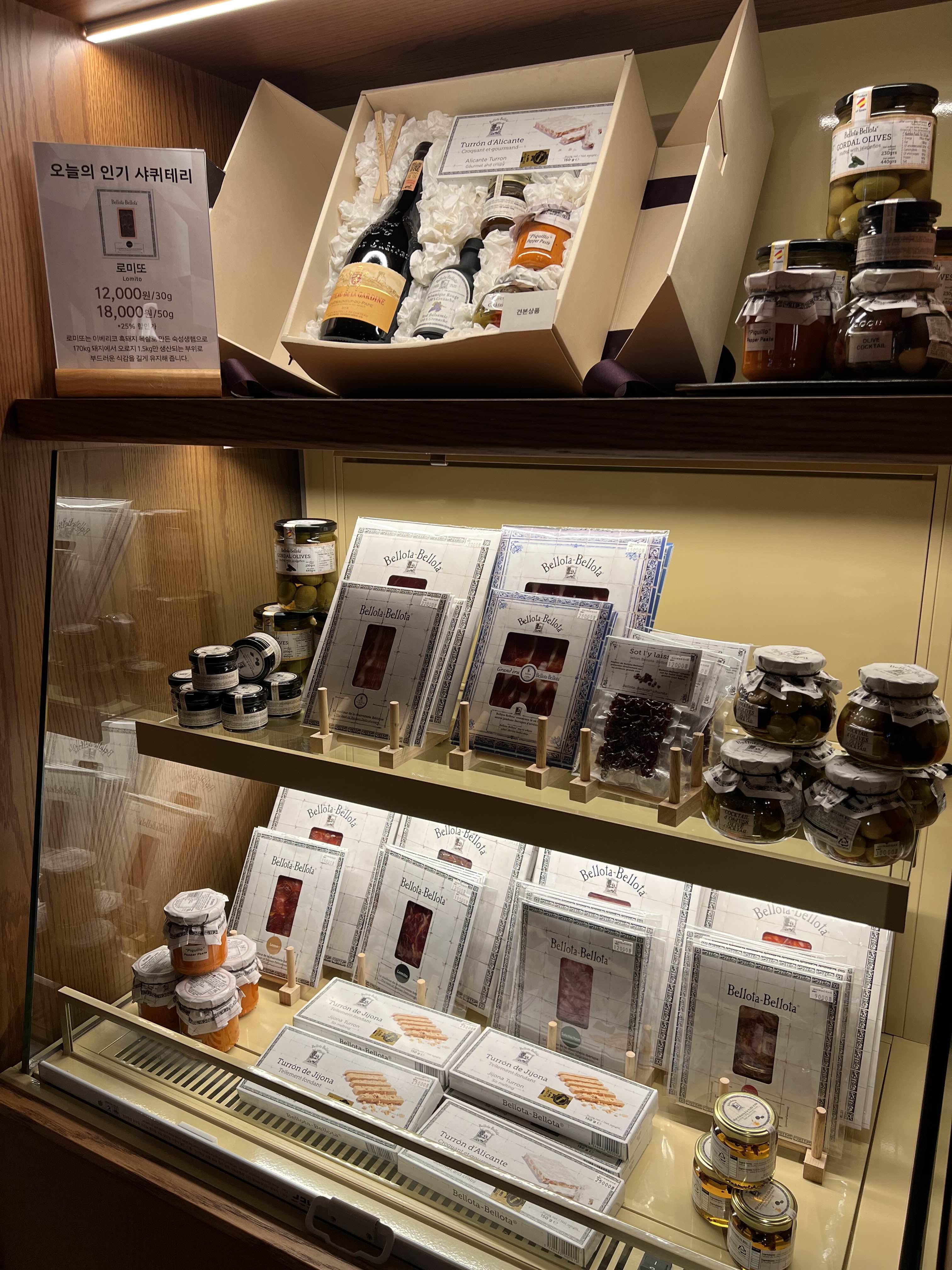 치즈도 있었는데 종류가 그렇게 많지는 않았습니다. 신세계백화점 지하 마트에서도 치즈를 구매할 수가 있어서 마트에 가서 구매했습니다. 와인을 구입하시면 치즈도 같이 구매하면 좋을 것 같아요. 샤퀴테리도 있어서 먼 걸음 할 필요 없이 한 곳에서 다 구매 가능합니다.