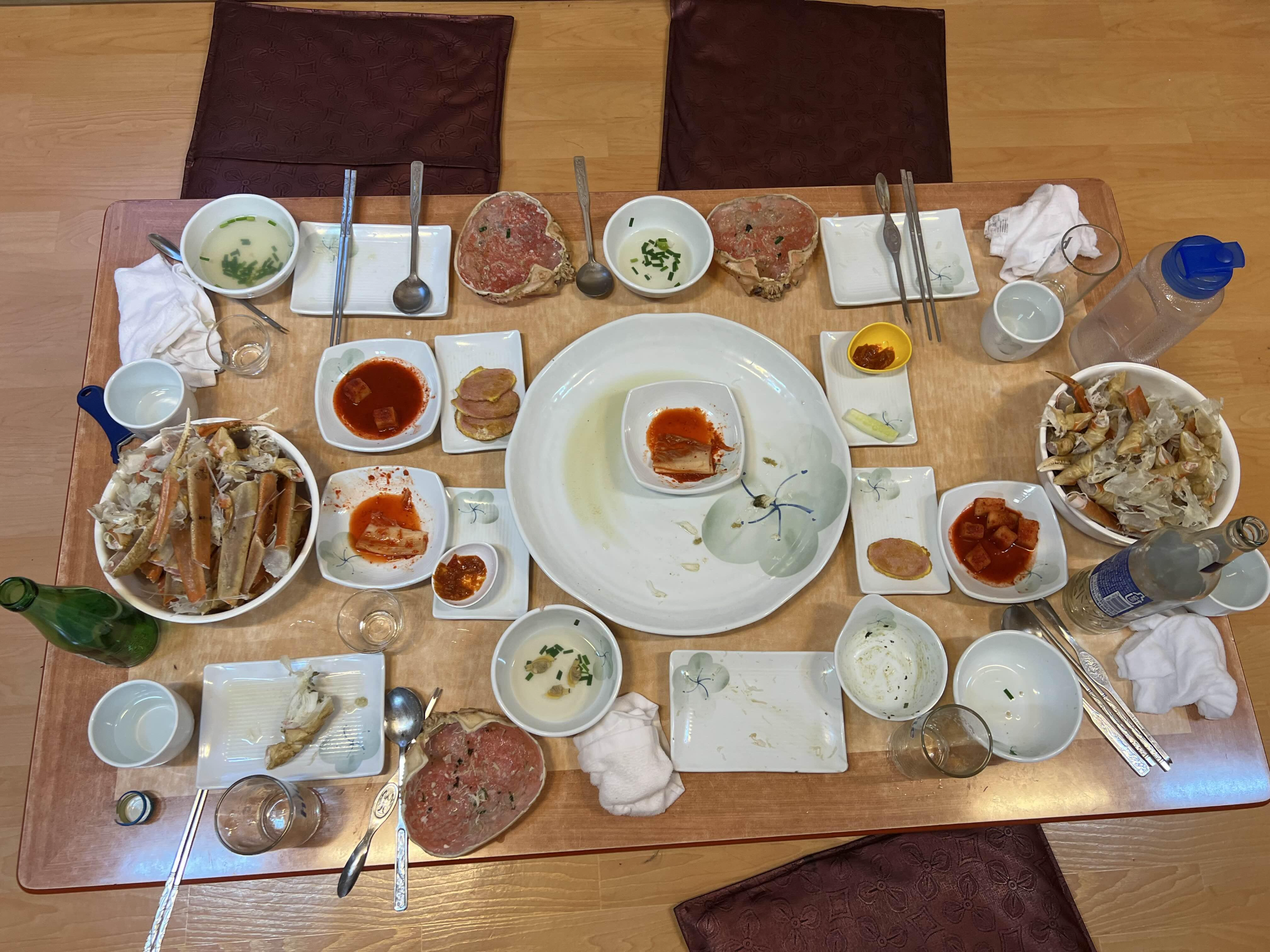 대게를 집에서 먹으면 음식물쓰레기도 어마어마한테 식당에서 먹으니까 양이 많아도 되고 치우거나 할 필요가 없어서 깔끔해서 좋은 것 같아요. 집에서 먹는 것도 좋겠지만(집에 큰 찜기가 없음..) 식당에서 기분 좋게 외식하시는 것도 좋습니다.
