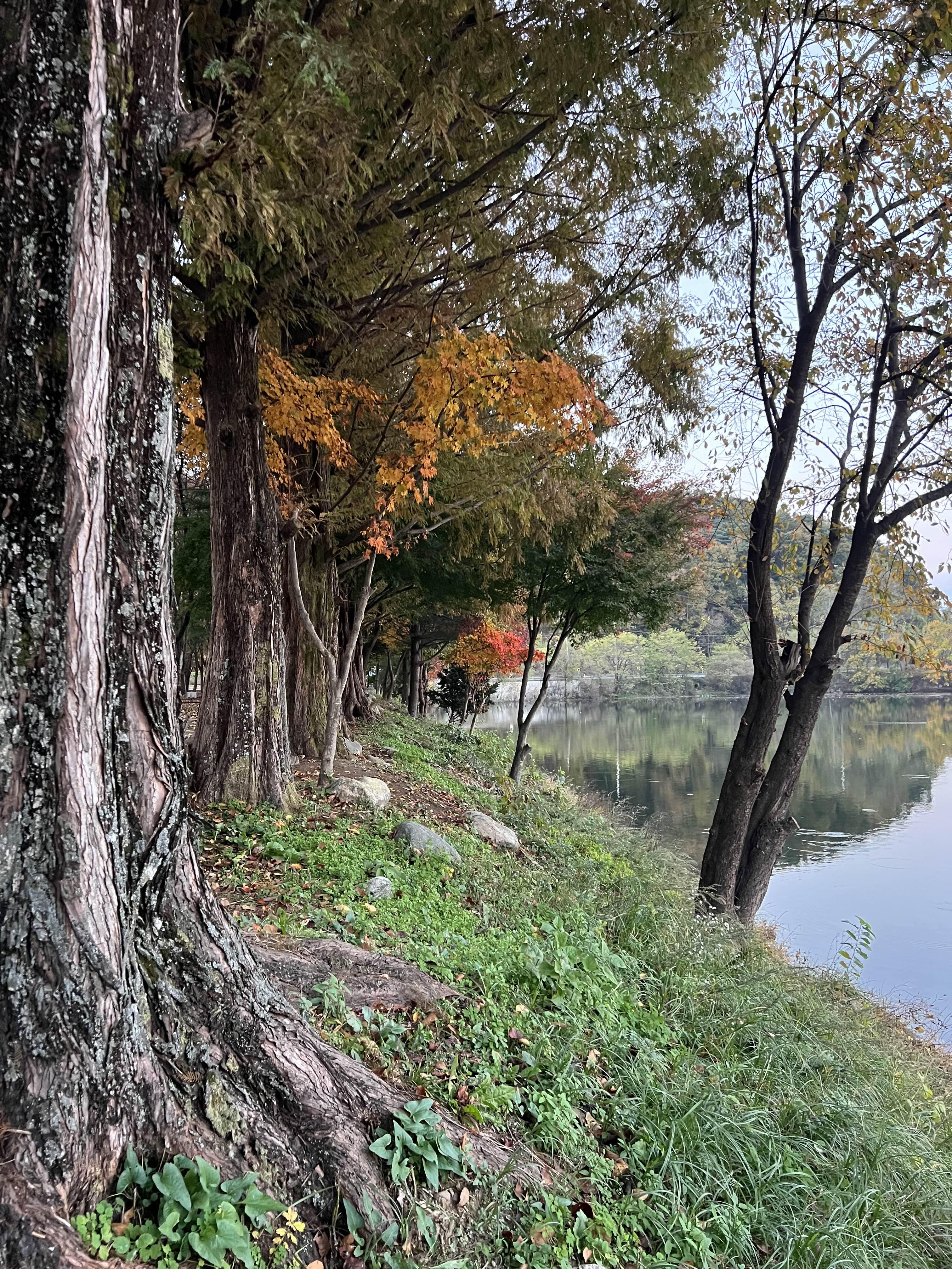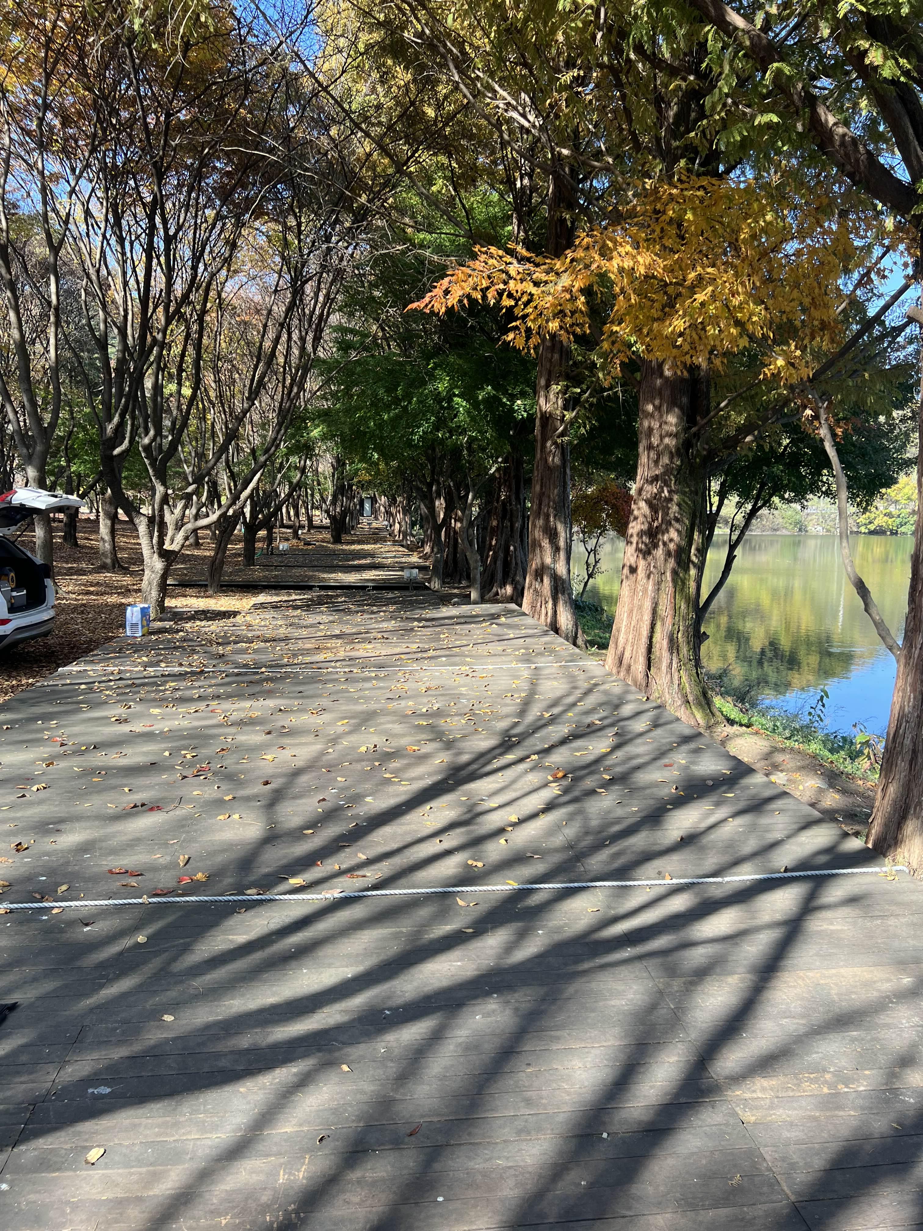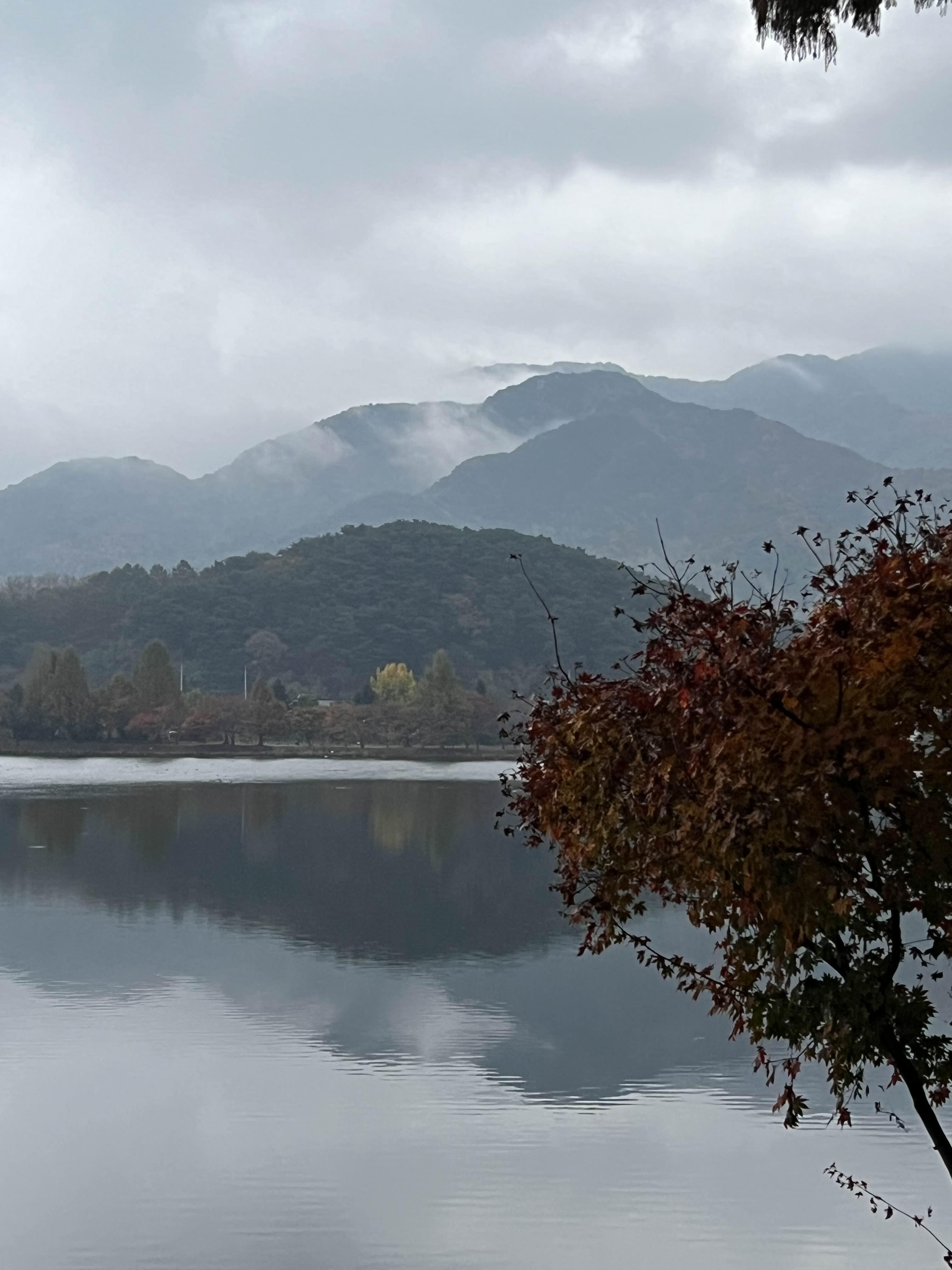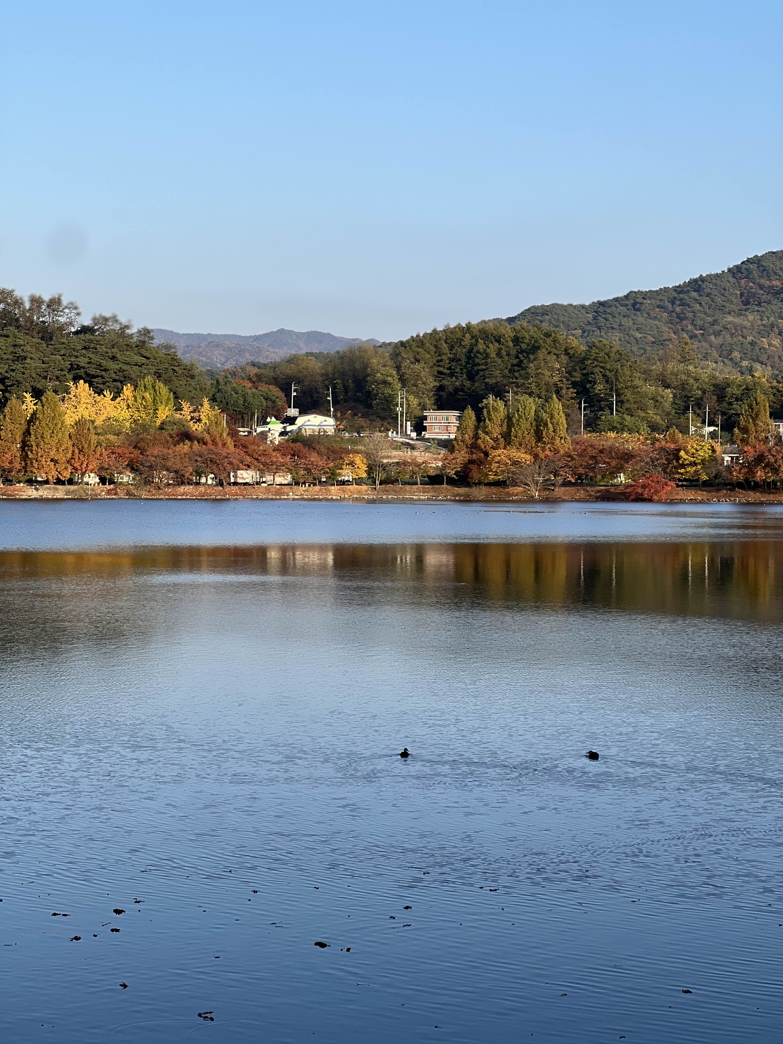11월 초에 단풍이 마지막 일 것 같아서 급하게 예약하고 캠핑을 다녀왔습니다. 다른 가을 캠핑장이 많은데 저희는 원주에 있는 구룡레저타운으로 가기로 했습니다. 저희가 이 곳으로 정한 이유는 호수뷰가 있기 때문입니다. 정확히 말하면 호수가 아니고 저수지입니다. 이름은 학곡저수지고 맞은편에 삼나무와 산들이 아름다워서 다른 캠핑장보다 더 매력적으로 보였습니다.