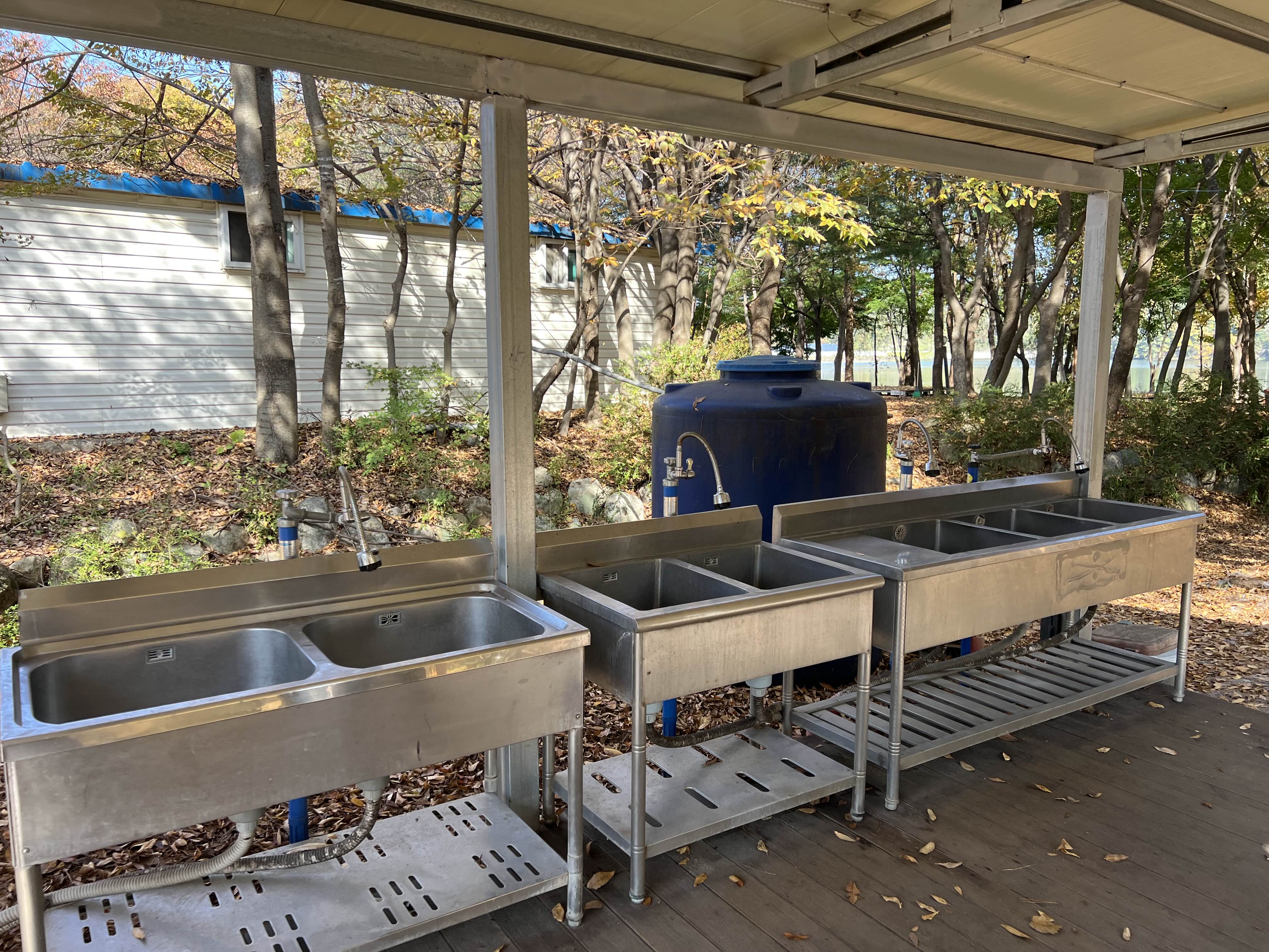 데크 외에도 뒷편에 공원처럼 공간이 있어서 이 쪽에도 텐트를 치고 하시나봅니다. 개수대는 넉넉했어요!
