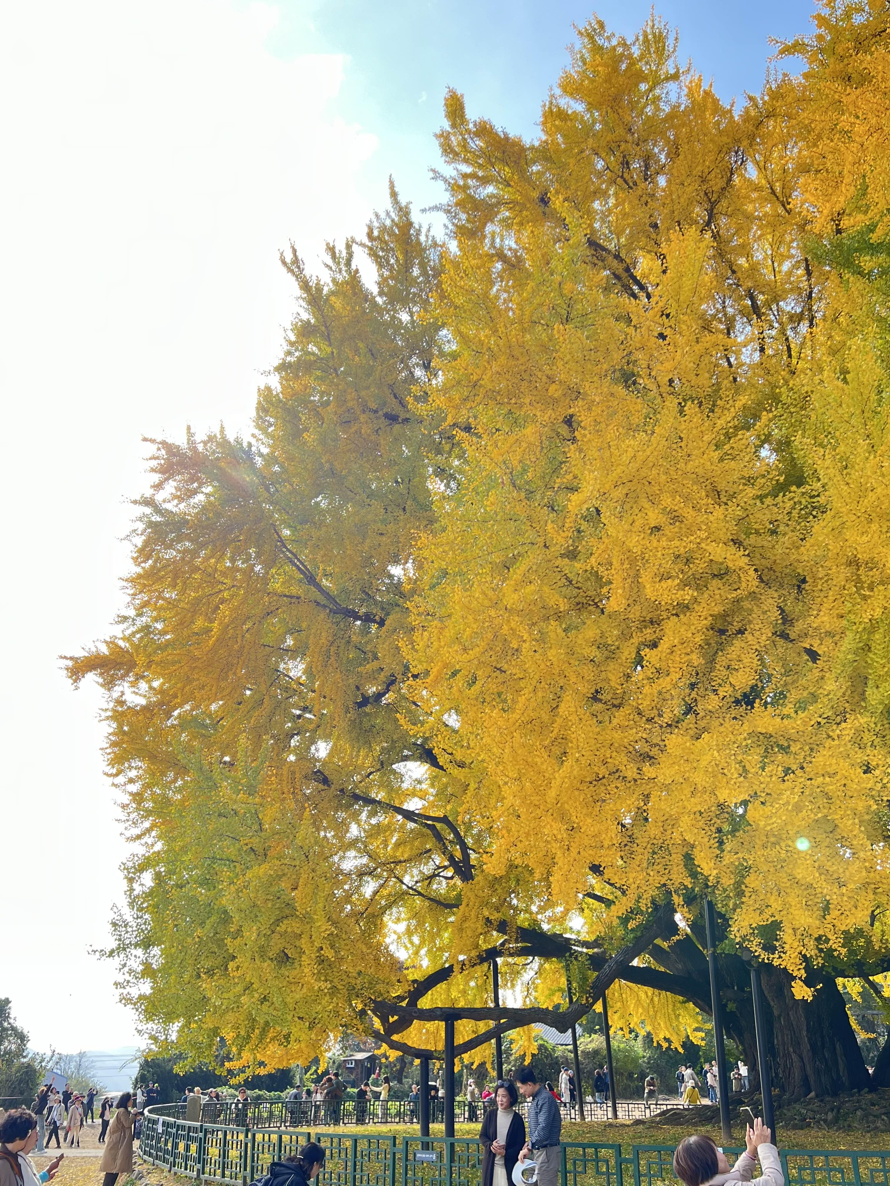 저희는 11월 초에 다녀왔는데 아직도 초록부분이 있었습니다. 인터넷에서 10월 말이 절정이라고 했는데 아직 절정이 아닌 듯합니다. 어쩌면 날씨가 뒤죽박죽이라 은행나무도 절정을 잘 못 찾고 방황하는 듯해요.