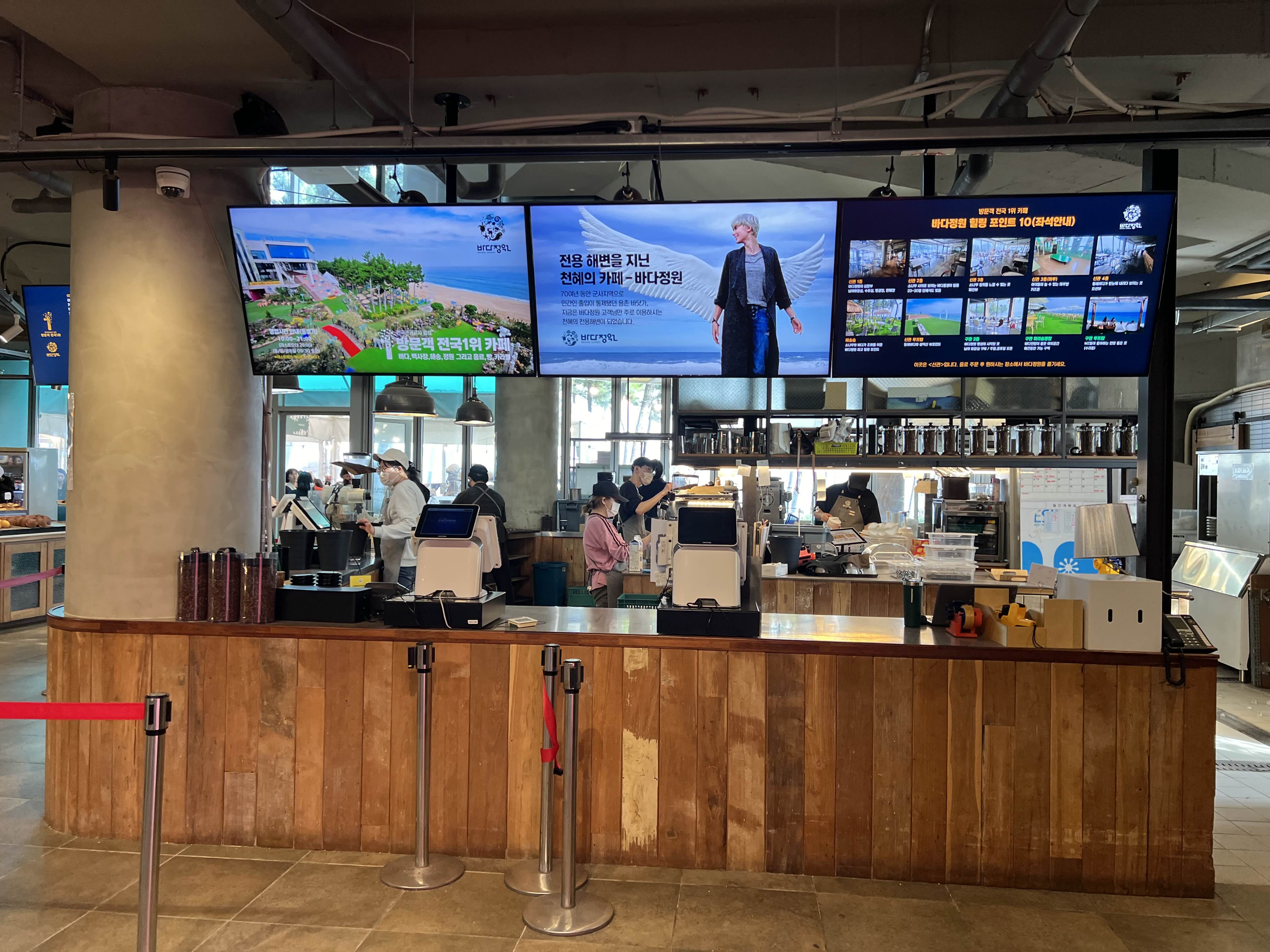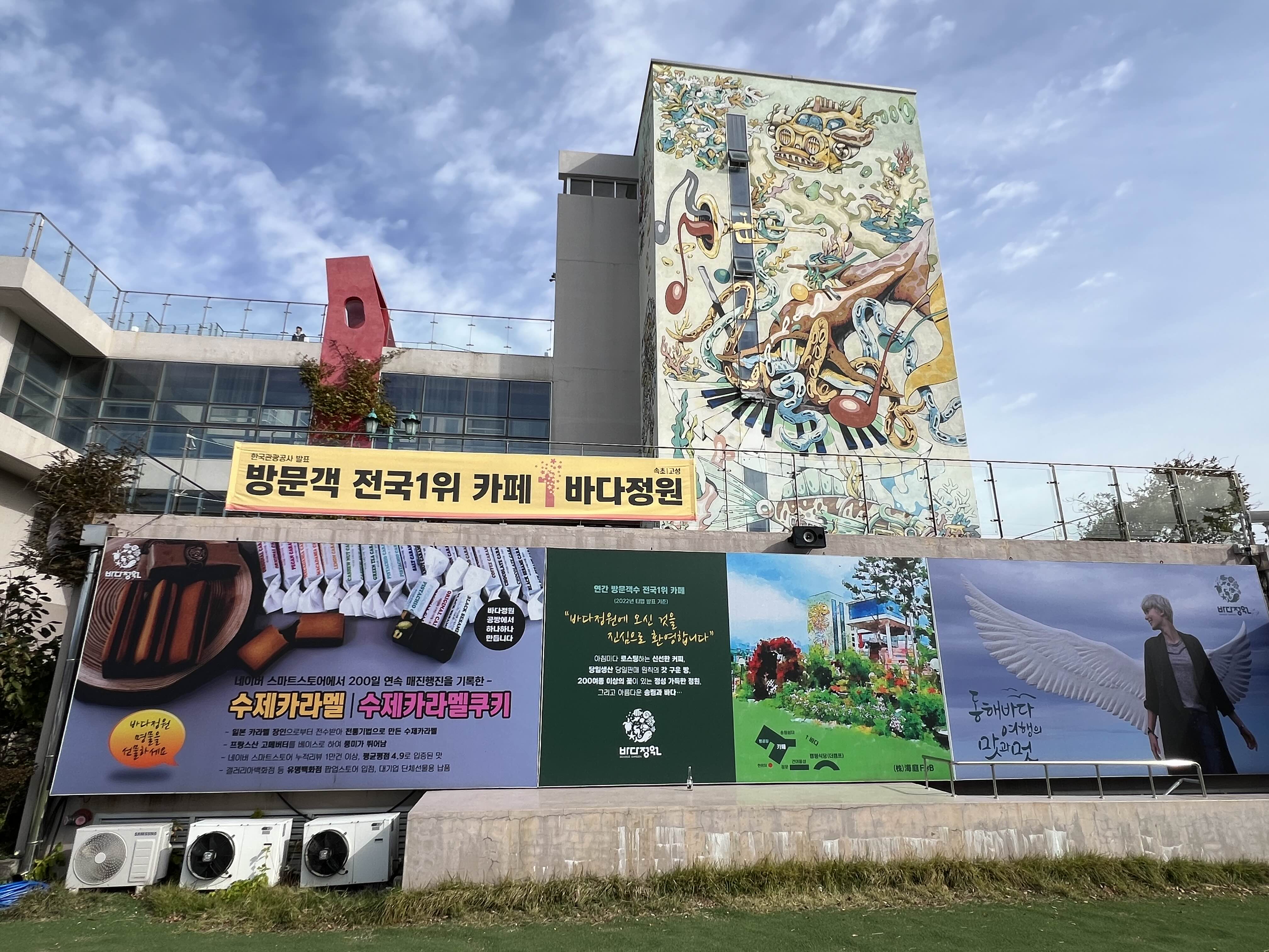 바다정원은 국내에서 방문객이 가장 많은 카페라고 합니다. 겉에서 현수막 보고 들어가니까 왜 방문객이 많은지 알 것 같아요.