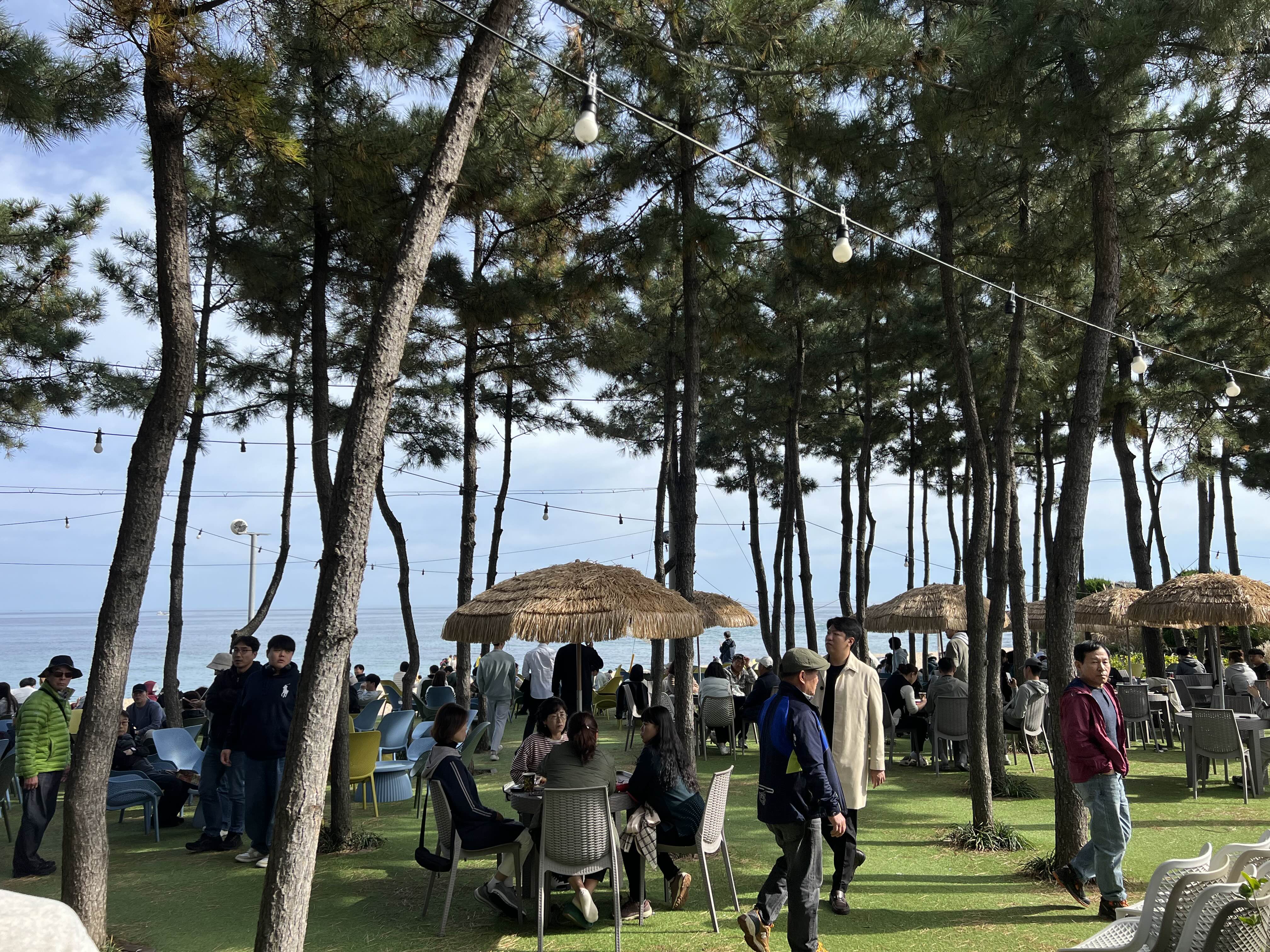 1. 1층~5층까지 자리가 엄청 많이 있고, 해변가 소나무숲이 있어 바다뷰를 옥외에서 즐길 수 있다.