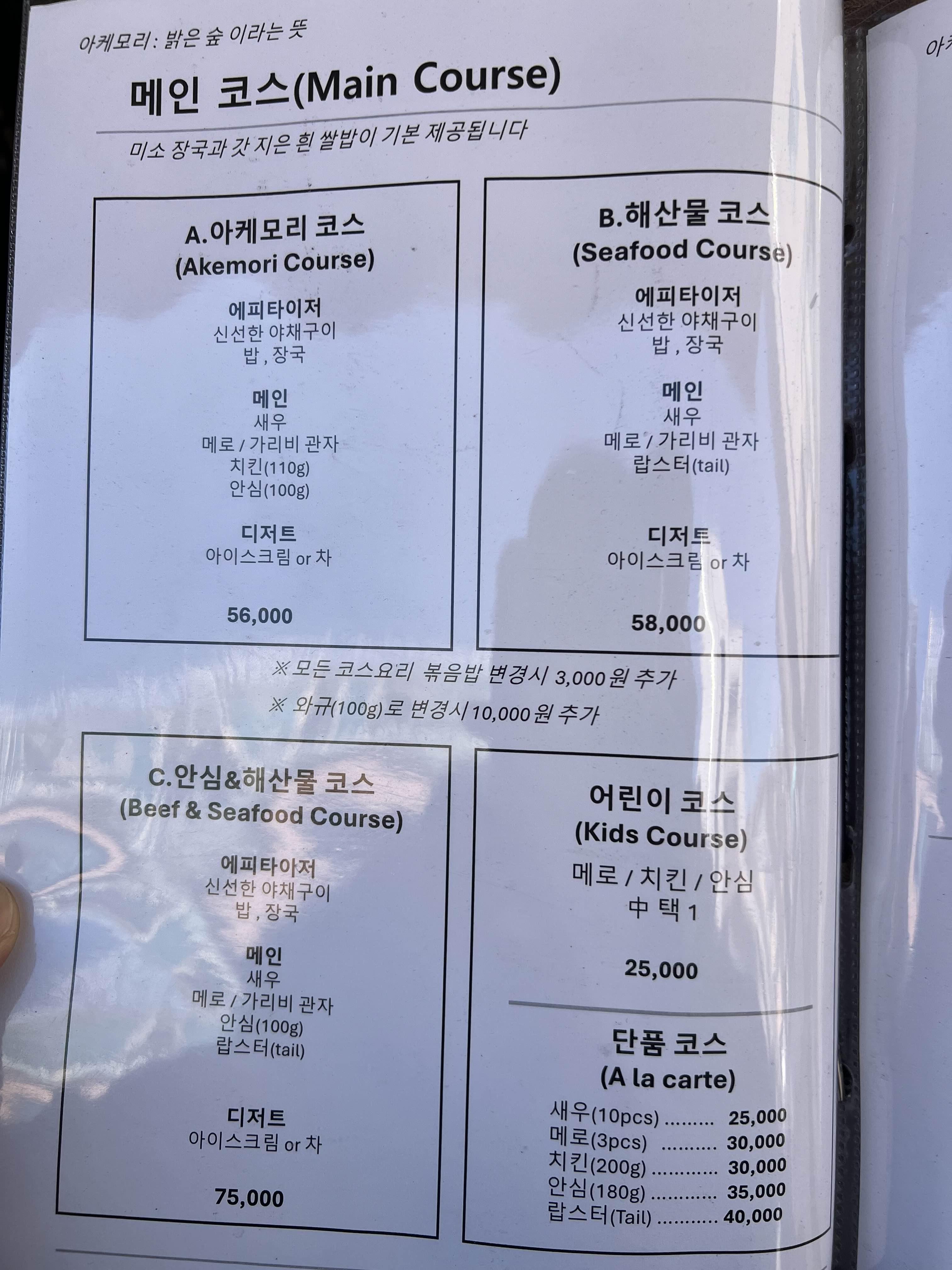 A. 아케모리 코스(Akemori Course) : 56,000원