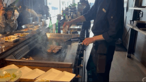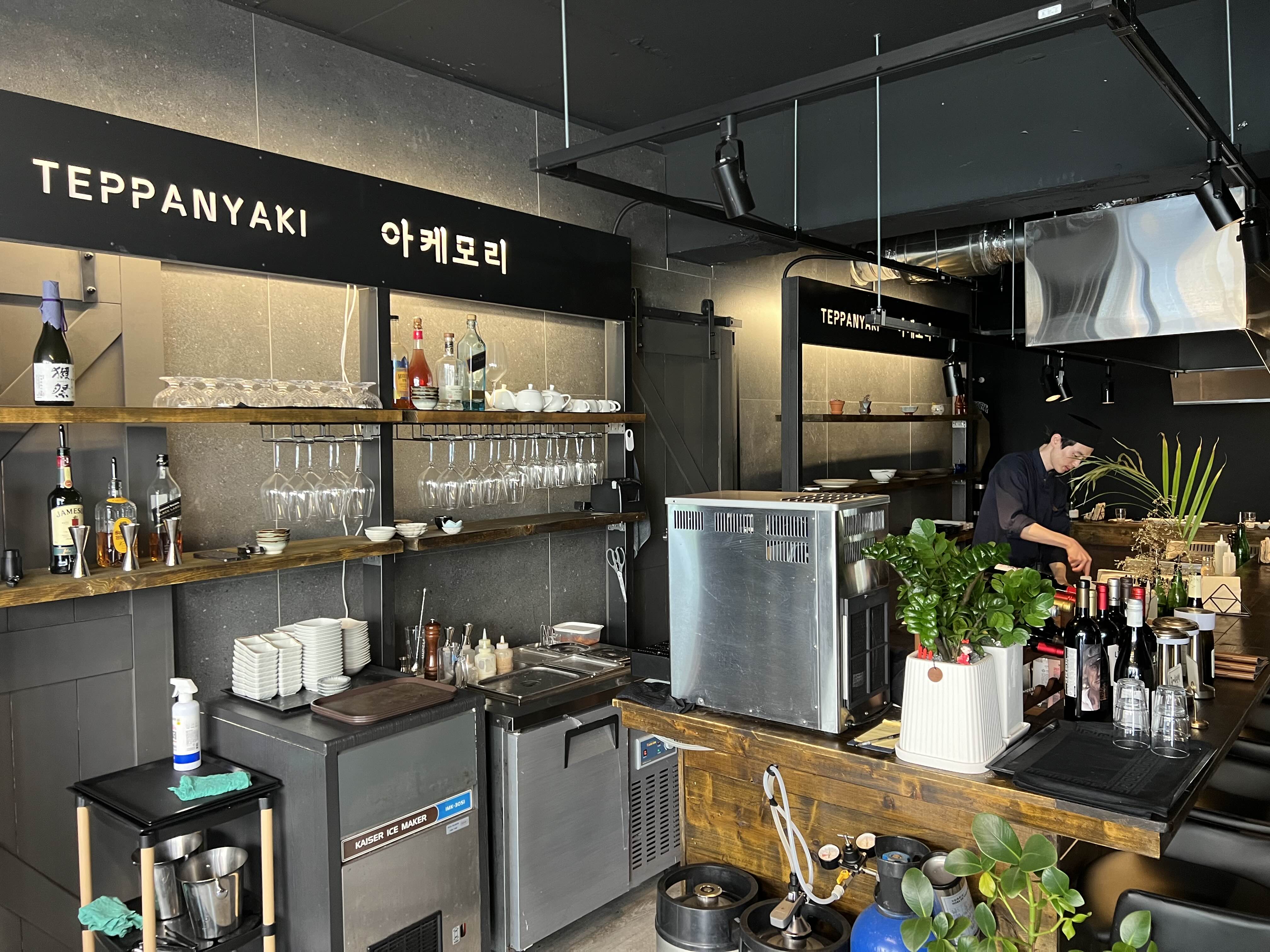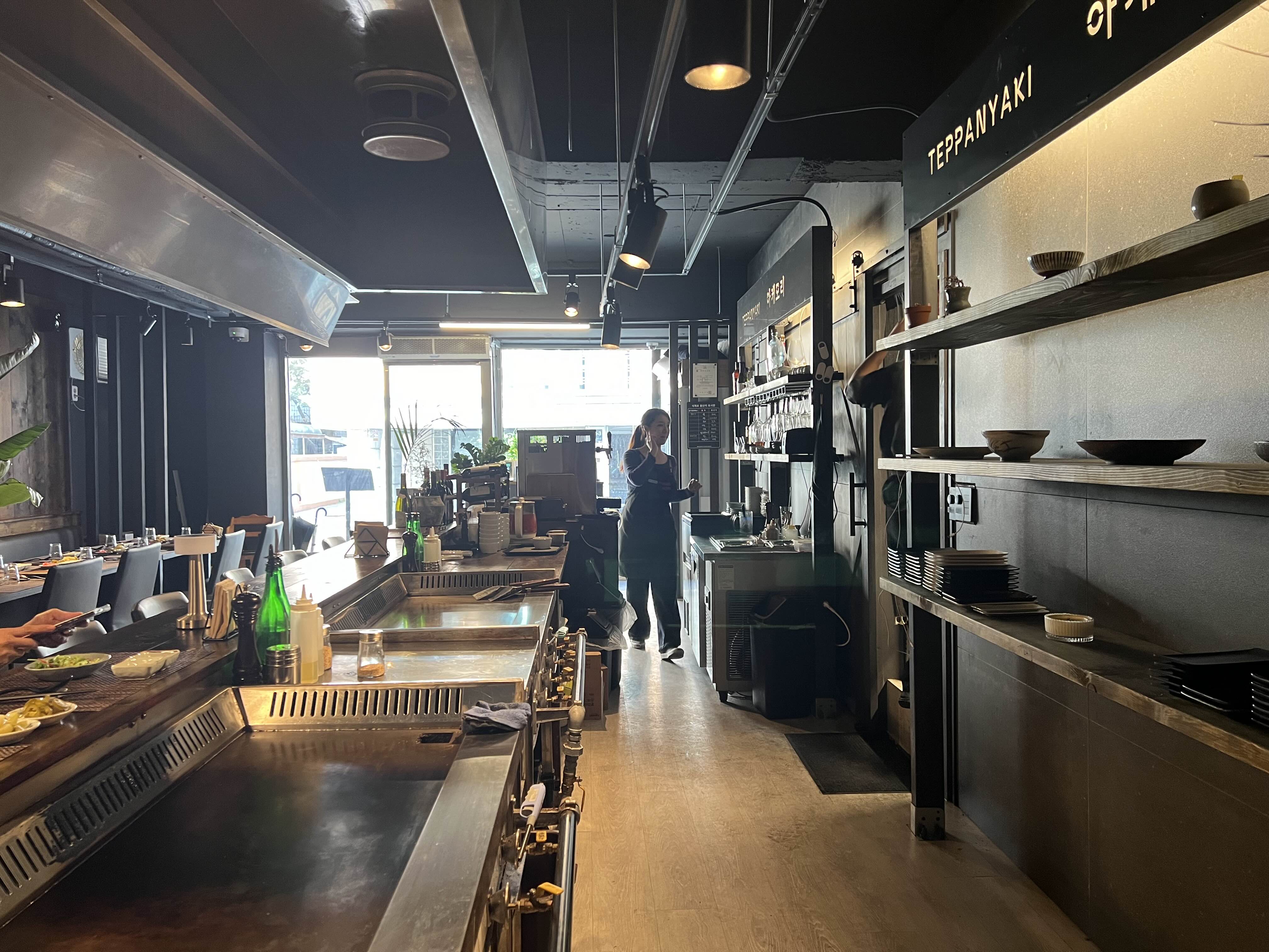 식당 내부는 길게 철판이 있어서 철판 앞으로 좌석이 길게 있습니다. 저희는 철판 앞에서 먹고 싶어서 예약을 할 때 미리 이야기해두었습니다. 철판요리를 그냥 즐겨도 좋지만 직접 요리하는 모습을 보는 것도 중요하다고 생각합니다. 셰프님은 한명이었고, 서빙 한 분이 보조해주었습니다.