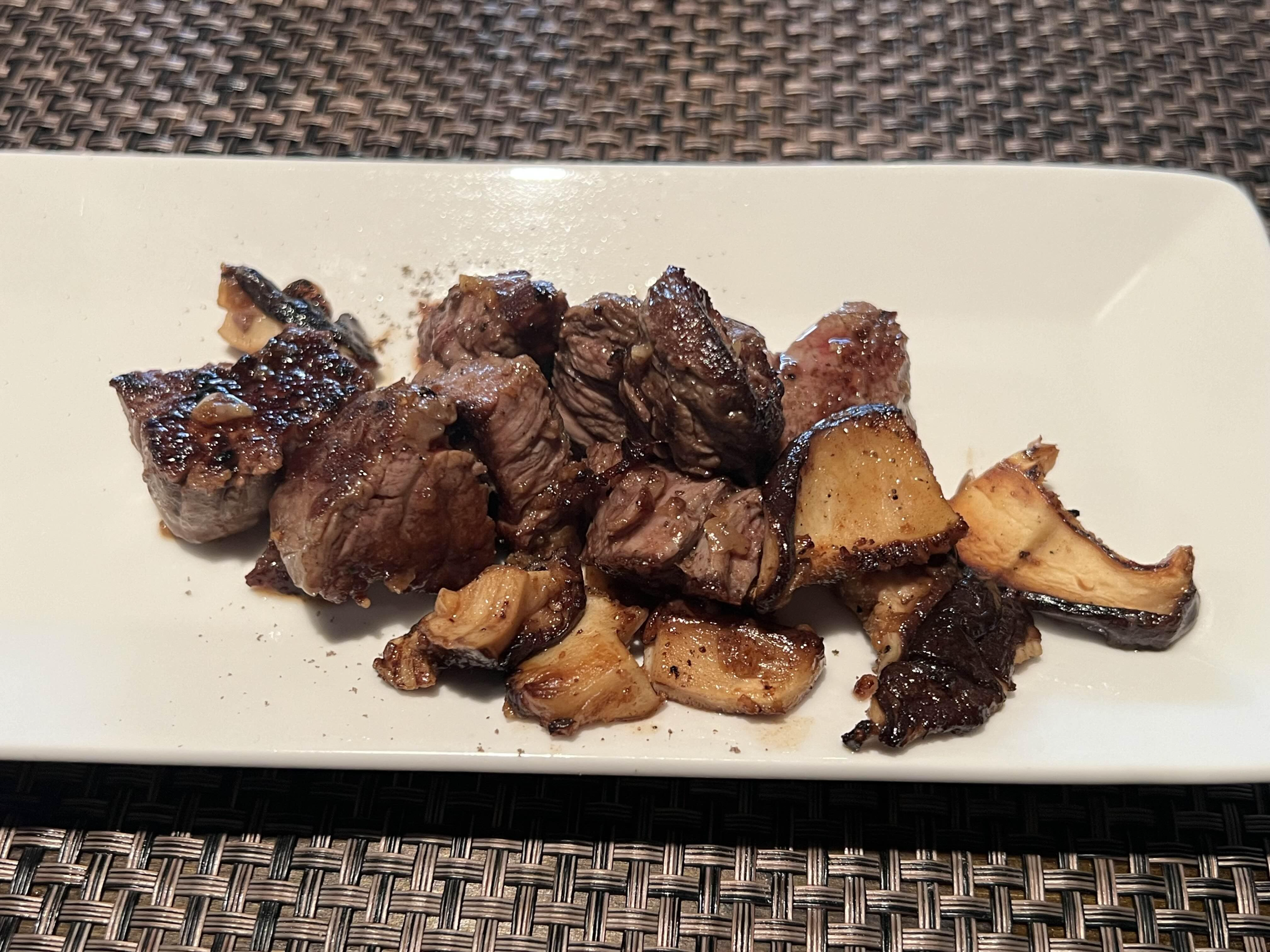 마지막은 안심 스테이크 였는데 이 부분에서는 아래 영상에 보시듯이 불쇼를 해주셨어요! ㅋㅋㅋ 깜짝 놀랐는데 너무나 신선한 경험이었습니다. 뜨겁지 않았는지 안부를 묻게 되는 쇼였습니다. ㅋㅋㅋㅋ셰프님이 정말 대단한 것 같아요. 저런 능력 있으면 캠핑가서 그리들에 한번 해볼 수 있지 않을까....ㅋㅋㅋ내심 부러웠습니다.