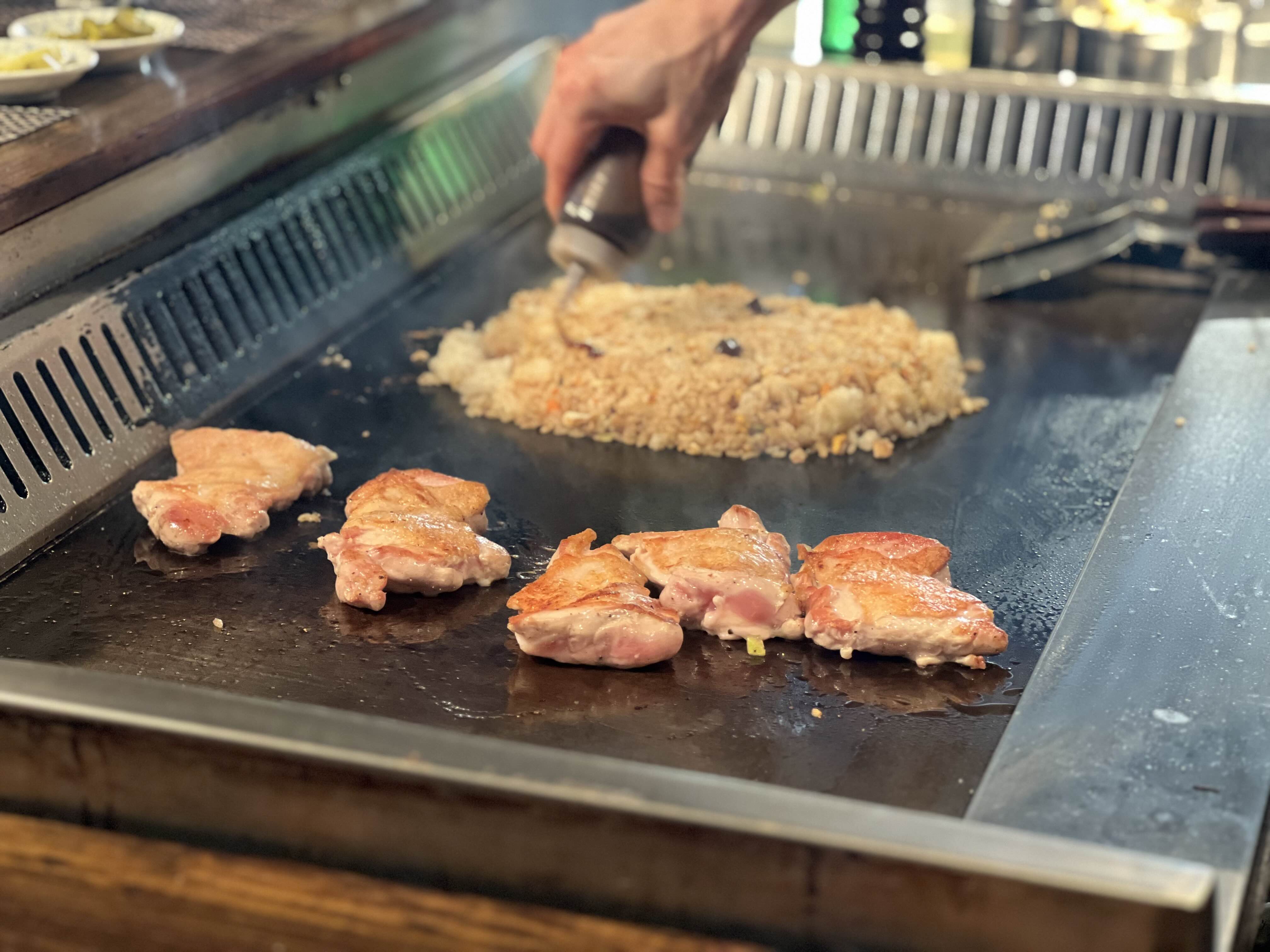 저희가 먹고 있으면 다음 요리를 바로 해주세요. 다음은 치킨 요리이고, 볶음밥도 같이 해주셨습니다. 볶음밥은 잘 볶은 다음에 그림도 그려주셨어요. 저희 일행중에 안경끼신 분이 있었는데 비슷하게 그려주셨어요! 만약 커플이 갔으면 이벤트로 해주실 것 같아요. 아이를 데리고 가도 좋을 것 같기도 해요! 안 먹는 음식도 철판으로 재밌게 해주면 잘 먹을 것 같아요.