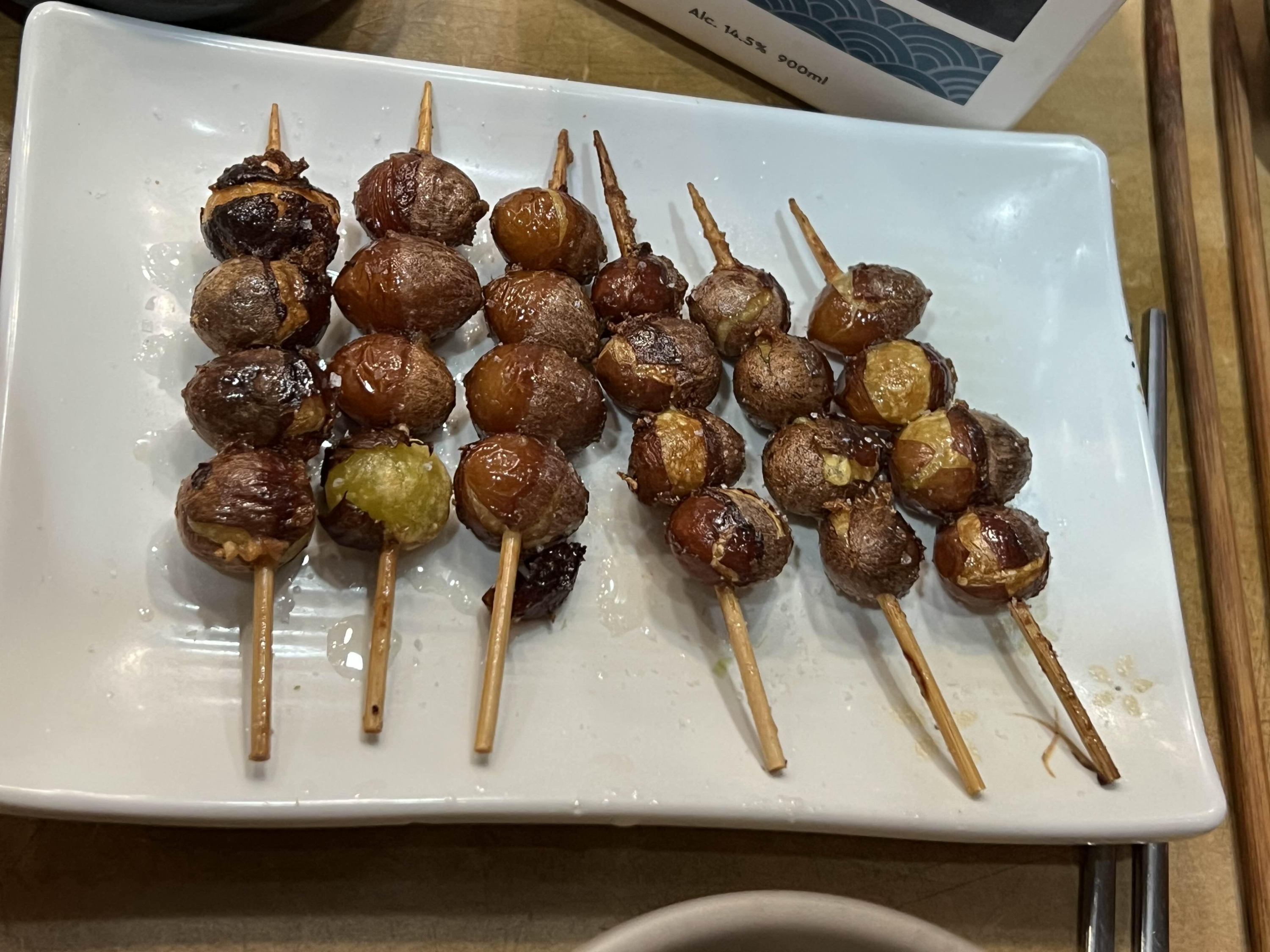 히레 정종을 하나 먹고 나서 옮겼는데 처음에는 따듯하게 히레정종을 드시는 것을 추천드립니다. 비린맛을 정말 싫어하신다면 사케를 시켜서 따듯하게 데워서 달라고 하면 데워서 주십니다. 사케는 이벤트를 하고 있어서 사케 1팩을 주문하면 은행구이를 서비스로 주세요. 그래서 저흰 사케 1팩을 주문해서 먹고 부족하면 사케잔으로 마셧습니다.