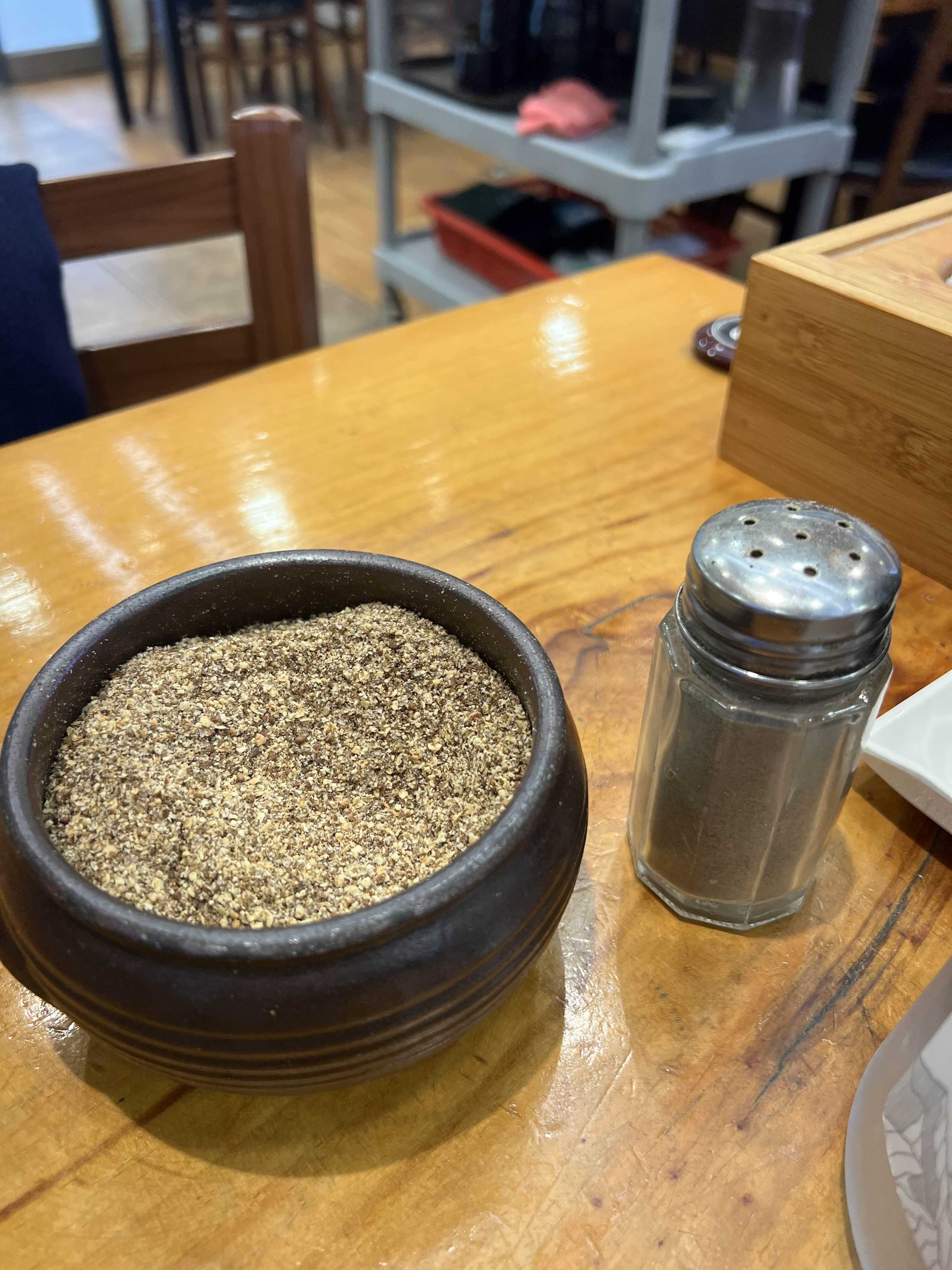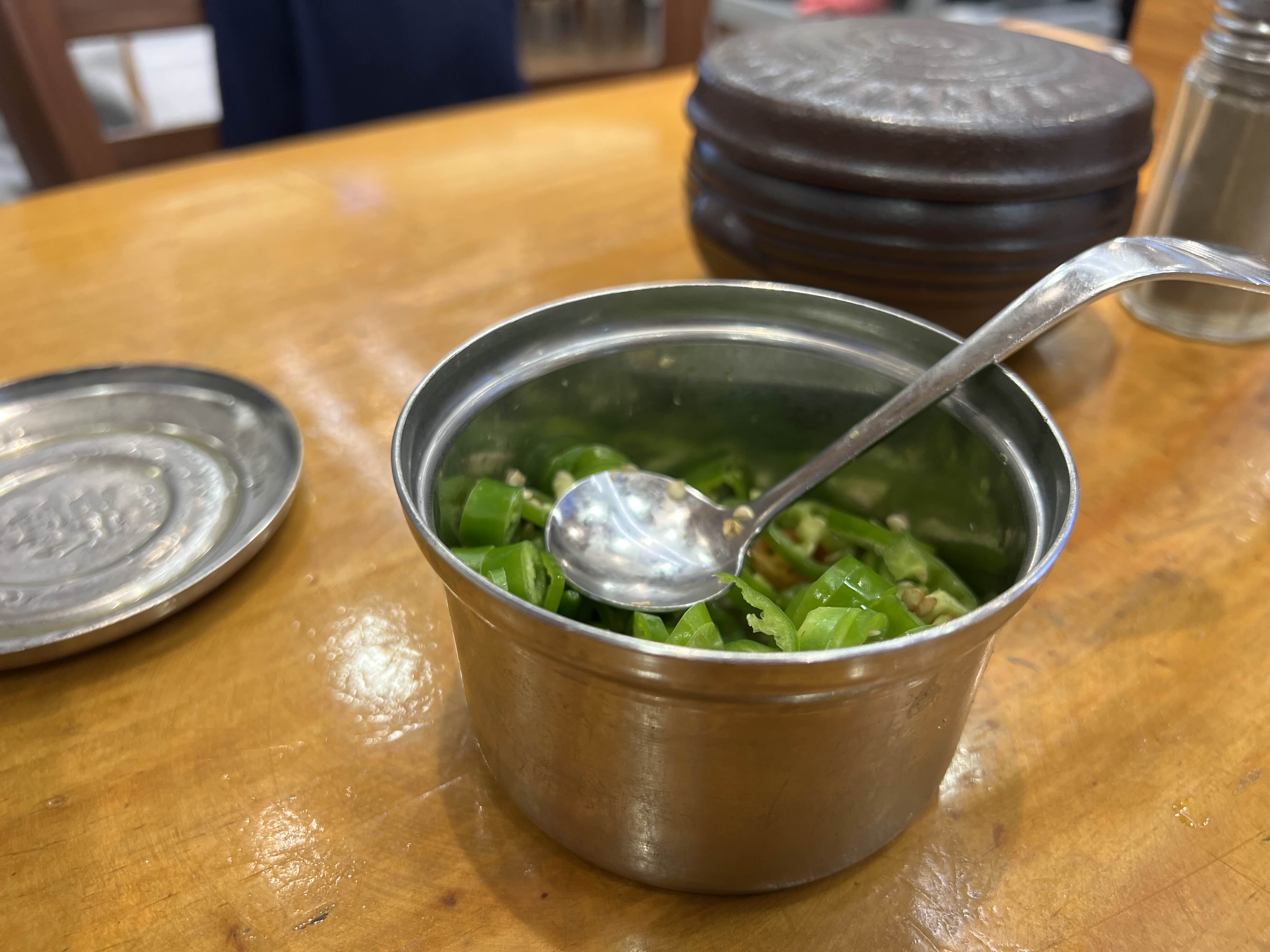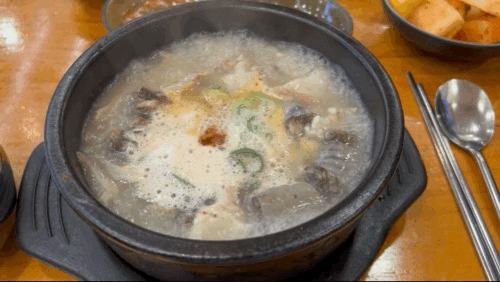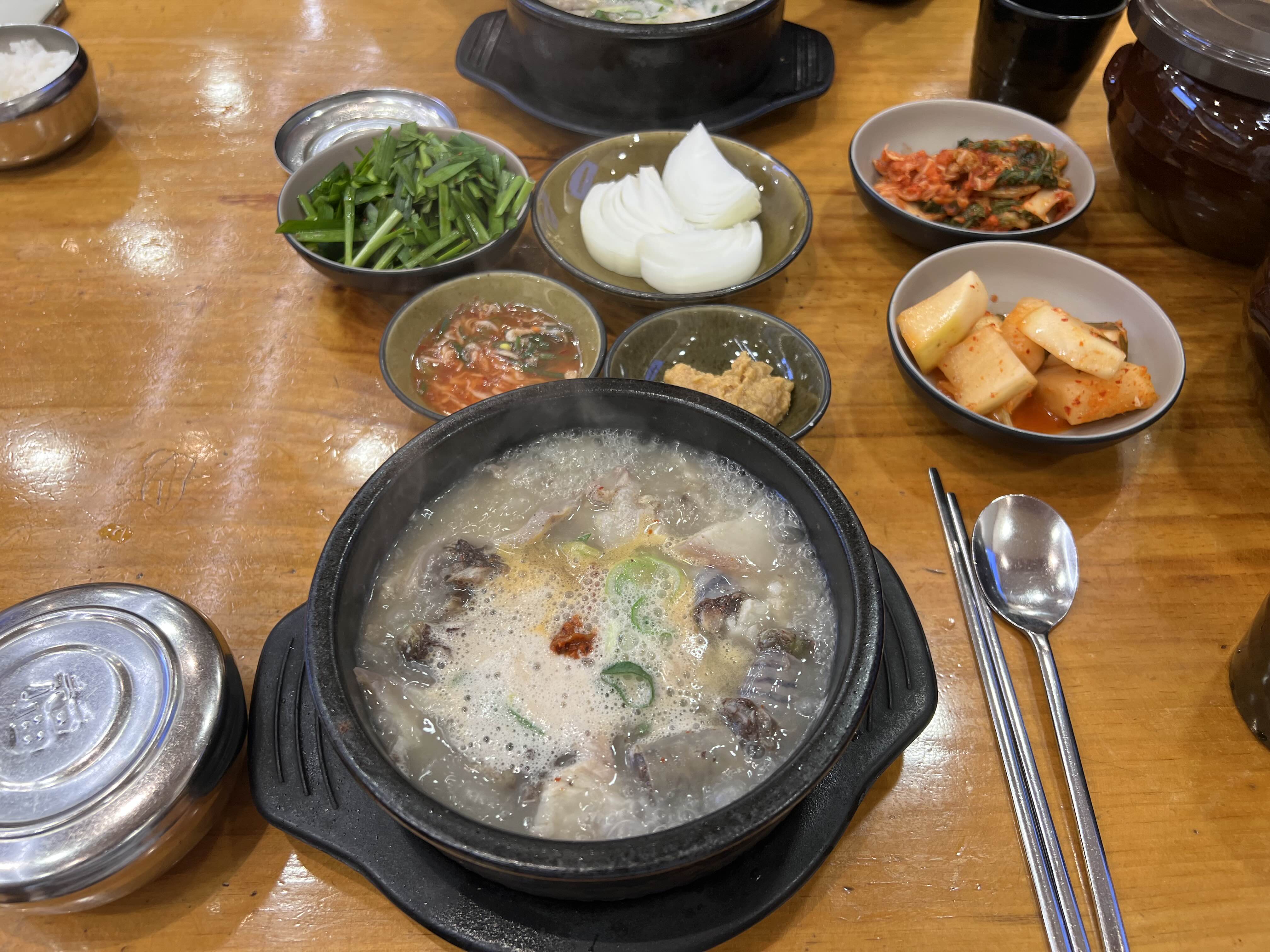 양파랑 새우젓 깍두기랑 김치 모두 사진처럼 깔끔하고 양파도 신선해서 먹기 좋습니다. 들깨가루도 테이블마다 구비되어 있어서 취향에 따라 넣으시면 됩니다. 고추는 사장님께 매운고추 자른 것 달라고 하면 따로 통을 주십니다. 매운 맛을 추구하시는 분들은 요청해서 넣으세요!