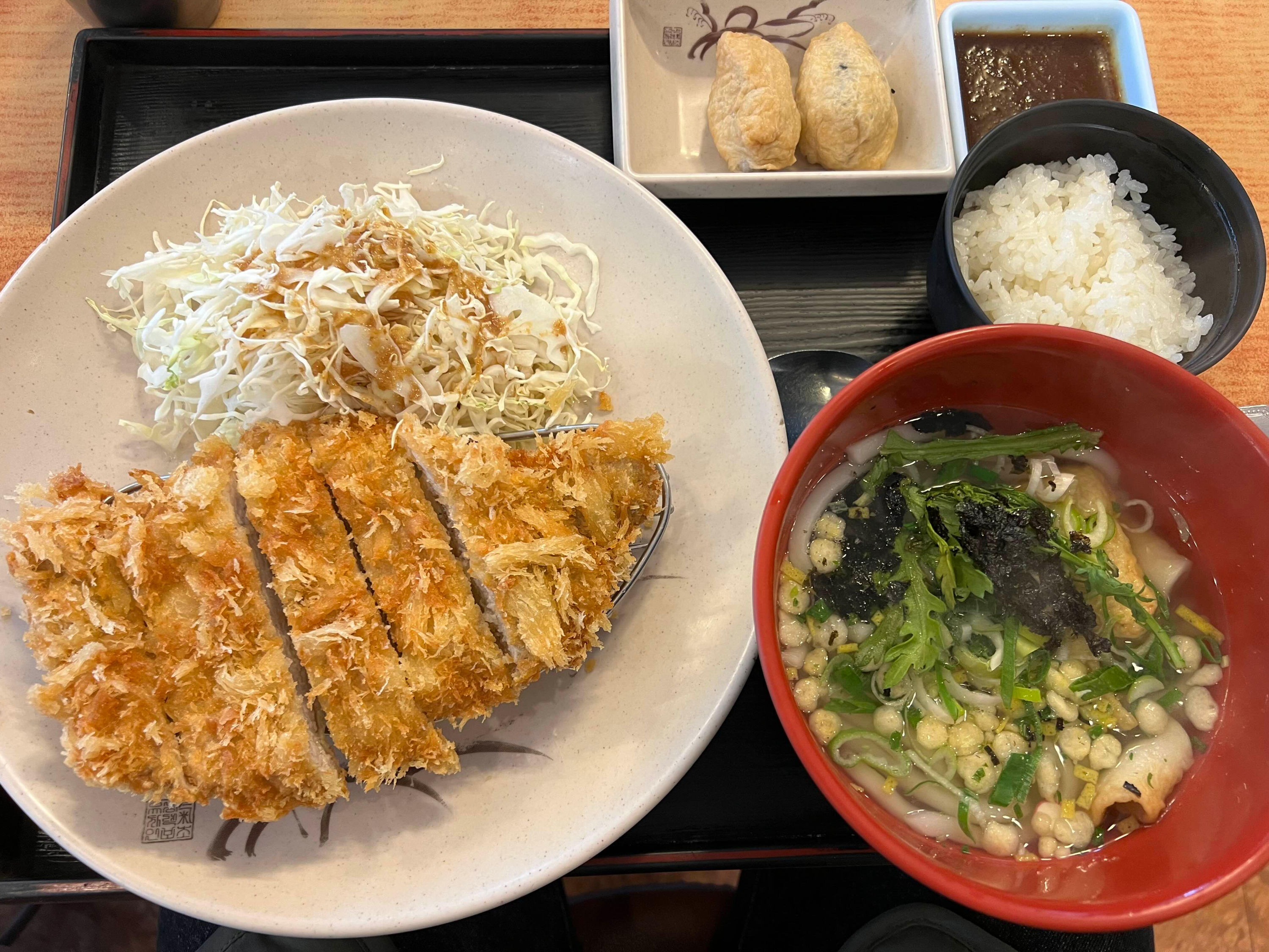 돈까스는 사진처럼 튀김가루가 커서 큼직합니다. 그래서 크게 베어 물다가 안쪽 입천장이 긁힐 수 있으니 조심하세요! 다른 돈까스집 보다도 거친 느낌이었습니다. 게다가 유부초밥도 2피스 있어서 더욱 배가 불렀던 것 같습니다.