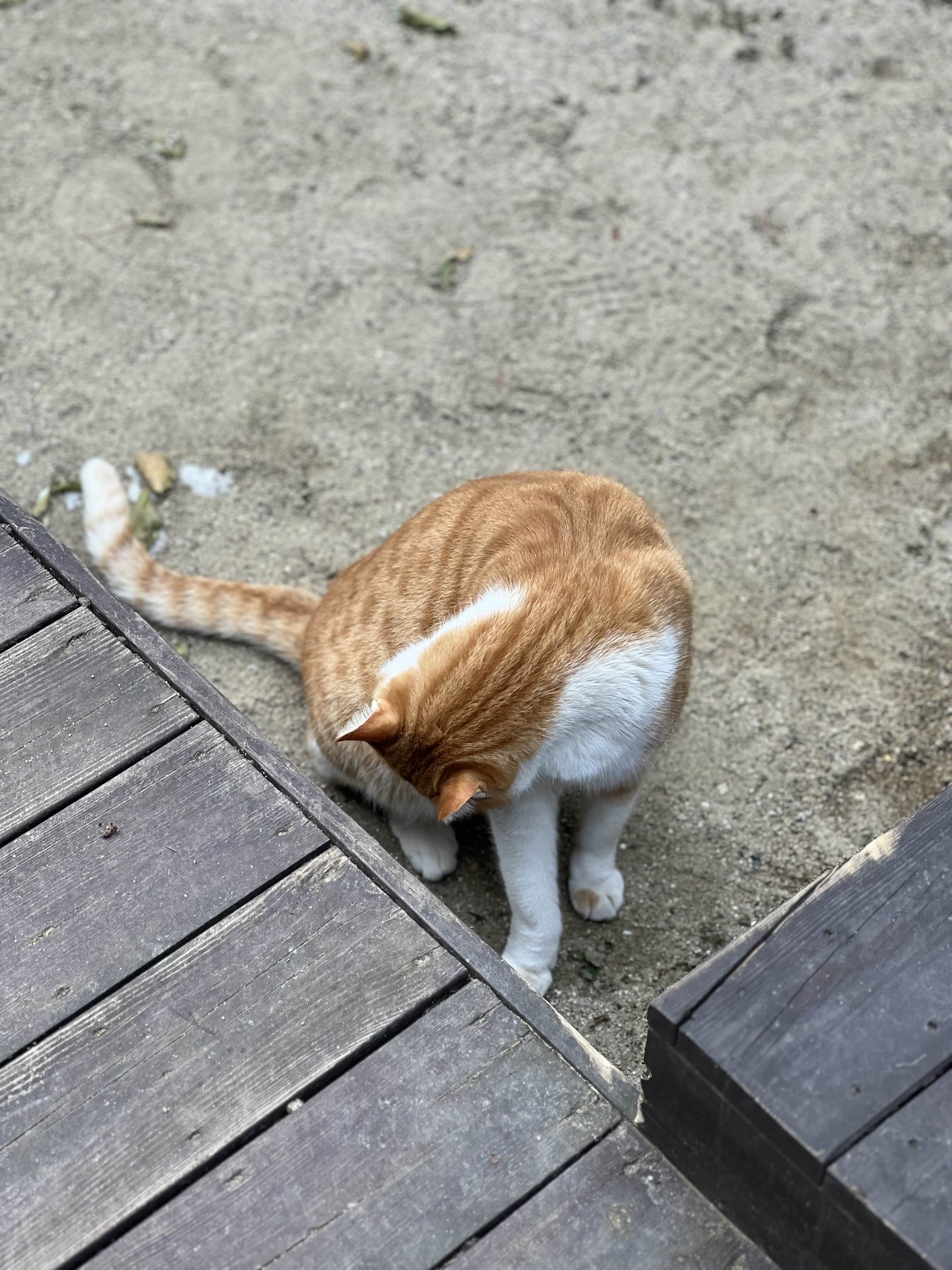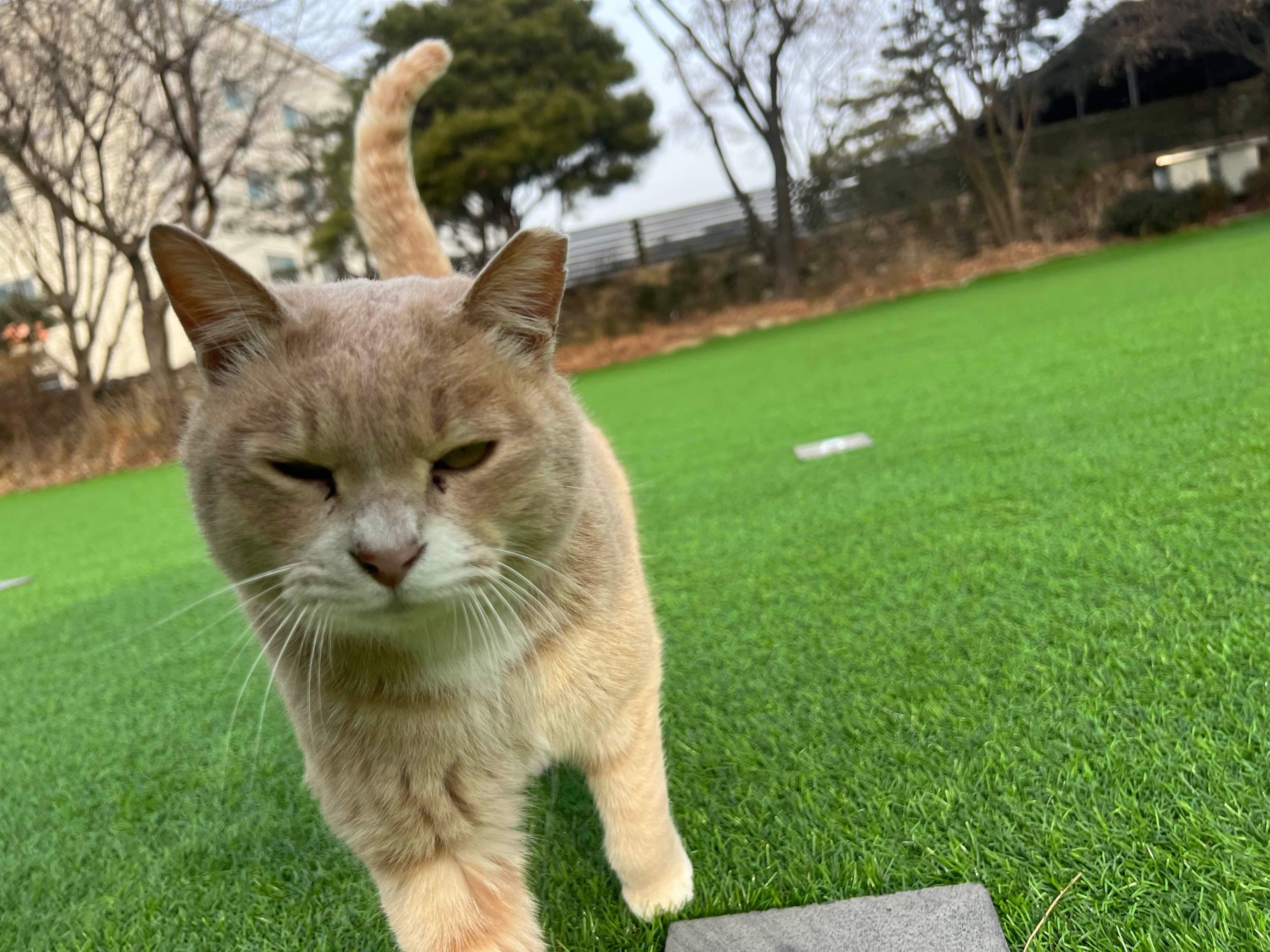 고양이가 정말 귀엽고, 사람을 좋아해서 쪼그려 앉으면 바로 달려옵니다. 사진 찍으려고 앉은 건데 바로 달려와서 부비부비합니다. 너무 통통하고 귀여웠어요!