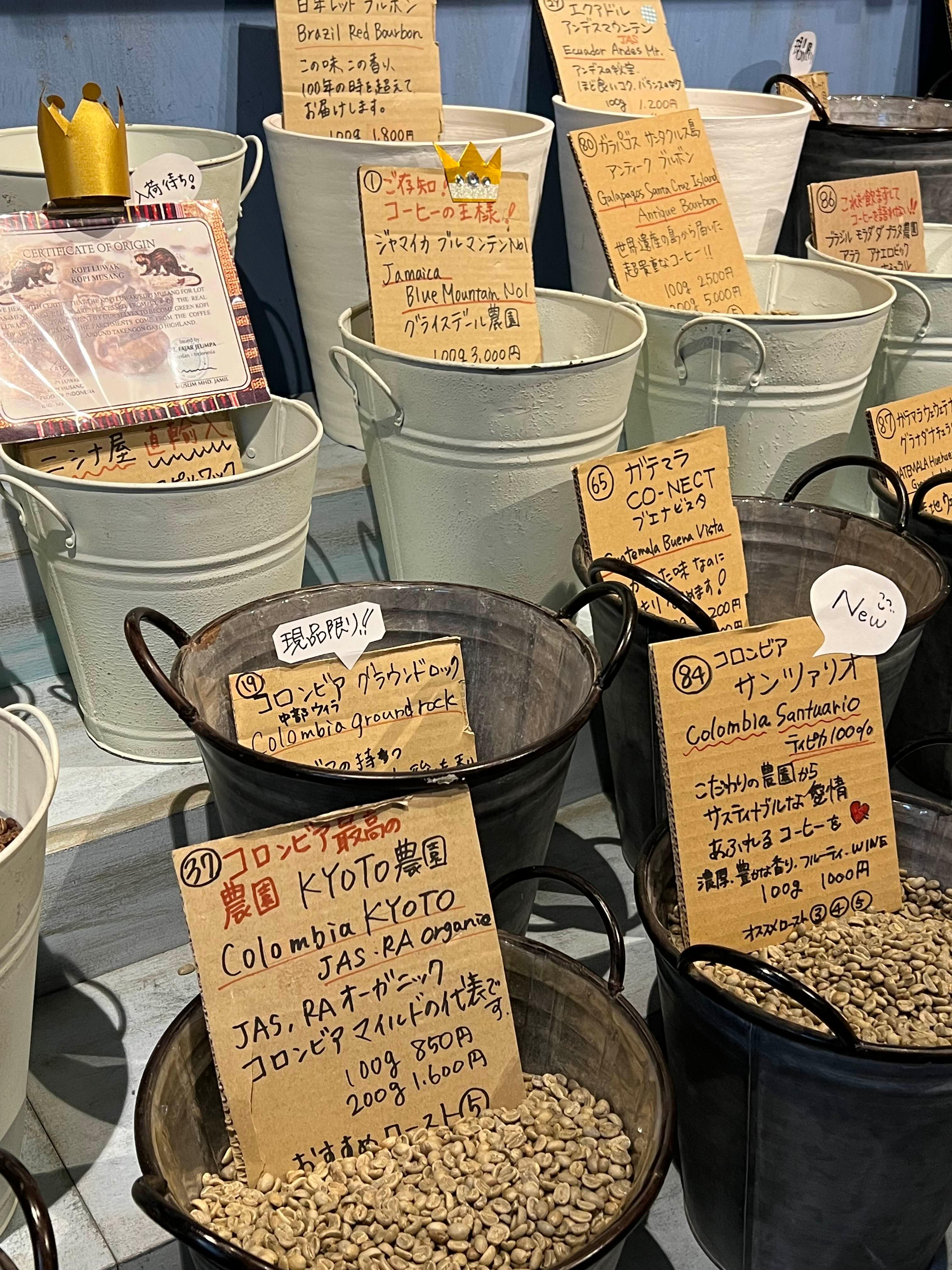 100G에 5000엔 정도니까 꽤 가격이 있습니다. 원두 종류가 워낙 다양해서 찬찬히 둘러보고 구매하면 됩니다.