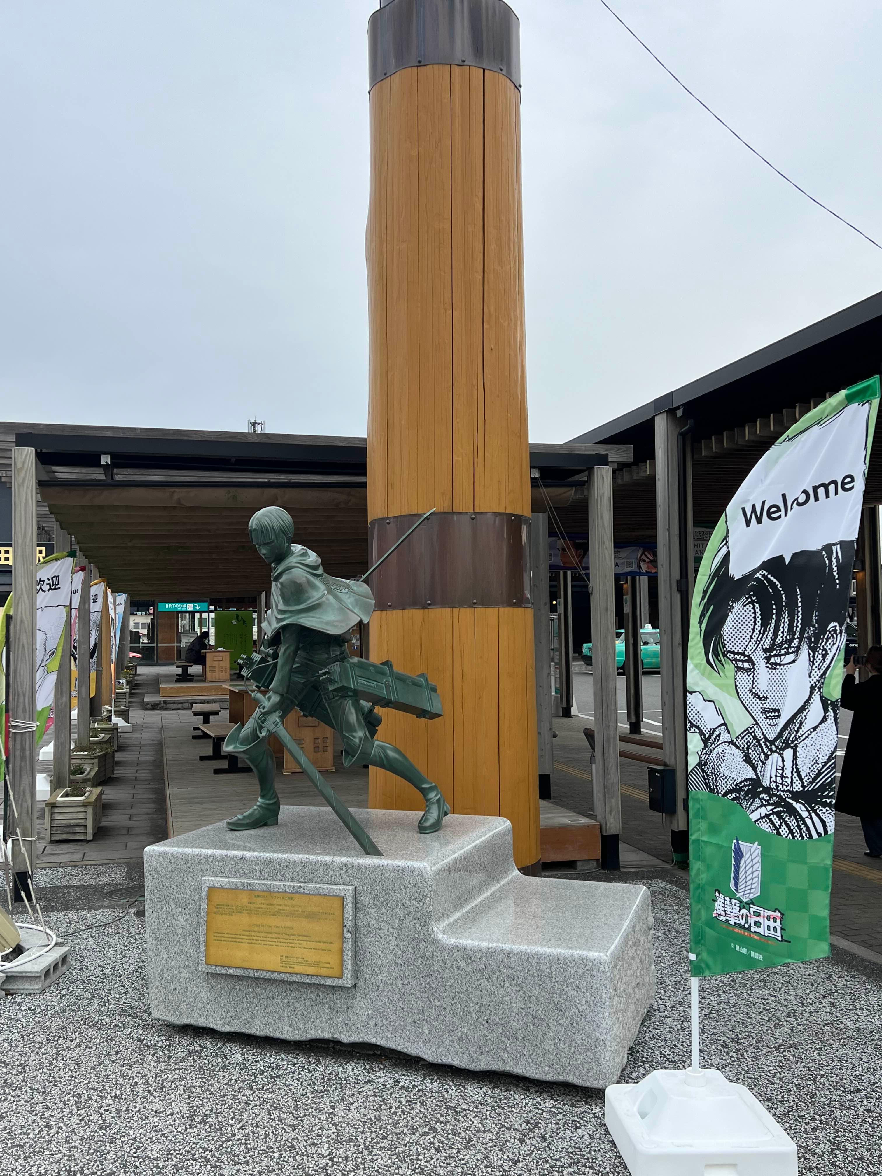 진격의 거인을 그린 작가가 히타출신이라고 합니다. 그래서 히타에는 진격의 거인 포스터나 동상을 보실 수 있어요.