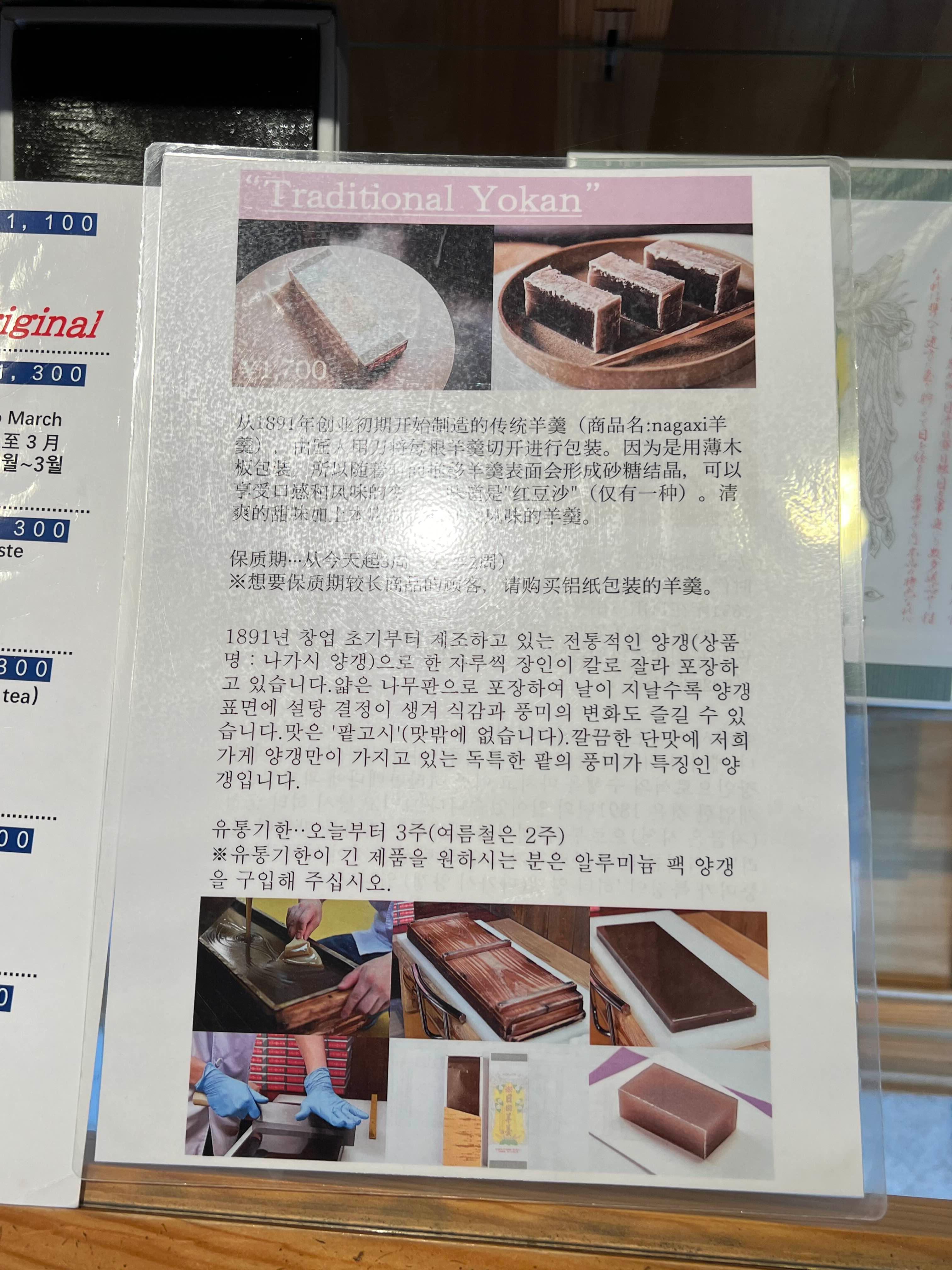 간장집에서 조금만 내려오면 왼쪽에 양갱집이 있어요. 작은 집이라 들어가면 한국말 안내 책자 보여주시고