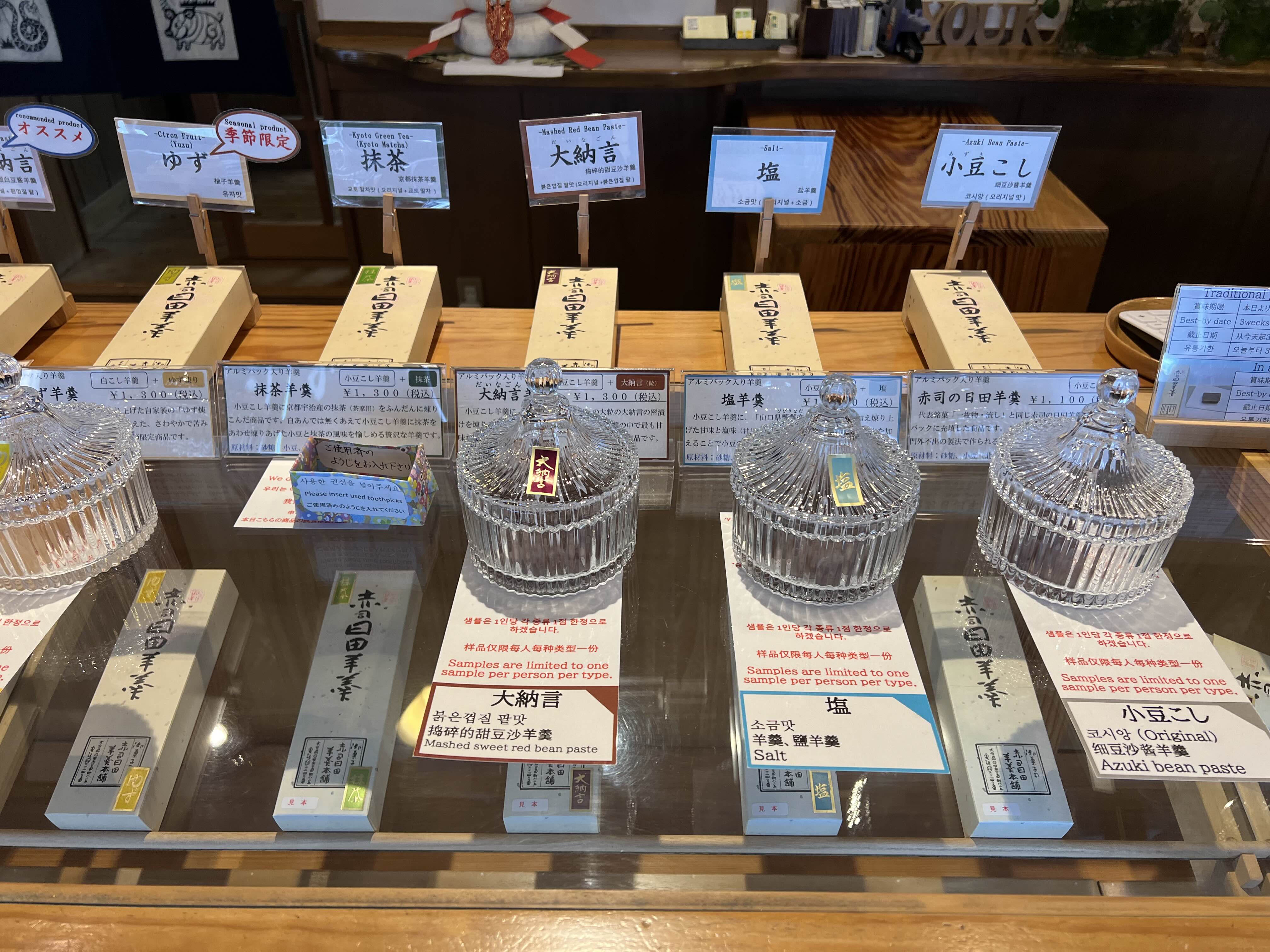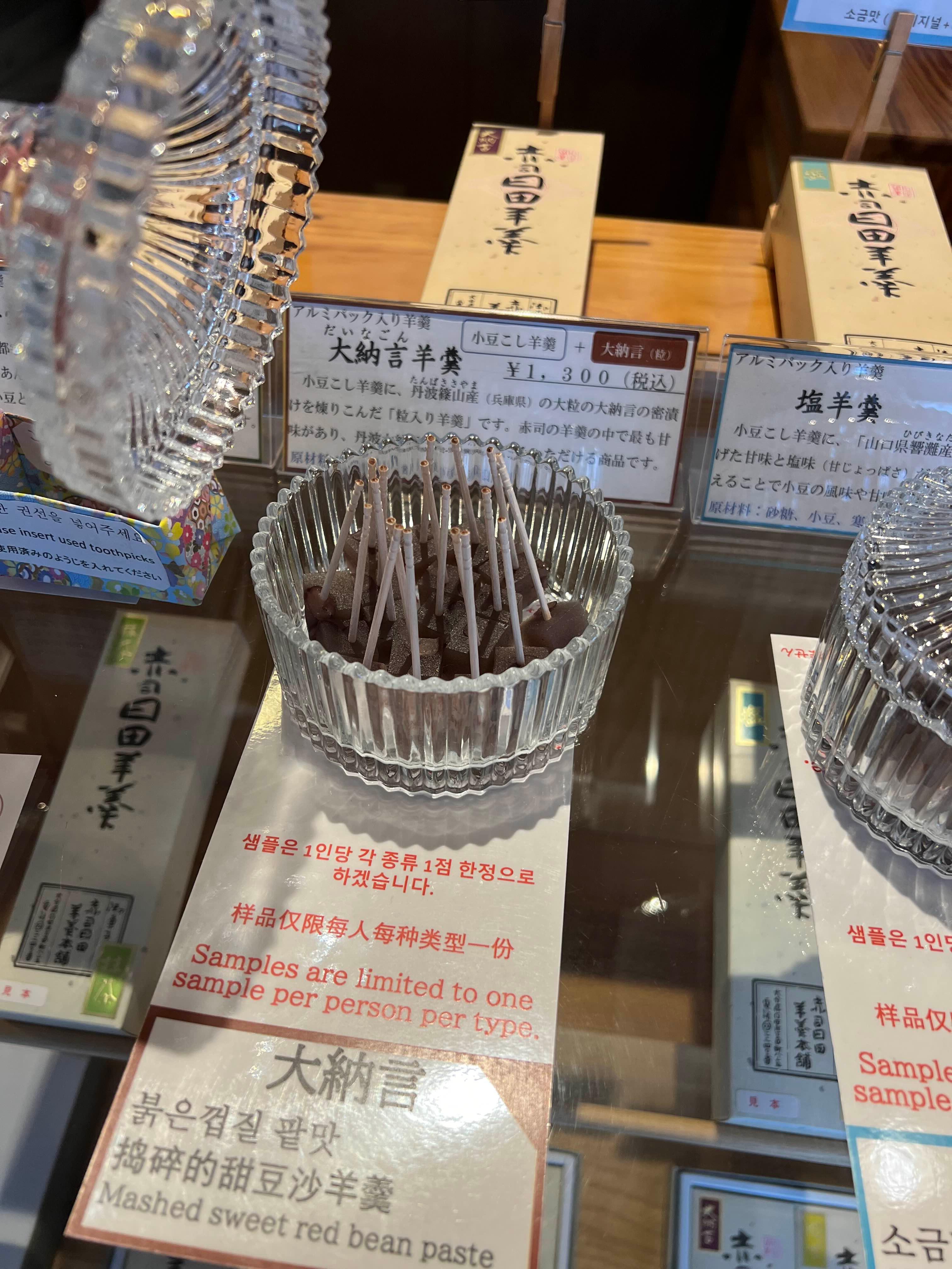 그리고 양갱도 판매하고 있었는데 어차피 양갱집을 따로 갈 거라 맛만 보고 구매하지는 않았어요.