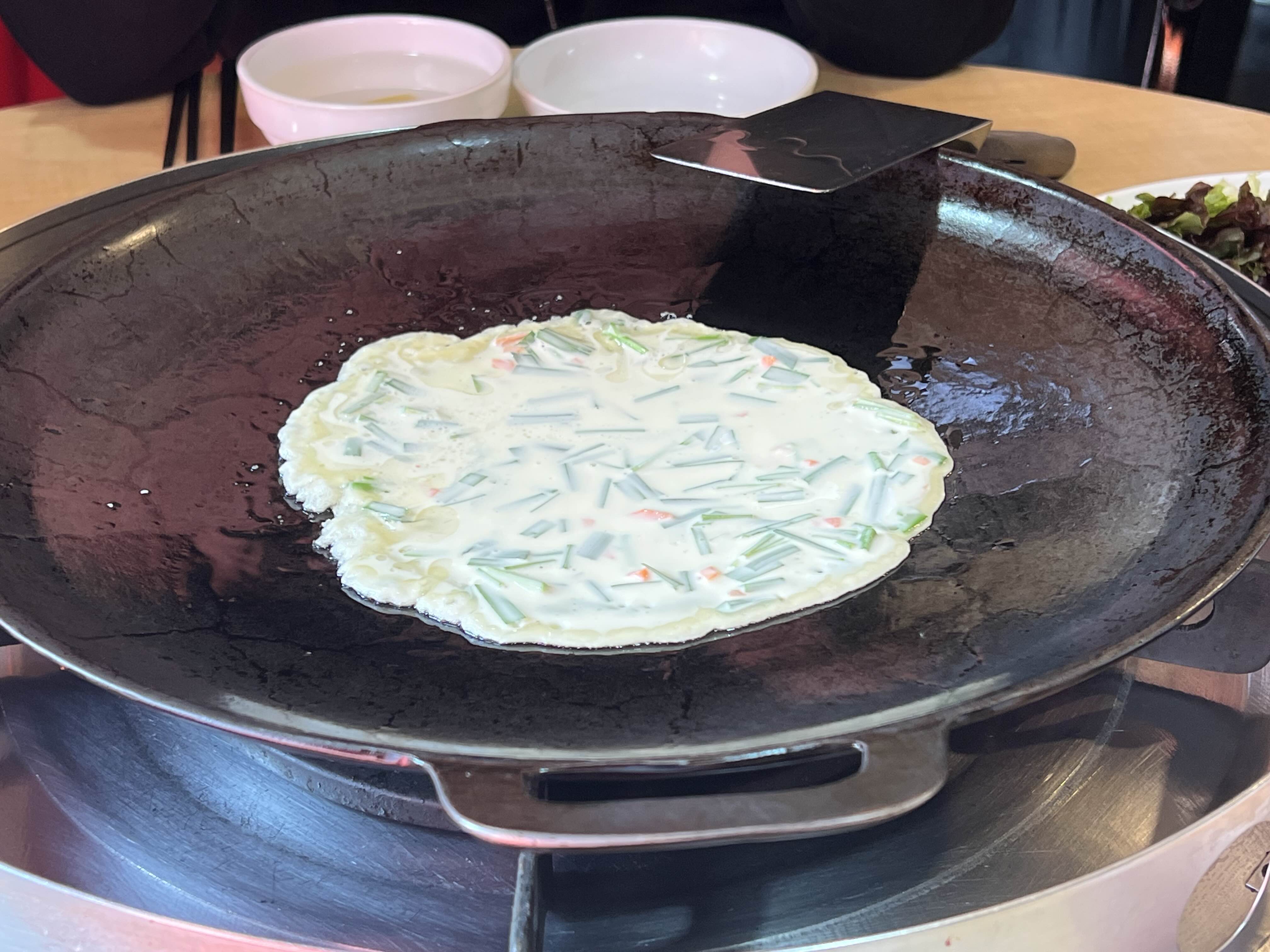불판에 부침개를 기본으로 올려주십니다.