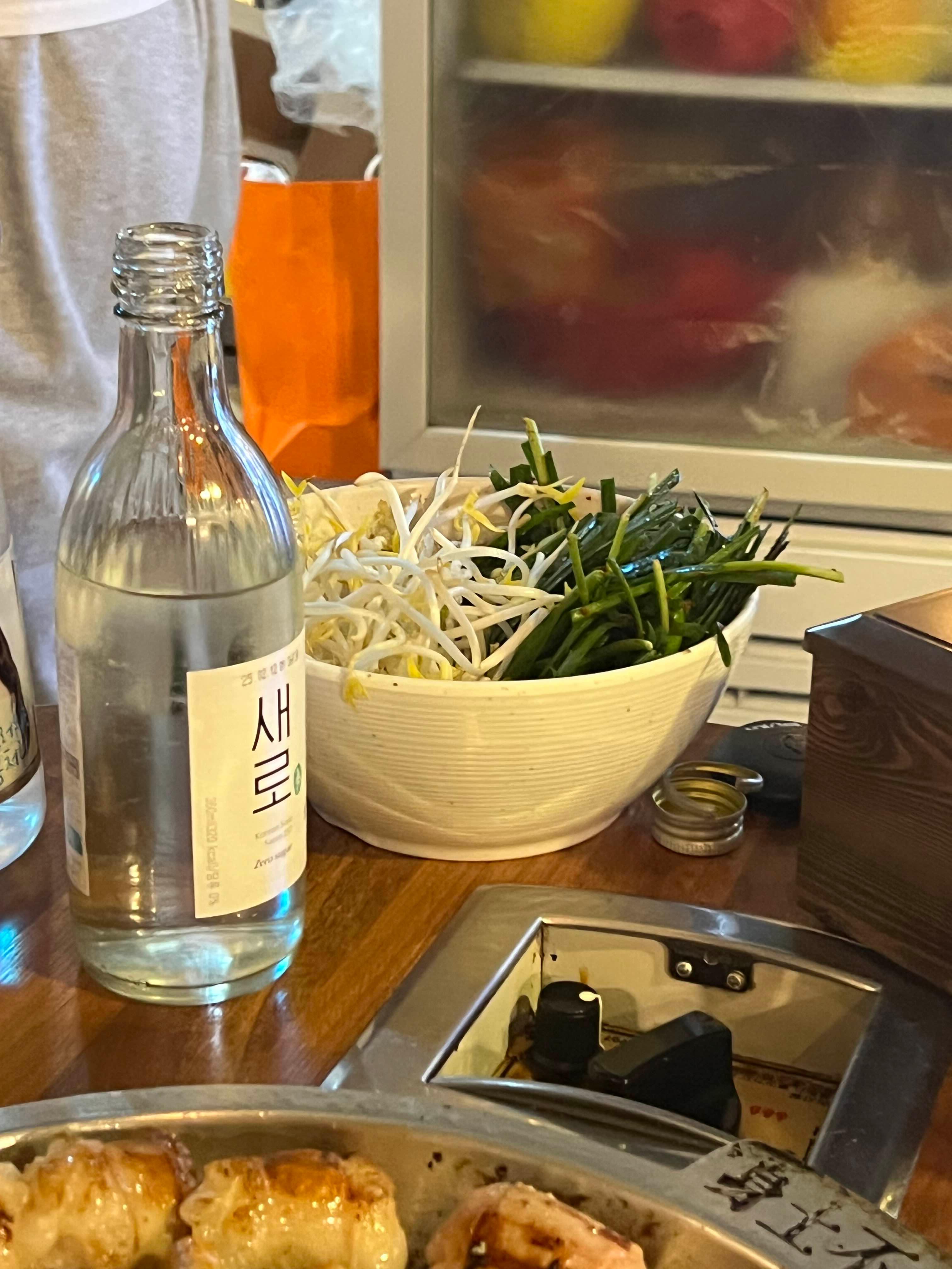 그리고 순두부찌개가 나와서 먼저 순두부찌개랑 한잔 하기 시작했습니다.