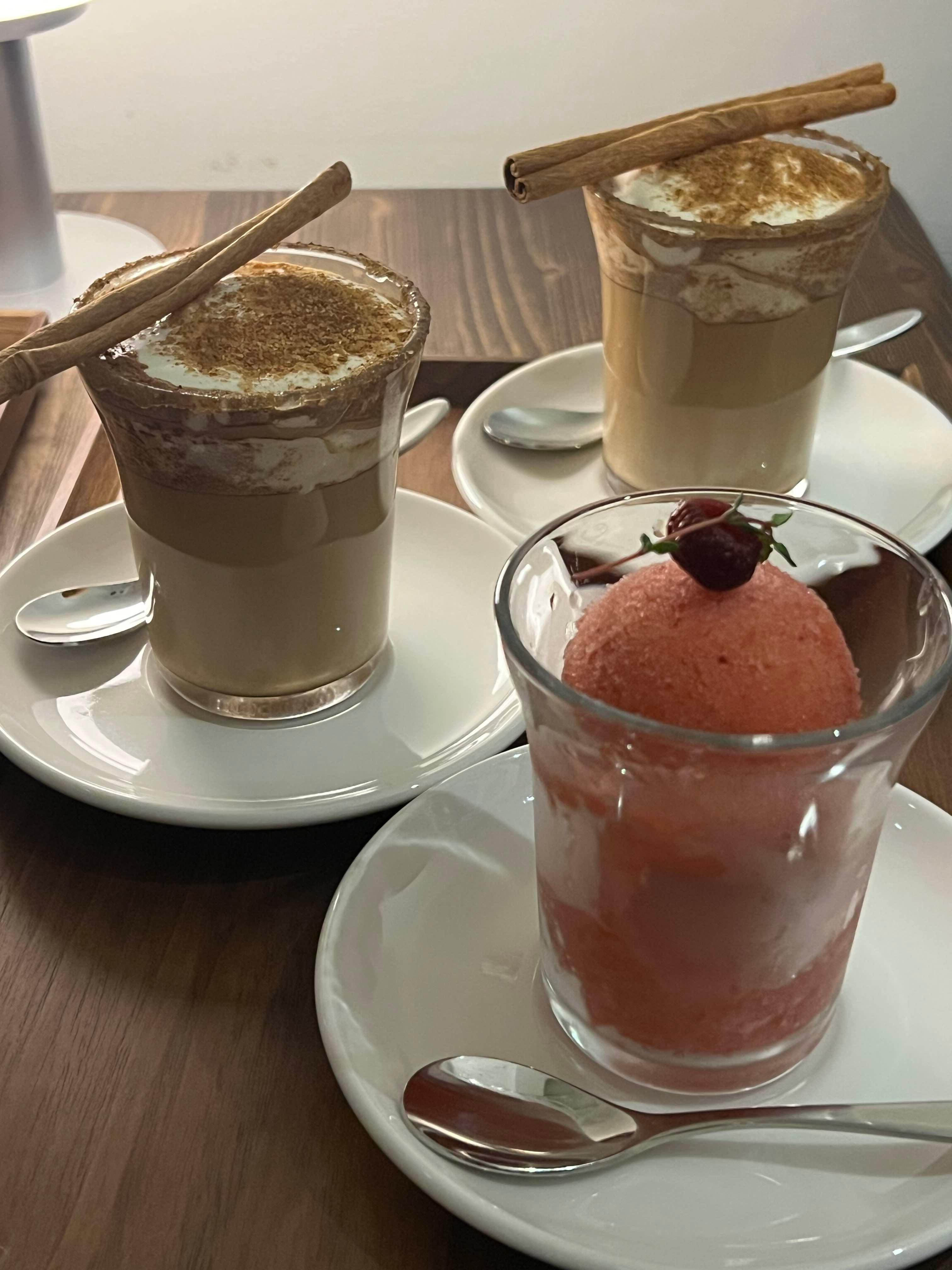 음료는 각자 시켰는데 저는 티라미수라테를 시켰습니다.