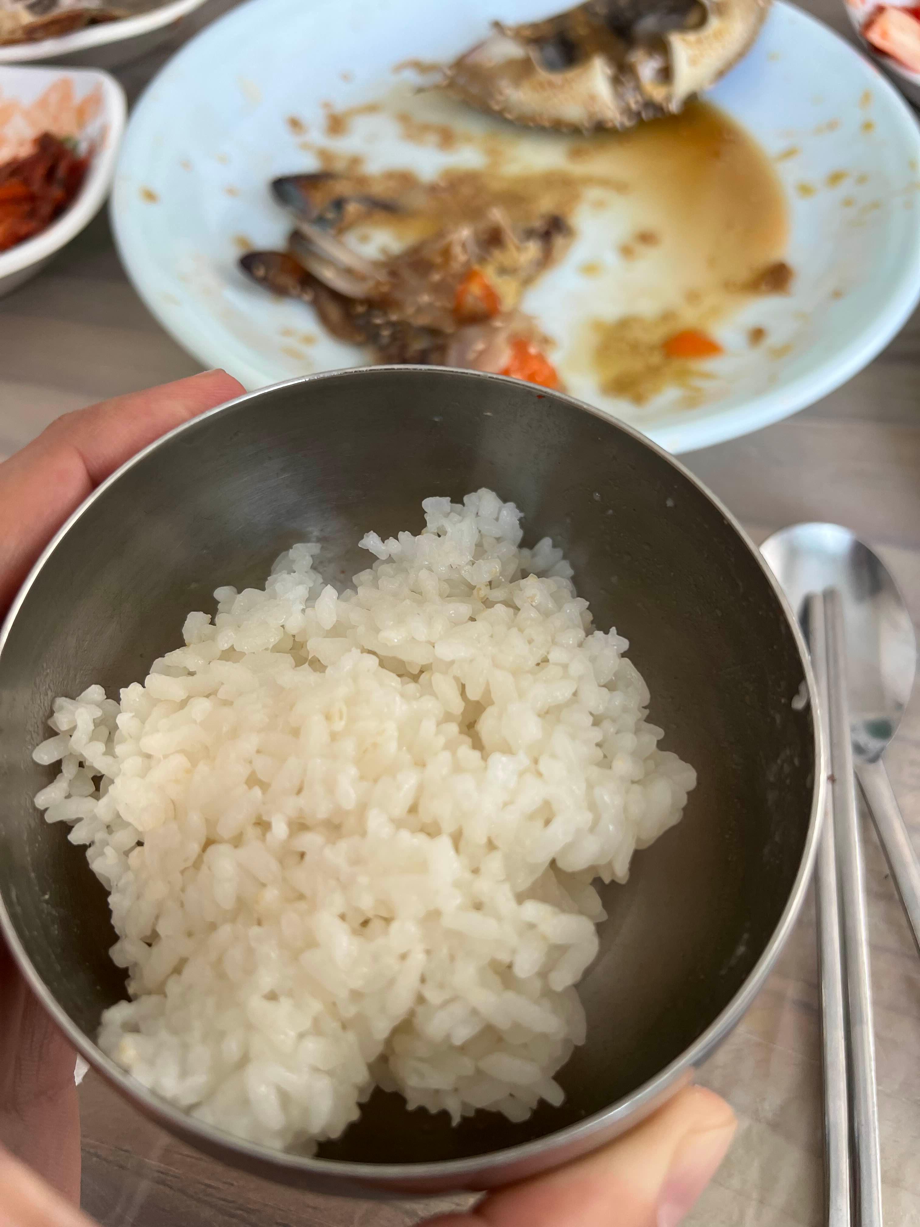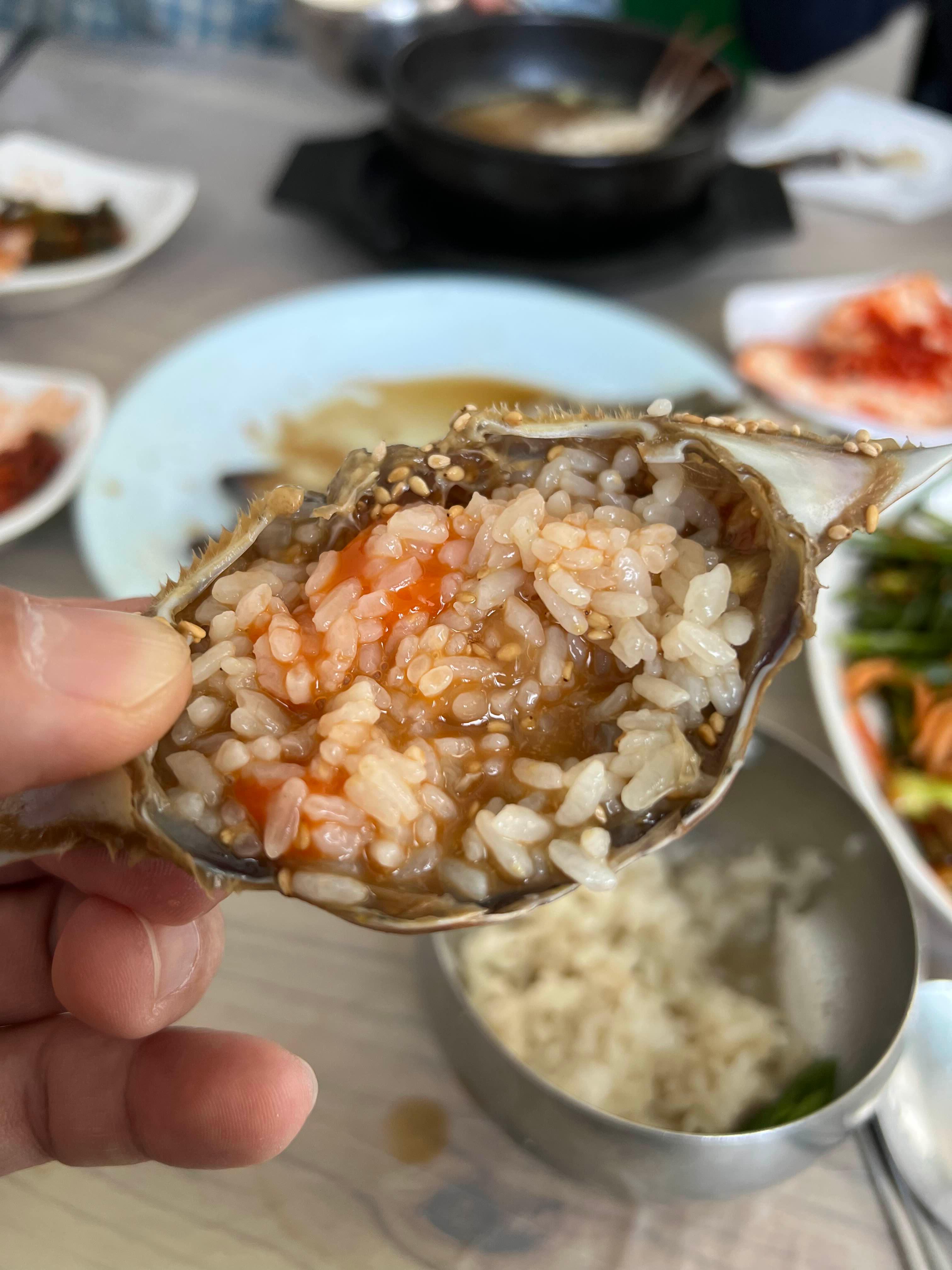밥이랑 꽃게장 같이 먹어주고, 밥도 넣어서 싹싹 비벼서 먹었습니다.
