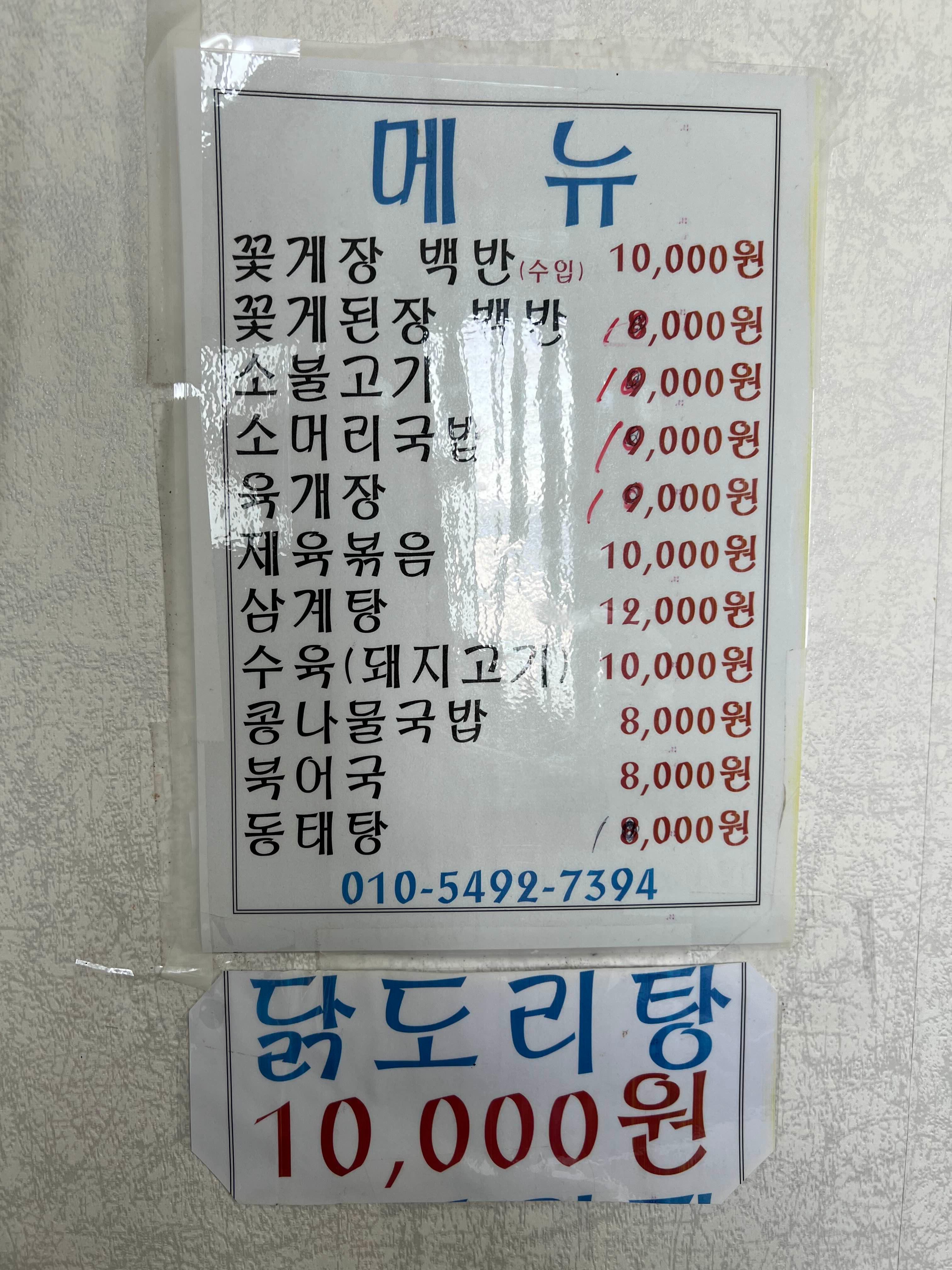 기사식당이라고 해서 그냥 불고기 같은 거 팔 줄 알았는데 꽃게장과 꽃게된장국을 팔더라고요.